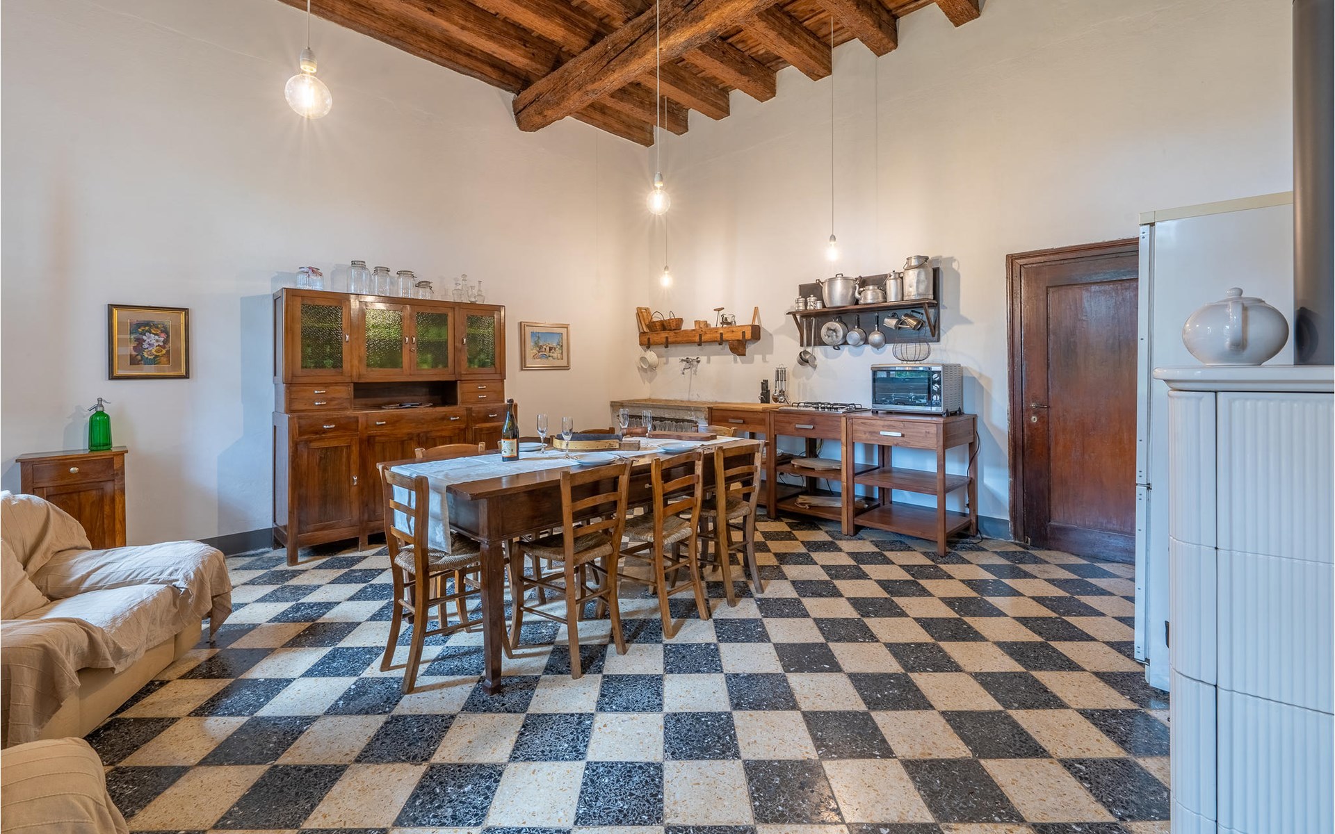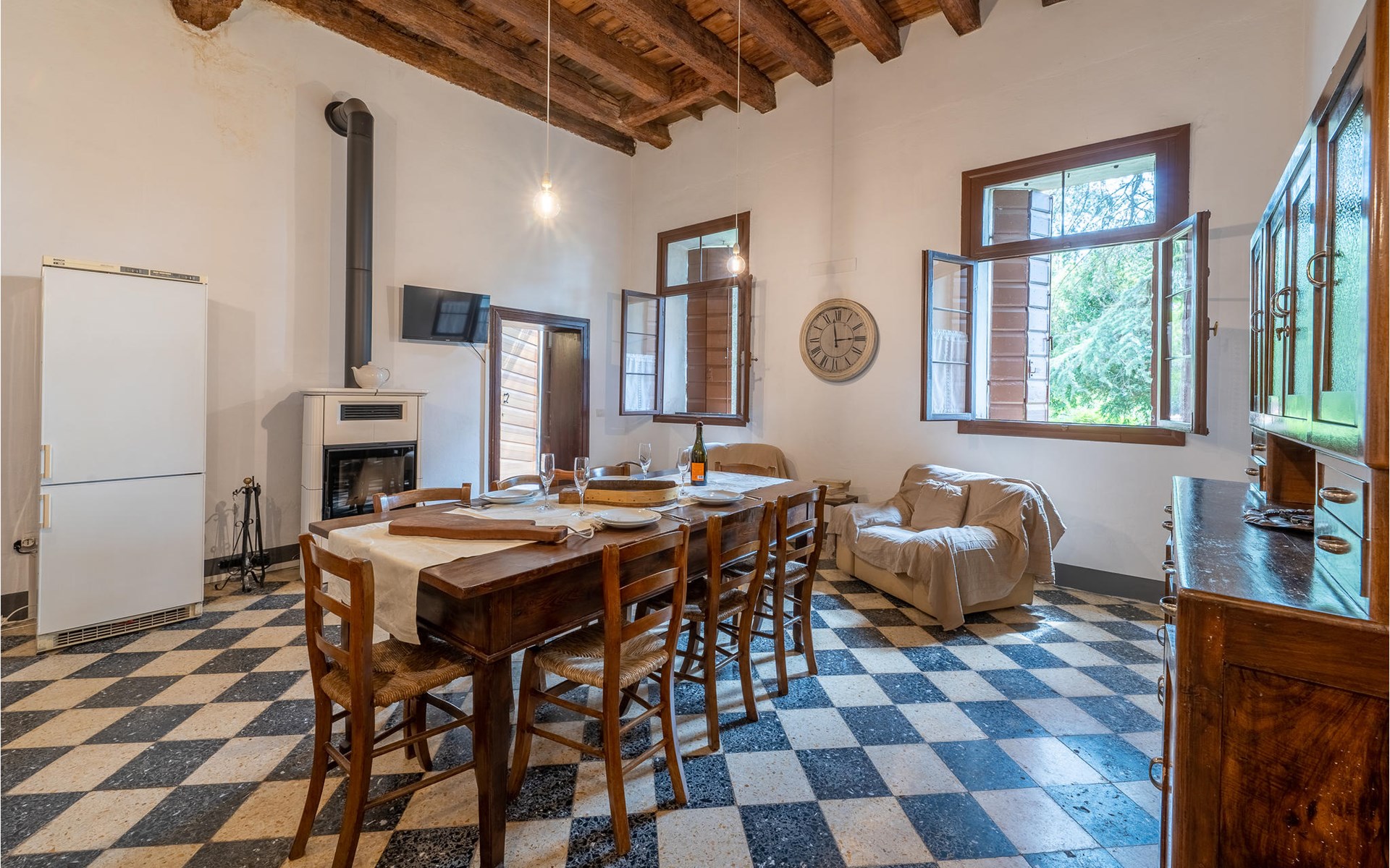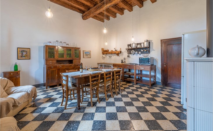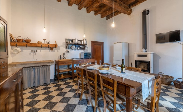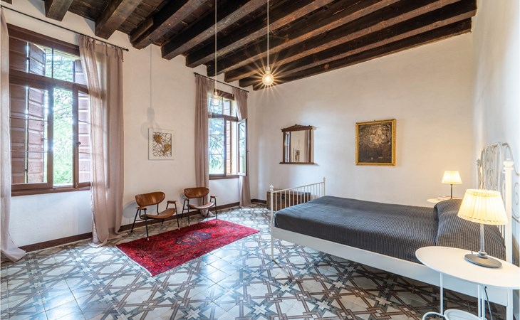 Alleinstehendes Ferienhaus bestehend aus einer alten venezianischen Villa aus dem 15. Jahrhundert, in den sanften Hügeln des Gebiets Pedemontana gelegen. Die Villa ist umgeben von einem wunderschönen Park mit Bäumen und 2 ha großen Weinbergen von welchen hervorragende Weine wie Vespaiolo und Torcolato stammen. 5 km die Stadt Thiene, in der Provinz Vicenza. Bei der Renovierung wurden einige originale und charakteristische Elemente bewahrt, wie zum Beispiel die schönen farbigen Fußböden, die imposante Marmortreppe zum Schlafbereich, die 4 m hohen Decken, die wunderschönen Holzbalken, die ursprünglichen Fensterarmaturen, die antiken ortstypischen Möbel. Die dicken Mauern halten auch während heißen Sommertagen die Hitze draußen. Den Gästen steht eine Bibliothek mit mehr als 2000 Sach- und Geschichtsbüchern zur Verfügung. Die Schlafzimmer im ersten Stock bieten alle Gartenblick. Großes, eingezäuntes Naturgrundstück mit Bäumen und ausgestattet mit Gartenmöbeln und Grill zum Essen im Freien und Entspannen. Die Villa befindet sich innerhalb einer 21 km langen Geh- und Laufbahn in der Natur mit Erfrischungs- und Erholungsstätten. Gute Lage zur Erkundung von Kunststädten wie Vicenza (20 km), Padua (50 km), Verona (88 km), Venedig (90 km). Zufahrt über einen 300 m langen Schotterweg.