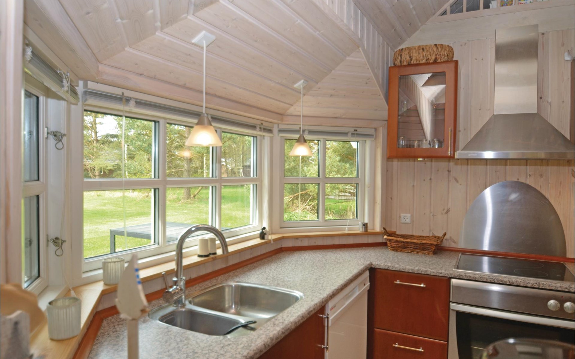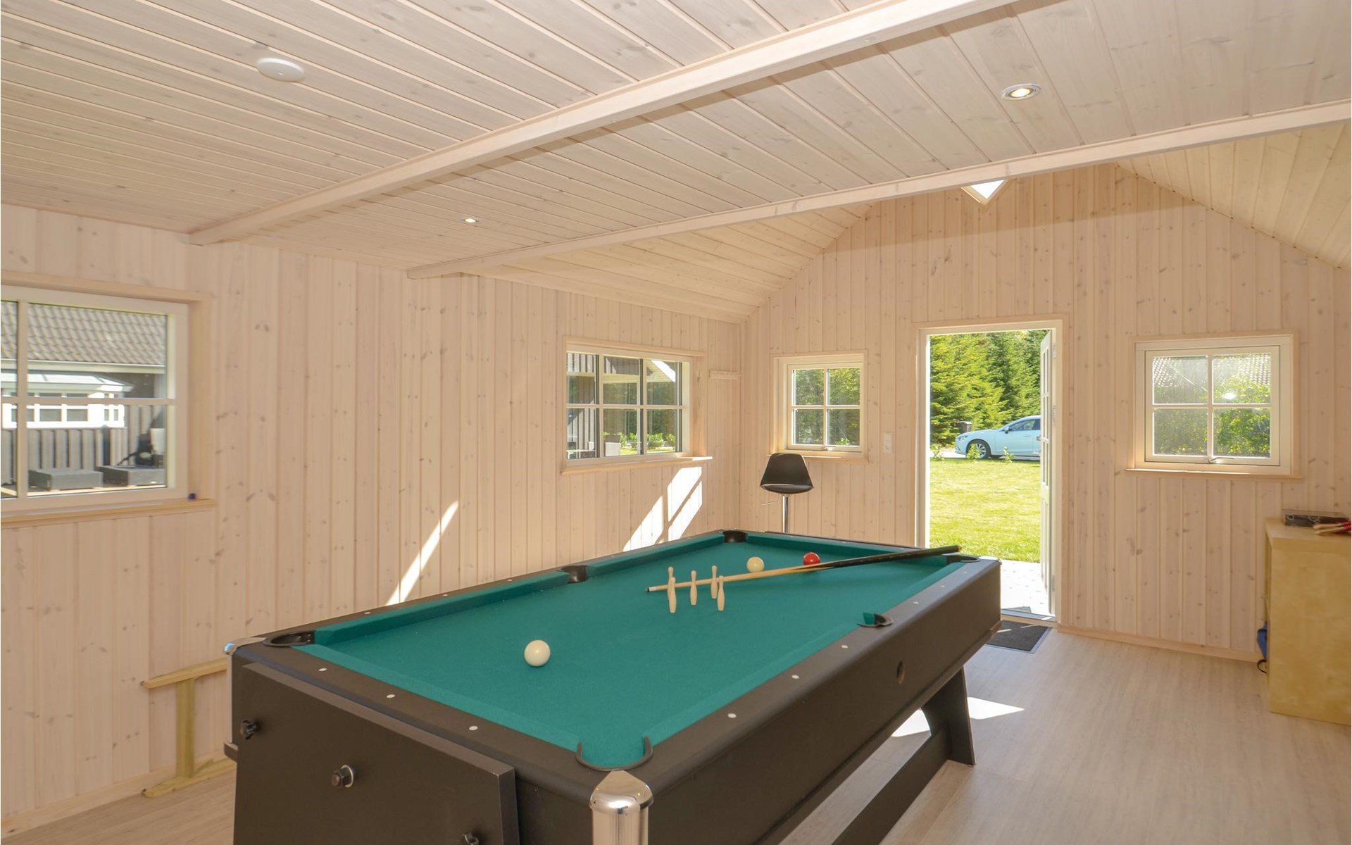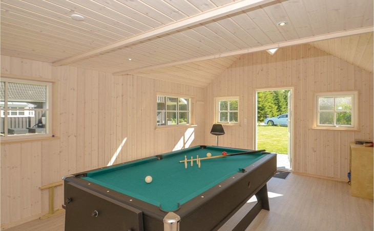 In einer schönen Ferienhaussiedlung in Marielyst steht dieses Qualtiätshaus mit viel Platz zum Entfalten. Bei der Einrichtung wurde Wert auf Qualität und Gemütlichkeit gelegt. Das Haus ist architektonisch sehr interessant, u.a. hat es eine offene Dachkonstruktion. Die Küche ist offen zum Essbereich hin. Der Esstisch steht am Fenster, damit Sie während des Essens den Blick auf den Garten genießen können. Das Haus ist mit zeitlosen Möbeln eingerichtet. Auf dem großen Schlafboden finden Sie einen Fernseher mit PlayStation. Im Haus ist außerdem eine Surroundsound-Anlage vorhanden. Im angrenzenden Annex sind Billard, Tischtennis und Darts vorhanden.