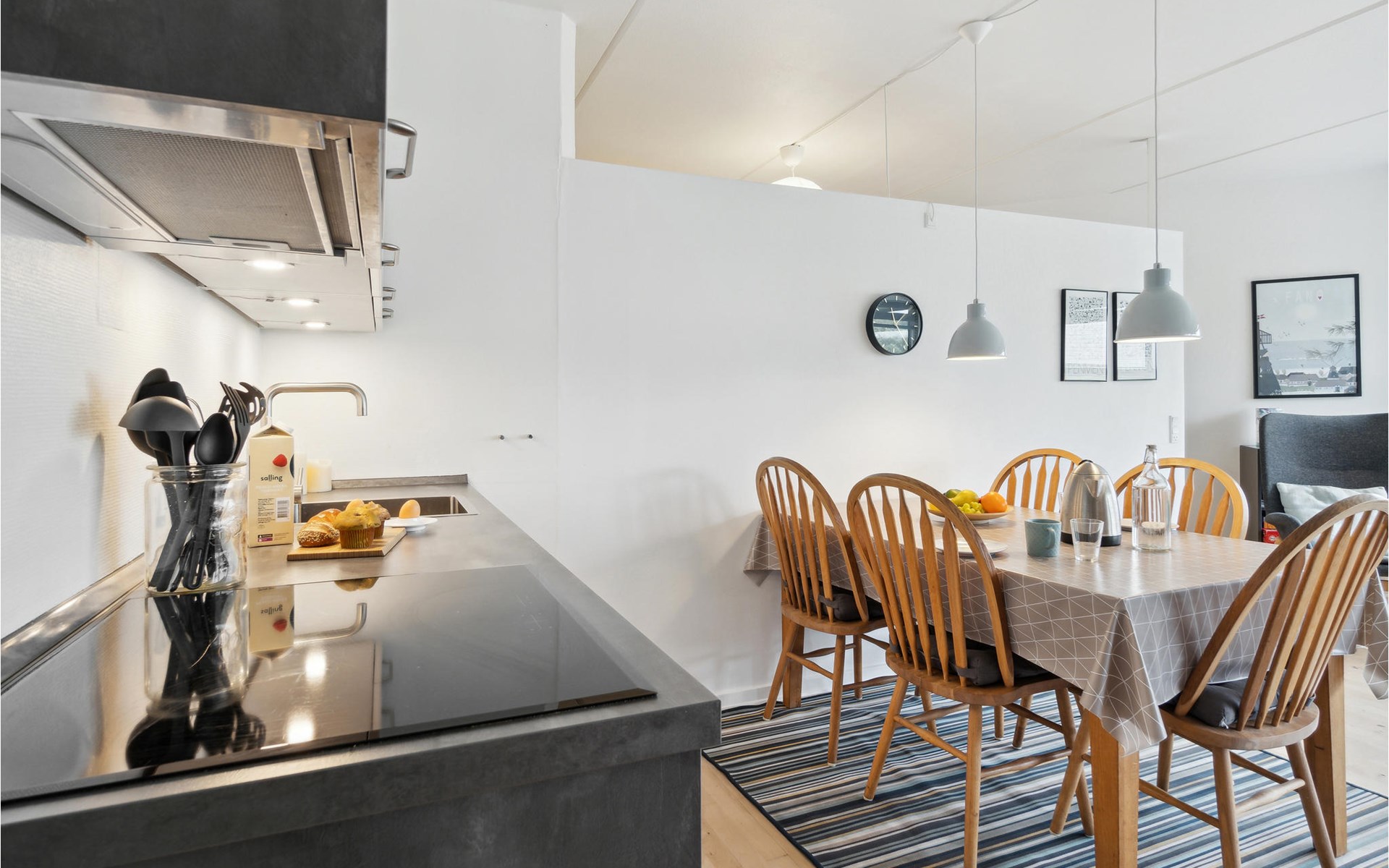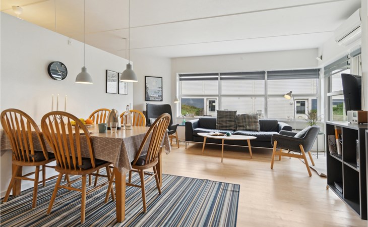 Nur wenige Schritte vom breiten Nordstrand von Fanø entfernt, empfängt Sie diese helle und einladende Ferienwohnung. Im offenen Wohnraum finden Sie alles vor, was Sie für Ihren unbeschwerten Urlaub brauchen. Zaubern Sie sich am Morgen ein leckeres Frühstück und machen beim Essen vor großen Fenstern Pläne für Ihre Aktivitäten und Ausflüge auf der Insel. Nutzen Sie für den Nachmittagskaffee die Terrasse und genießen Sie ein paar Sonnenstrahlen. Am Abend können Sie auf dem Sofa Ihre Beine hochlegen, sich entspannen und gemeinsam einen unterhaltsamen Film schauen.
