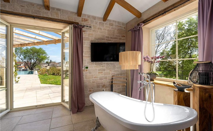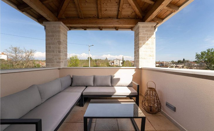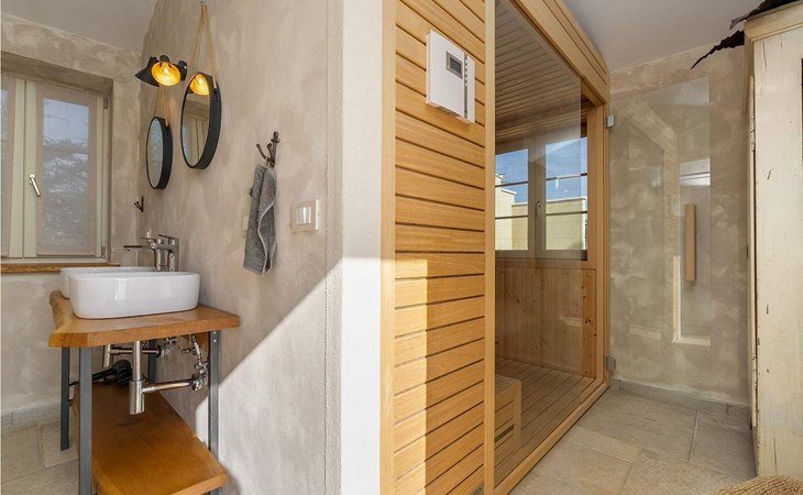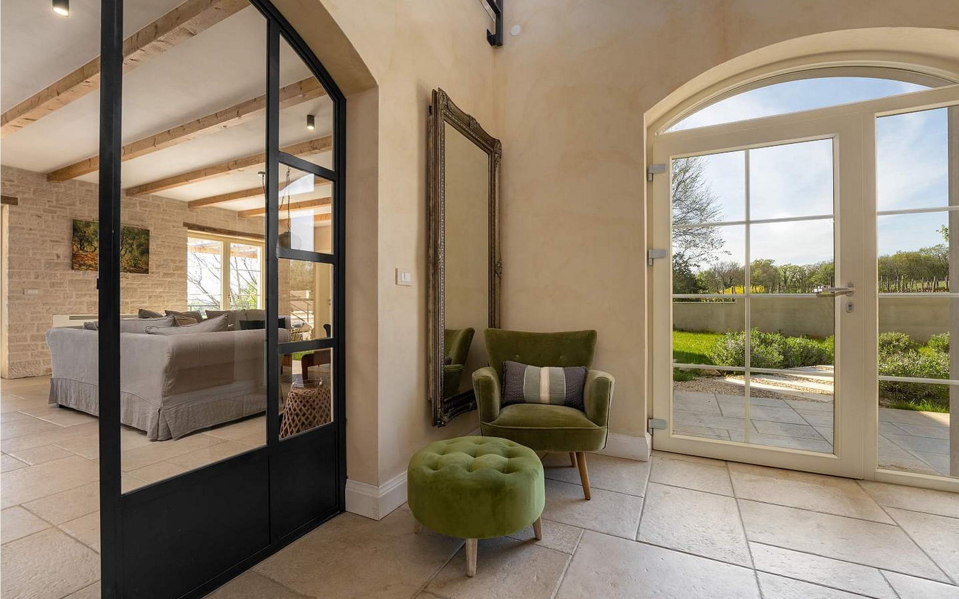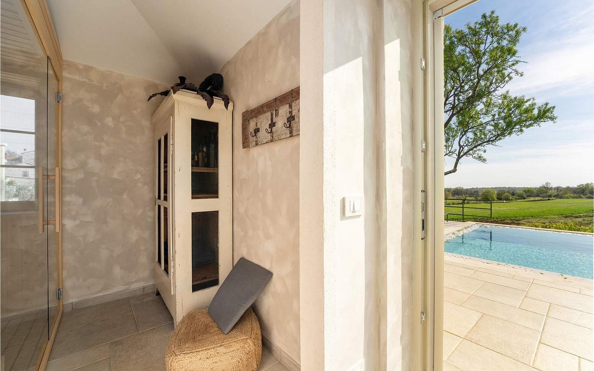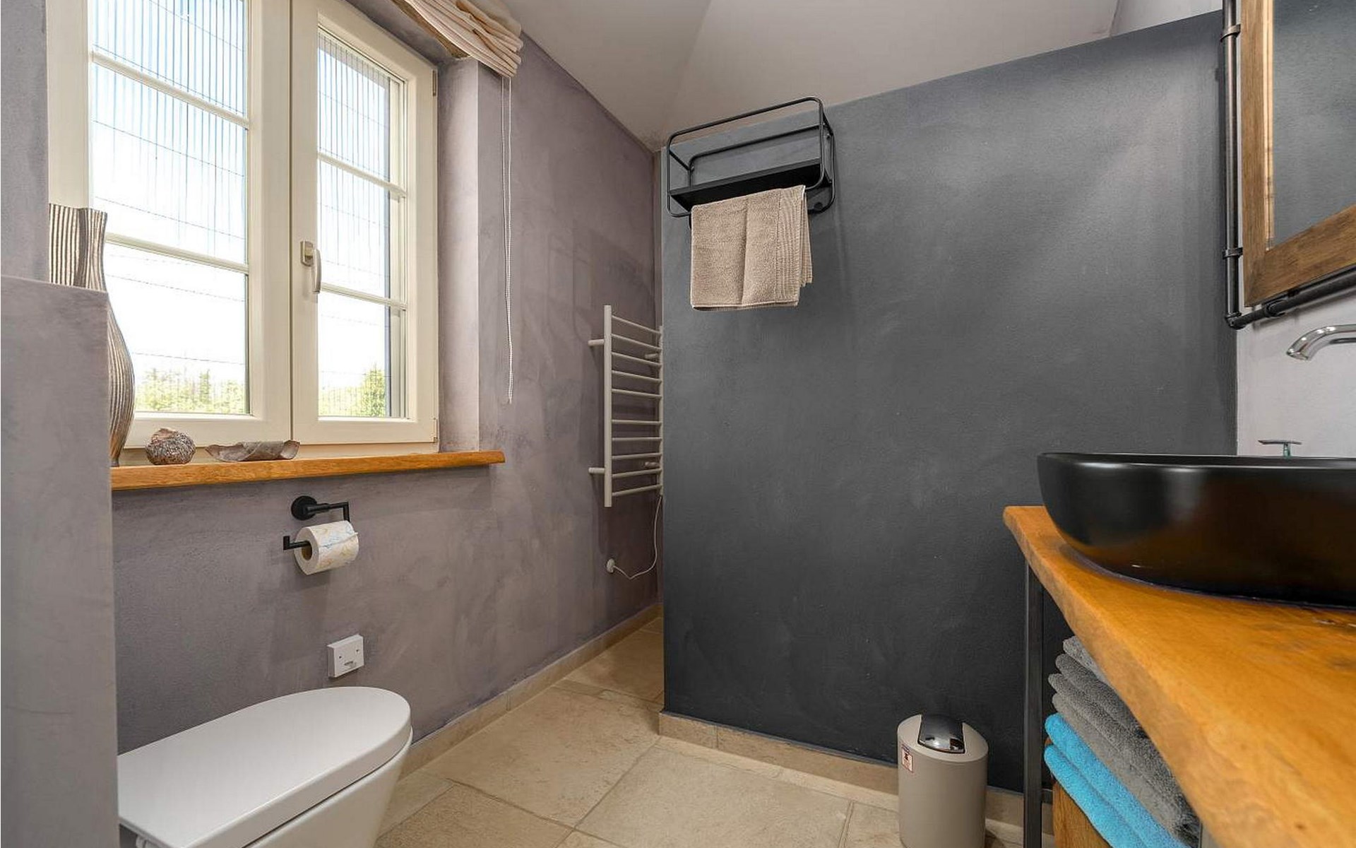Villa Rapavel ist eine atemberaubende neue Villa im traditionellen Stil mit Infinity-Pool und Panoramablick auf die Weinberge. Am Rande des Dorfes gelegen, bietet sie absolute Privatsphäre für einen erholsamen Aufenthalt. Die Villa verfügt über einen geselligen, offenen Raum, der Küche, Essbereich und Wohnzimmer vereint und sich ideal für Zusammenkünfte eignet. Im Erdgeschoss befinden sich außerdem zwei komfortable Doppelzimmer, jedes mit eigenem Bad, sowie eine separate Toilette. Im Obergeschoss befinden sich drei geschmackvoll eingerichtete Doppelzimmer, jedes mit eigenem Bad und Zugang zu einer Terrasse mit spektakulärer Aussicht. Draußen bietet die Villa hervorragende Möglichkeiten zum Entspannen und Essen. Genießen Sie den Salzwasser-Infinity-Pool, eine überdachte Terrasse mit stilvollen Gartenmöbeln, einen Grill und einen Esstisch für 10 Personen. Zu den weiteren Annehmlichkeiten gehören ein Whirlpool und eine Außensauna mit Bad. Die Gegend in der Nähe von Rapavel ist für ihre ausgezeichneten traditionellen Tavernen und Winzer bekannt. Die 14 km entfernte Stadt Poreč ist reich an kulturellem Erbe und beherbergt die Basilika der Euphrasia, ein Meisterwerk aus dem 6. Jahrhundert. Die nahegelegene Stadt Visnjan bietet einen traditionellen offenen Markt und eine alte Terrasse mit atemberaubendem Meerblick. Die Villa Rapavel vereint Charakter, Luxus und Komfort und ist damit die perfekte Wahl für einen unvergesslichen Urlaub.