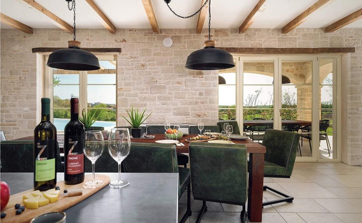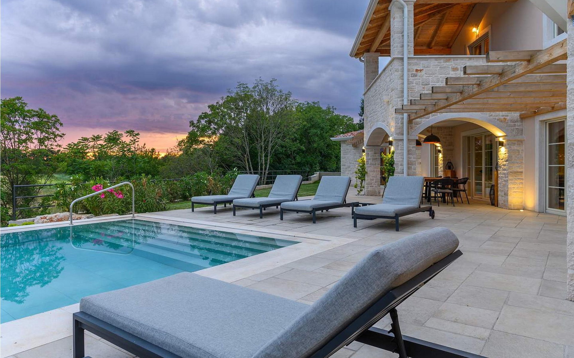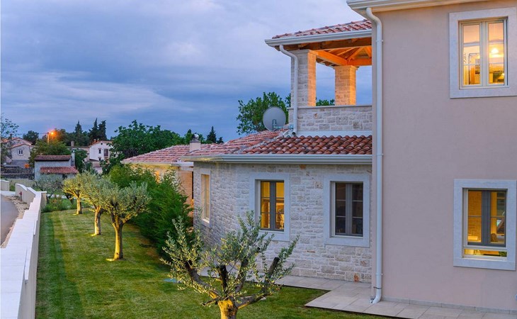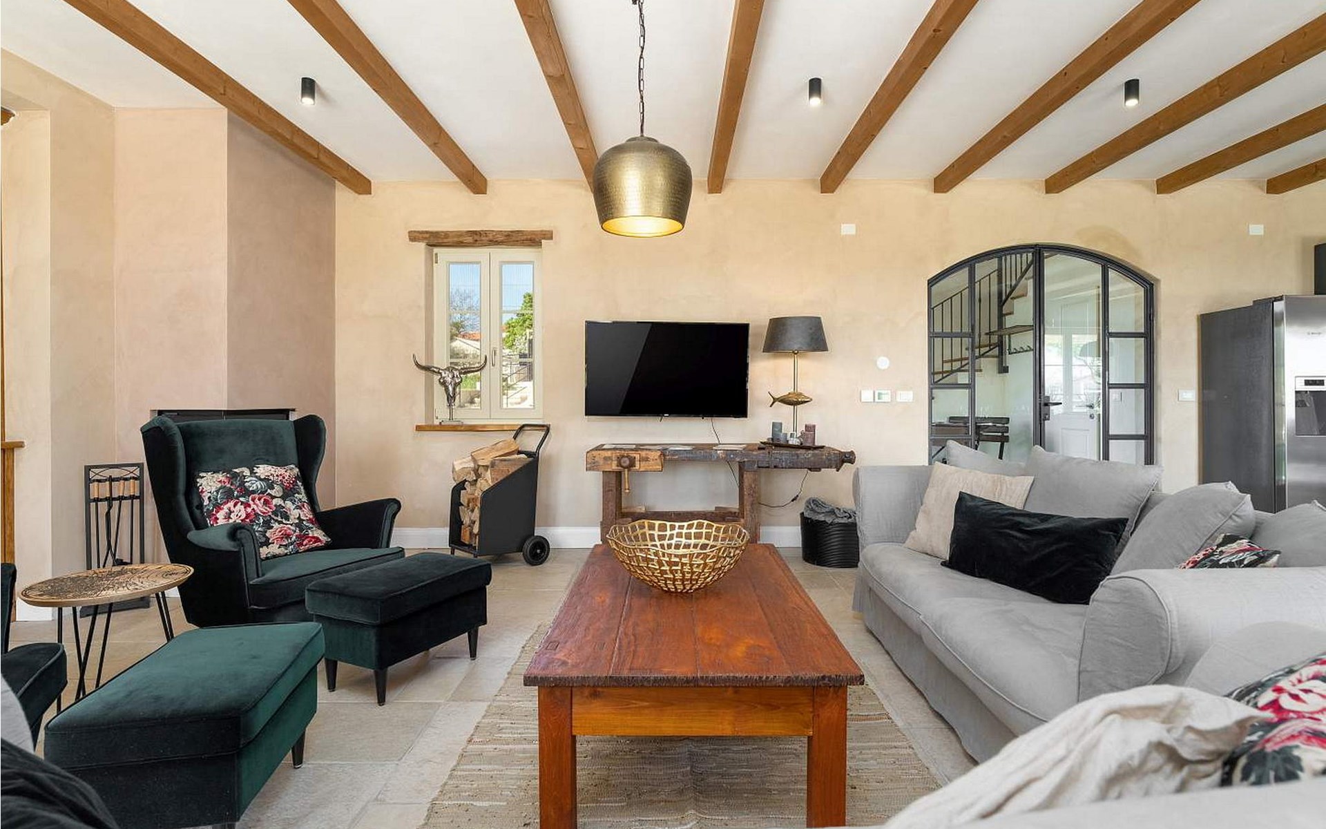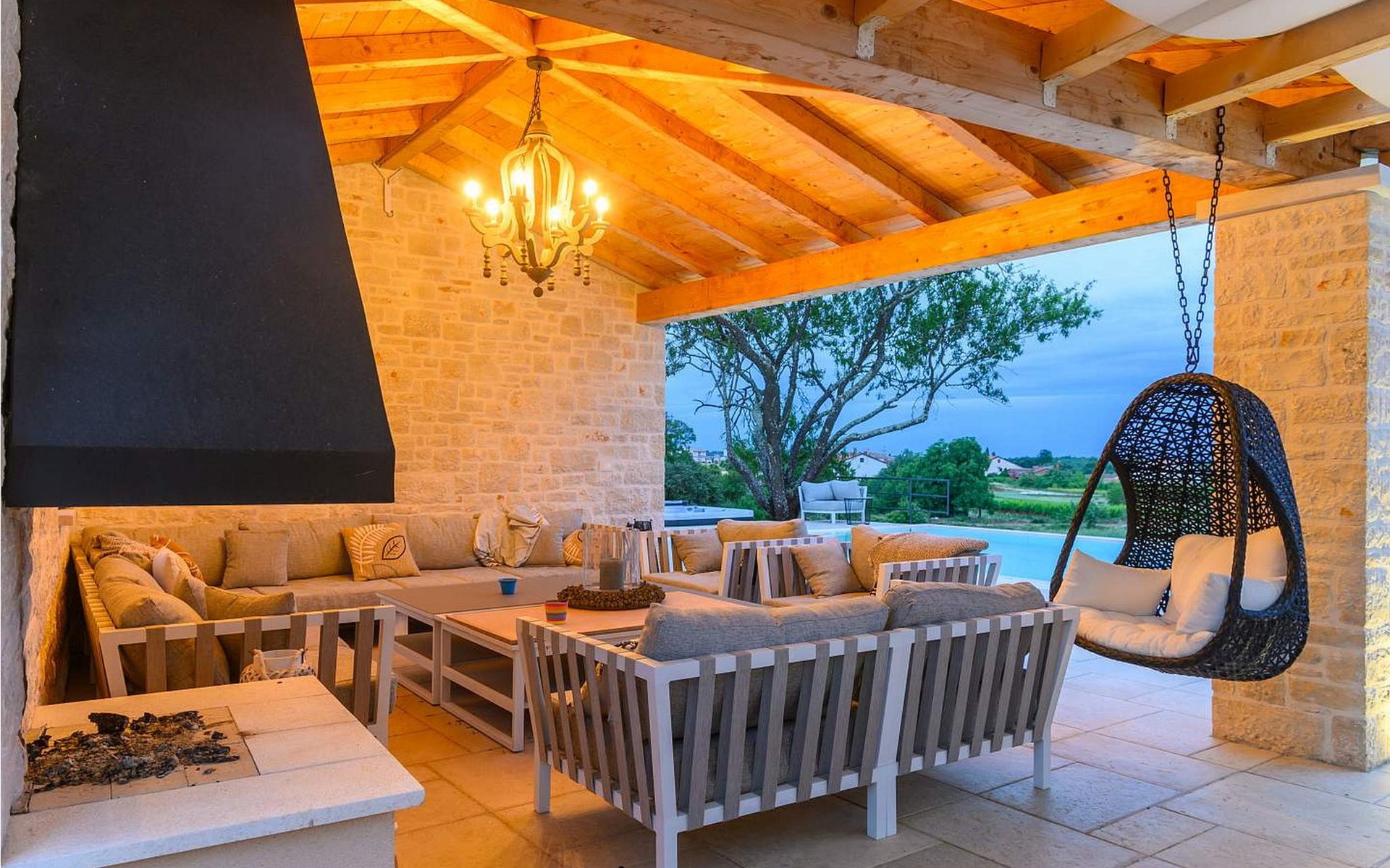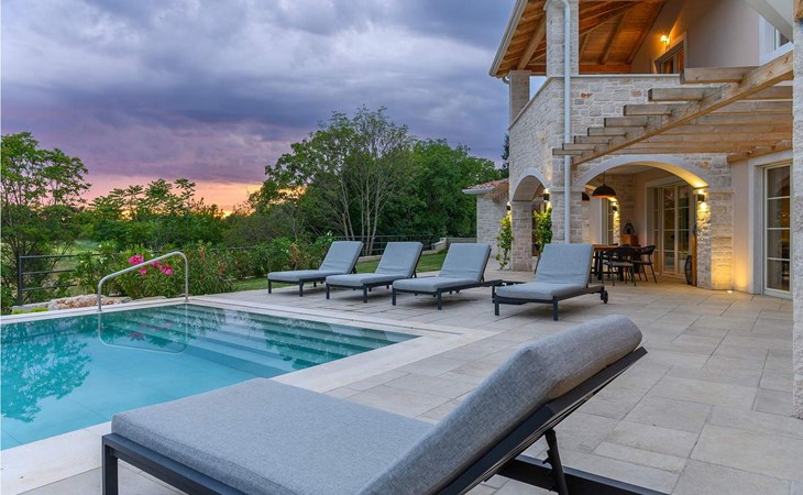Villa Rapavel ist eine atemberaubende neue Villa im traditionellen Stil mit Infinity-Pool und Panoramablick auf die Weinberge. Am Rande des Dorfes gelegen, bietet sie absolute Privatsphäre für einen erholsamen Aufenthalt. Die Villa verfügt über einen geselligen, offenen Raum, der Küche, Essbereich und Wohnzimmer vereint und sich ideal für Zusammenkünfte eignet. Im Erdgeschoss befinden sich außerdem zwei komfortable Doppelzimmer, jedes mit eigenem Bad, sowie eine separate Toilette. Im Obergeschoss befinden sich drei geschmackvoll eingerichtete Doppelzimmer, jedes mit eigenem Bad und Zugang zu einer Terrasse mit spektakulärer Aussicht. Draußen bietet die Villa hervorragende Möglichkeiten zum Entspannen und Essen. Genießen Sie den Salzwasser-Infinity-Pool, eine überdachte Terrasse mit stilvollen Gartenmöbeln, einen Grill und einen Esstisch für 10 Personen. Zu den weiteren Annehmlichkeiten gehören ein Whirlpool und eine Außensauna mit Bad. Die Gegend in der Nähe von Rapavel ist für ihre ausgezeichneten traditionellen Tavernen und Winzer bekannt. Die 14 km entfernte Stadt Poreč ist reich an kulturellem Erbe und beherbergt die Basilika der Euphrasia, ein Meisterwerk aus dem 6. Jahrhundert. Die nahegelegene Stadt Visnjan bietet einen traditionellen offenen Markt und eine alte Terrasse mit atemberaubendem Meerblick. Die Villa Rapavel vereint Charakter, Luxus und Komfort und ist damit die perfekte Wahl für einen unvergesslichen Urlaub.