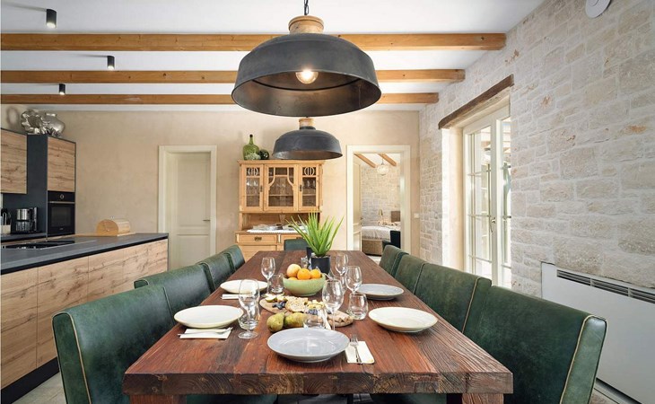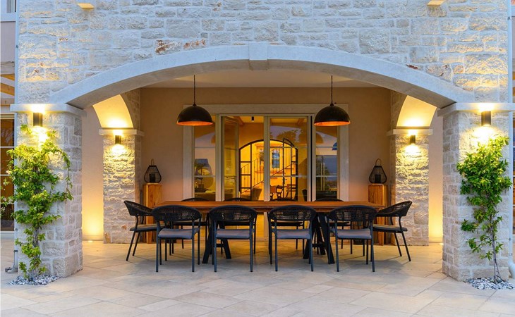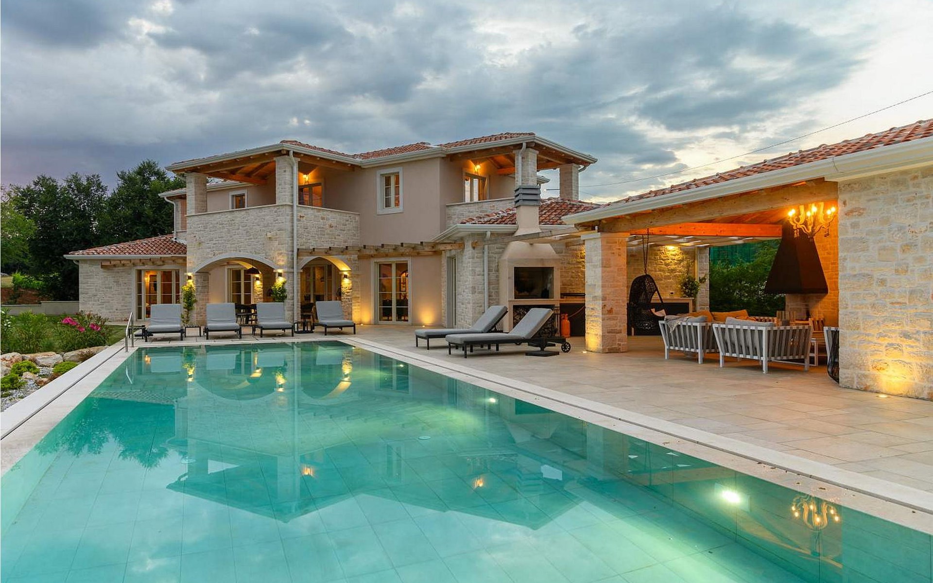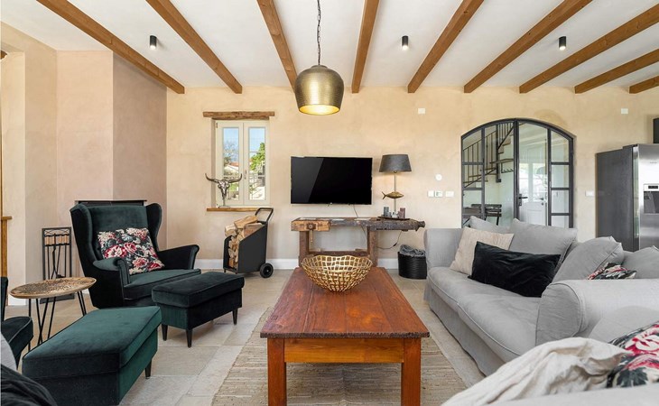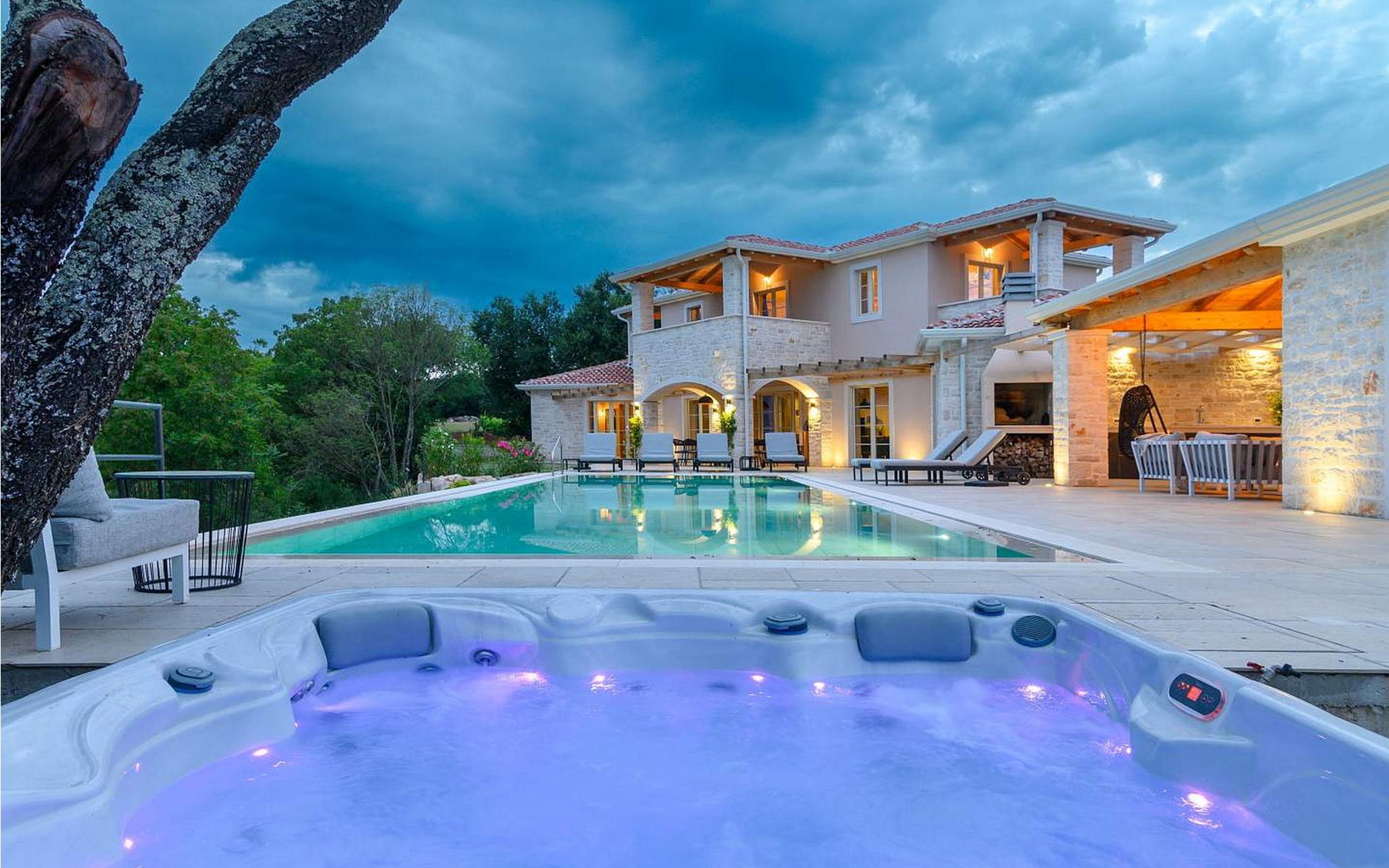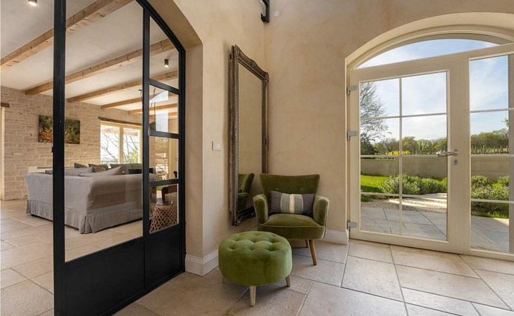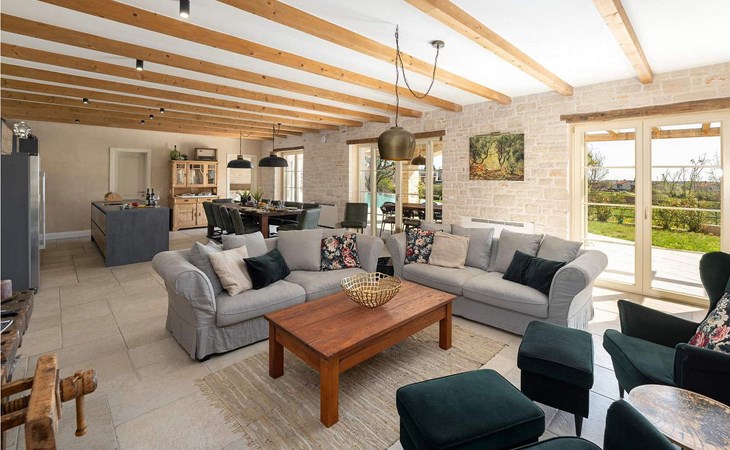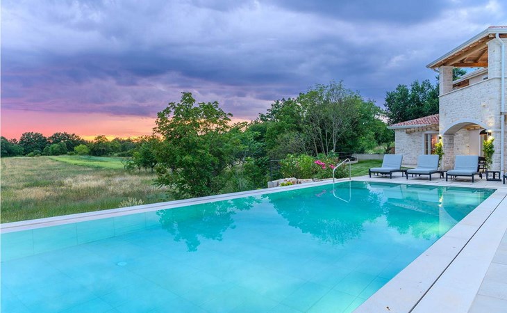 Villa Rapavel ist eine atemberaubende neue Villa im traditionellen Stil mit Infinity-Pool und Panoramablick auf die Weinberge. Am Rande des Dorfes gelegen, bietet sie absolute Privatsphäre für einen erholsamen Aufenthalt. Die Villa verfügt über einen geselligen, offenen Raum, der Küche, Essbereich und Wohnzimmer vereint und sich ideal für Zusammenkünfte eignet. Im Erdgeschoss befinden sich außerdem zwei komfortable Doppelzimmer, jedes mit eigenem Bad, sowie eine separate Toilette. Im Obergeschoss befinden sich drei geschmackvoll eingerichtete Doppelzimmer, jedes mit eigenem Bad und Zugang zu einer Terrasse mit spektakulärer Aussicht. Draußen bietet die Villa hervorragende Möglichkeiten zum Entspannen und Essen. Genießen Sie den Salzwasser-Infinity-Pool, eine überdachte Terrasse mit stilvollen Gartenmöbeln, einen Grill und einen Esstisch für 10 Personen. Zu den weiteren Annehmlichkeiten gehören ein Whirlpool und eine Außensauna mit Bad. Die Gegend in der Nähe von Rapavel ist für ihre ausgezeichneten traditionellen Tavernen und Winzer bekannt. Die 14 km entfernte Stadt Poreč ist reich an kulturellem Erbe und beherbergt die Basilika der Euphrasia, ein Meisterwerk aus dem 6. Jahrhundert. Die nahegelegene Stadt Visnjan bietet einen traditionellen offenen Markt und eine alte Terrasse mit atemberaubendem Meerblick. Die Villa Rapavel vereint Charakter, Luxus und Komfort und ist damit die perfekte Wahl für einen unvergesslichen Urlaub.