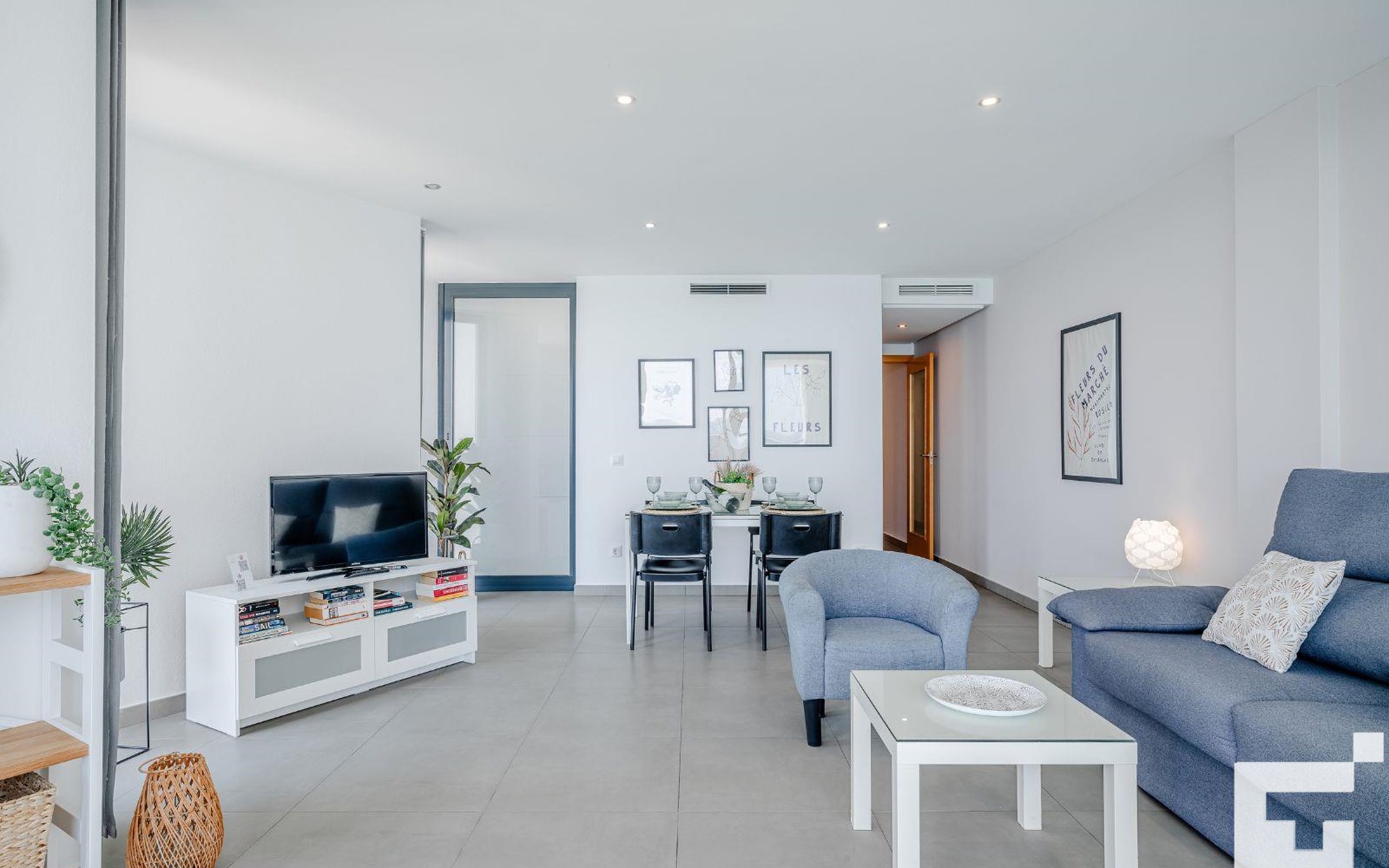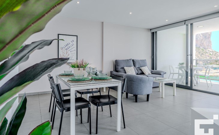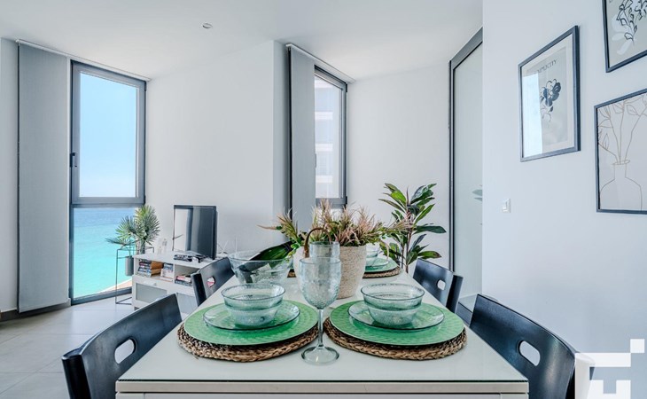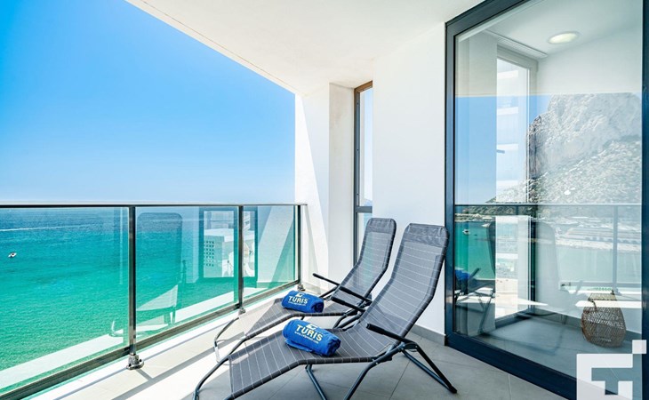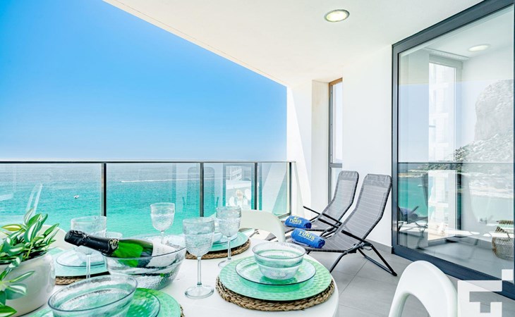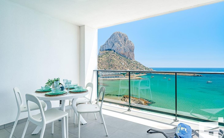 Genieße einen unvergesslichen Urlaub in diesem geräumigen und hellen Apartment in erster Linie am wunderschönen Strand Playa Cantal Roig in Calpe (Costa Blanca). Mit Platz für bis zu 4 Personen und einem modernen Design bietet diese Unterkunft einen atemberaubenden Blick auf das Meer, den Peñón de Ifach und die Bucht – all das kannst du von der privaten Terrasse aus bewundern.