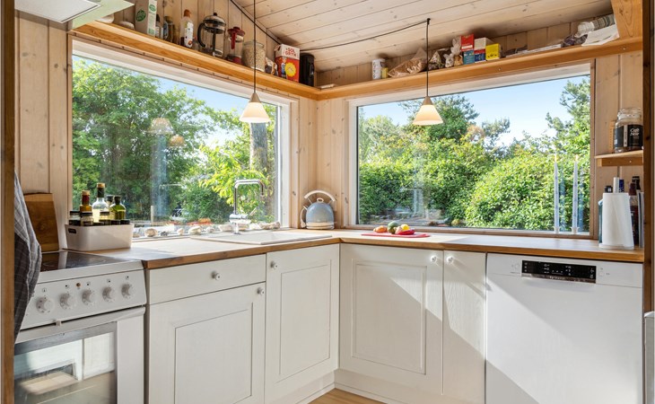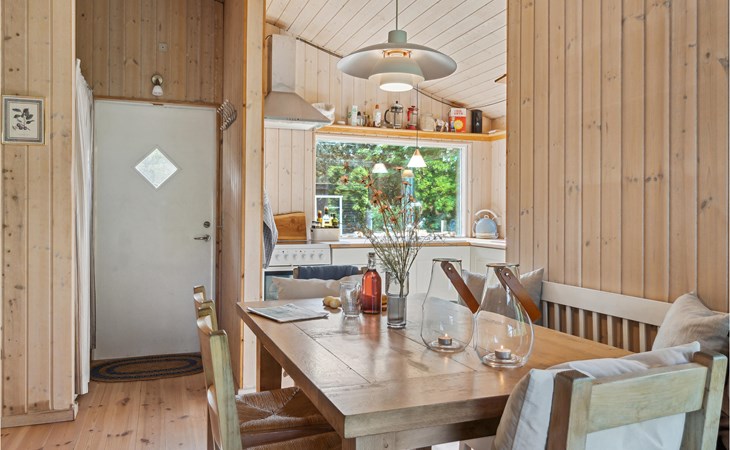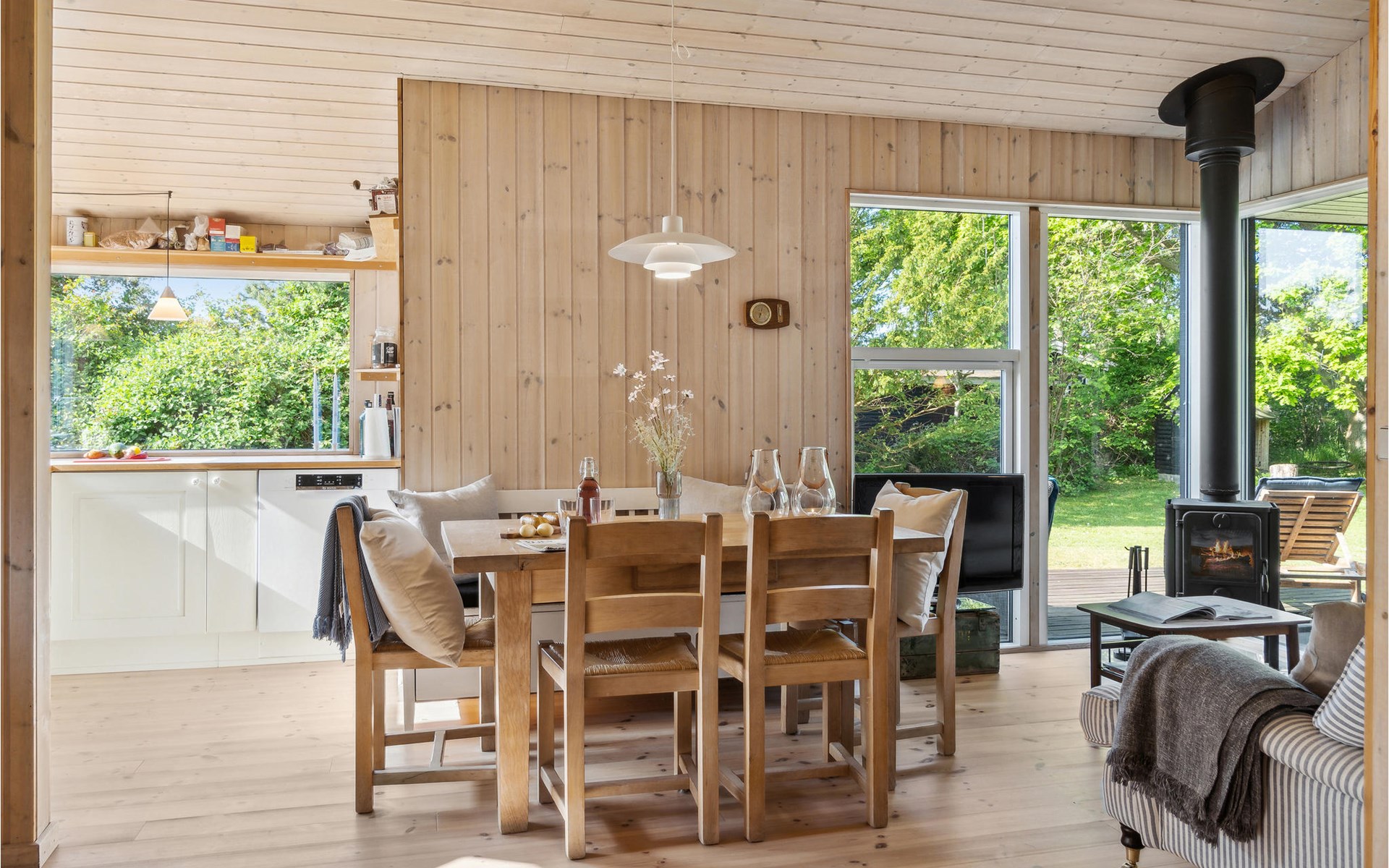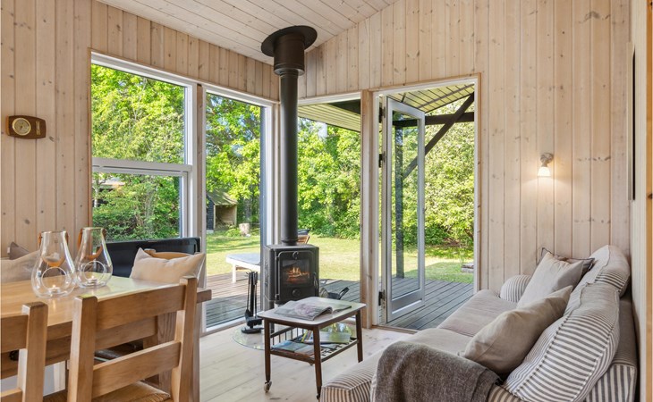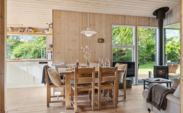 Von diesem schönen Haus erreichen Sie das Meer mit wenigen Schritten, so dass Badespaß und Angelausflüge feste Bestandteile des Urlaubs sind. Die einladenden, hellen Räume, denen die Holzverkleidung einen warmen Ausdruck verleiht, bilden einen gemütlichen Rahmen, in dem Sie den Alltag weit hinter sich lassen können. Entspannen Sie hier mit schönem Blick in den Garten, machen Sie es sich mit einem Film oder Spielen gemütlich und genießen Sie die Urlaubsabende, während im Kaminofen die Flammen leise knistern.