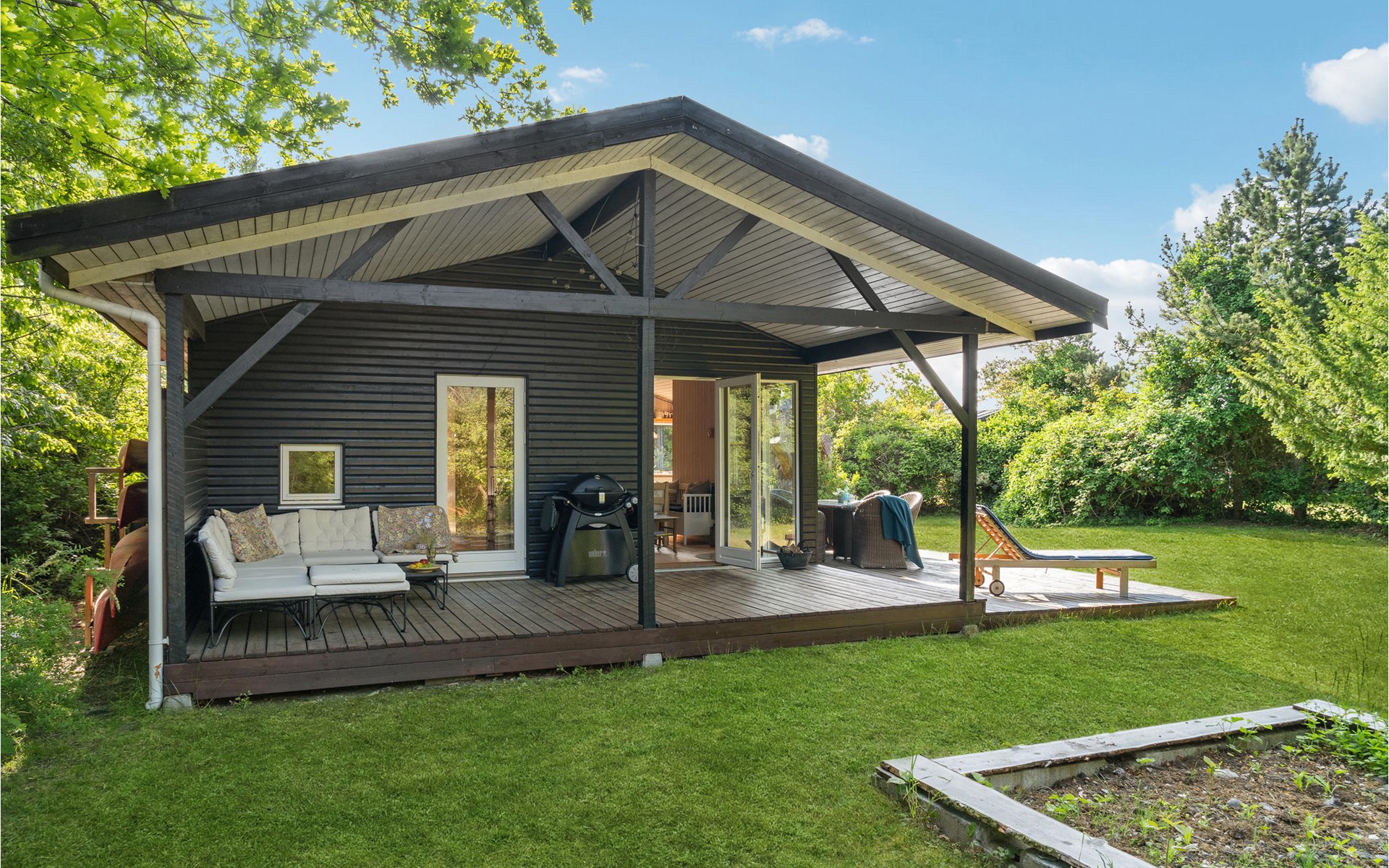Treten Sie aus dem Wohnbereich auf die Terrasse, das von Bäumen umgebene Grundstück bietet viel Platz zum Spielen und Entspannen. Ein schöner Grillnachmittag ist ein Genuss für die ganze Familie, und auch ein Abend am Lagerfeuer erfreut Groß und Klein.