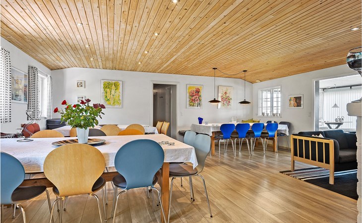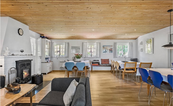 Sei es eine oder mehrere Familien oder verschiedene Freundesgruppen - in diesem gemütlichen Haus finden alle Platz. Dank der geschickten Raumaufteilung mit mehreren Schlafzimmern und großzügigen Gemeinschaftsbereichen kommen Sie hier in schöner Atmosphäre zusammen, und haben trotzdem einen privaten Rückzugsort. Auch für die Kleinsten ist mit Stockbetten gesorgt. Im großen Essbereich vorm Kamin können gemeinsame Festessen oder Spieleabende stattfinden.