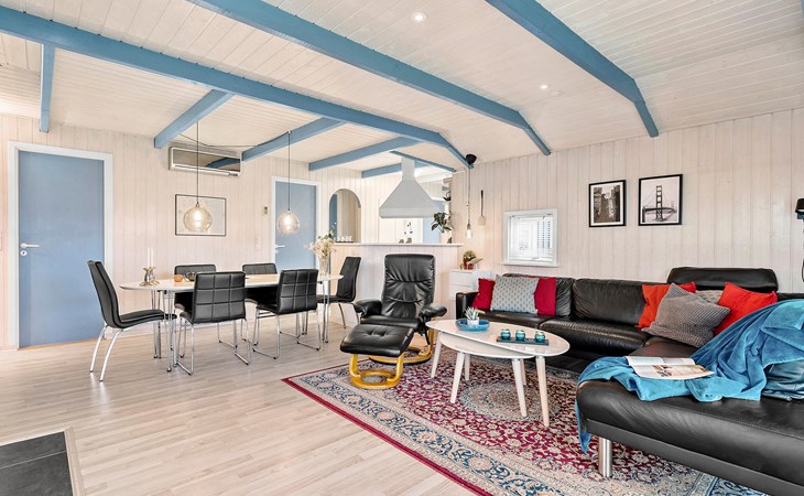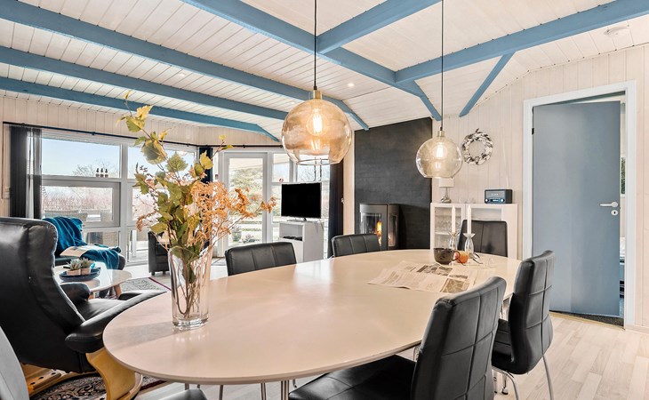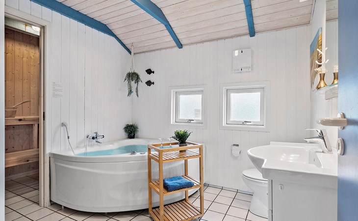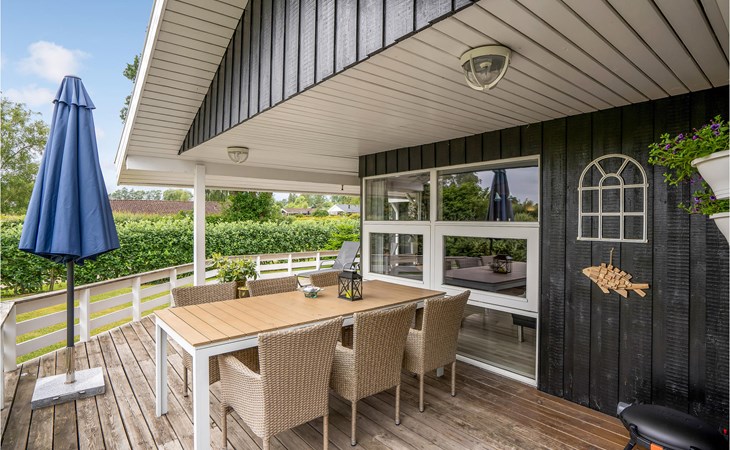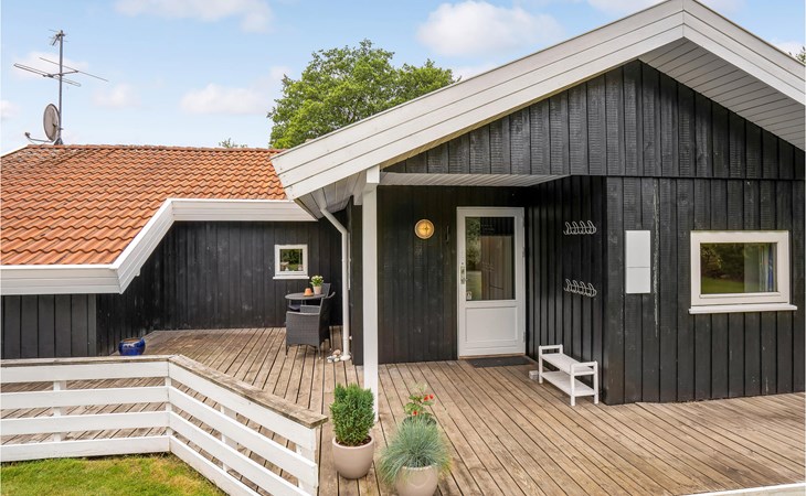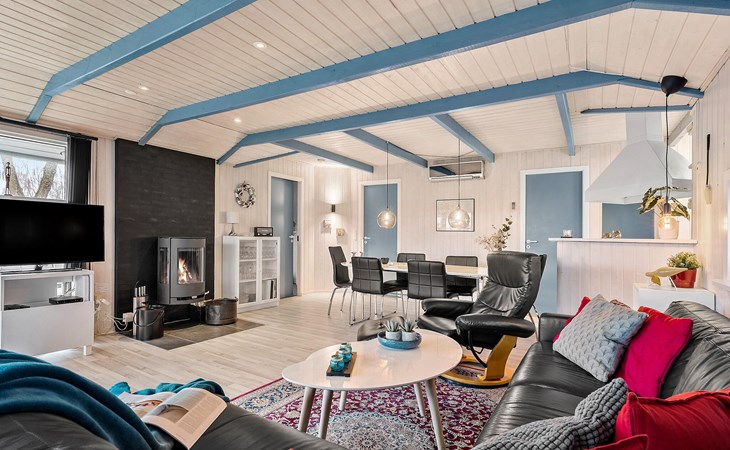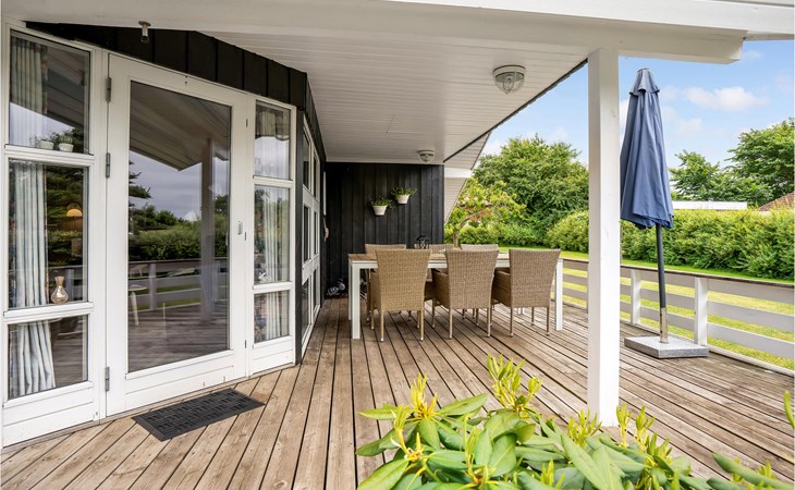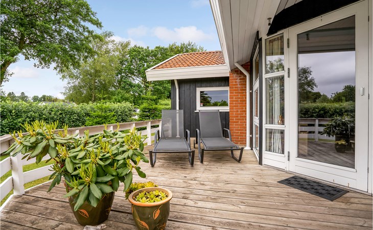 Auf einem großen, geschlossenen Gartengrund liegt dieses schöne Ferienhaus. Es ist gut ausgestattet und die Einrichtung ist geschmackvoll und komfortabel. Küche und Wohnzimmer liegen in offener Verbindung zueinander. Das geräumige Badezimmer bietet Wellness pur mit einer Sauna und einem Whirlpool. Im Winter können Sie es sich vor dem Kaminofen gemütlich machen. Eine Wärmepumpe dient außerdem als Wärmequelle im Haus. Im Außenbereich erwarten Sie mehrere teilweise überdachte Terrassen mit mehreren Sitzgelegenheiten, so dass Sie je nach Tageszeit immer einen angenehmen Platz im Freien finden werden.