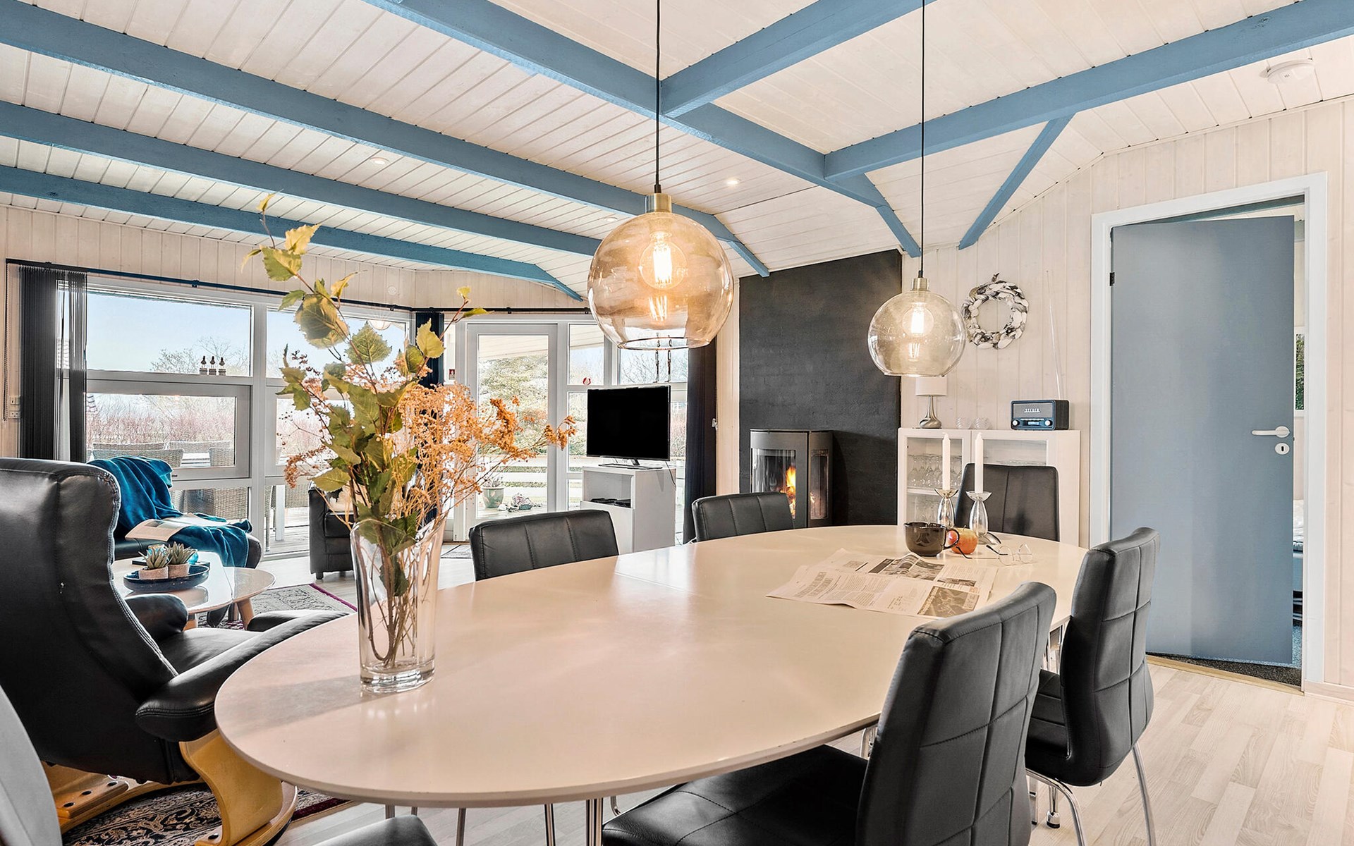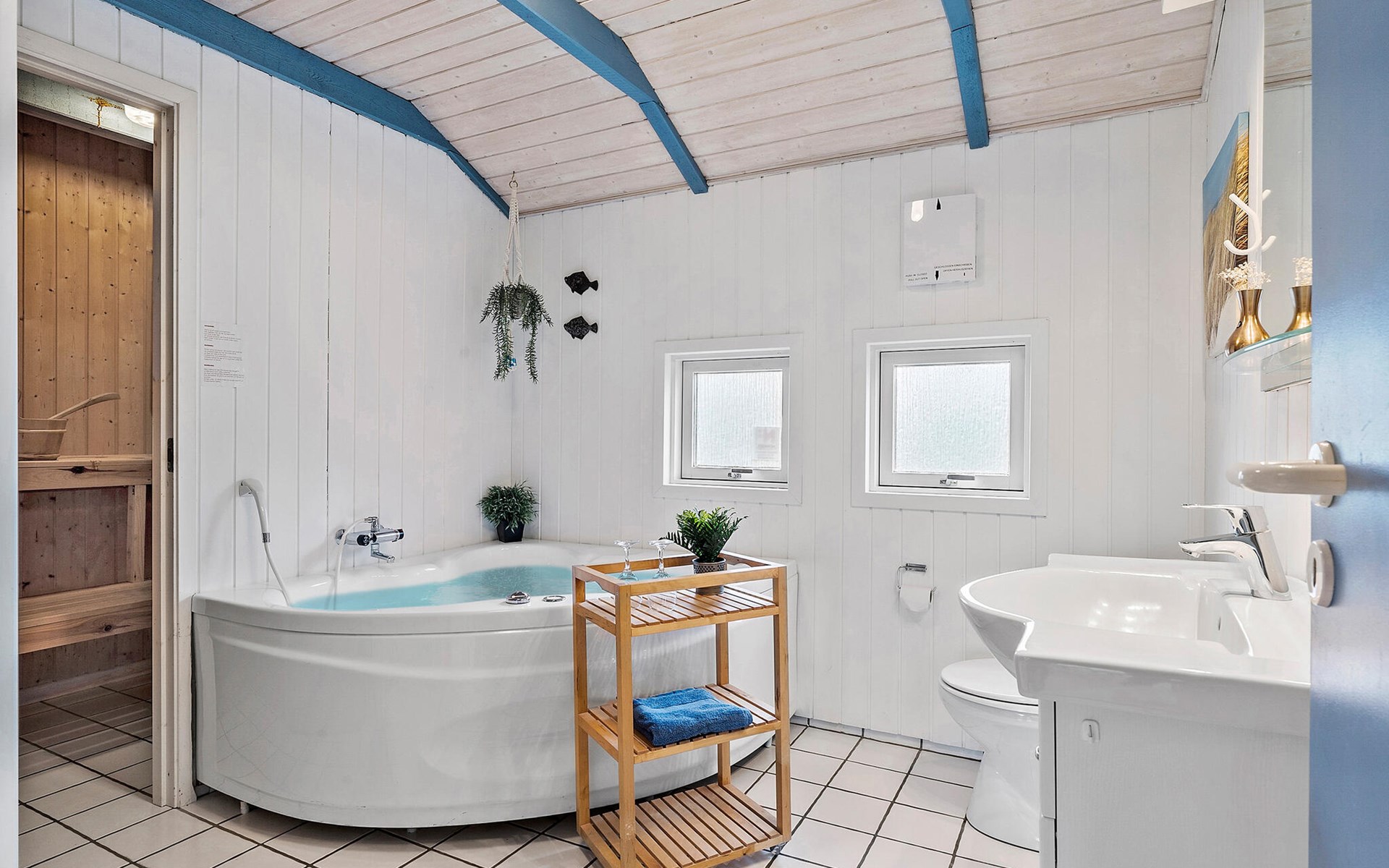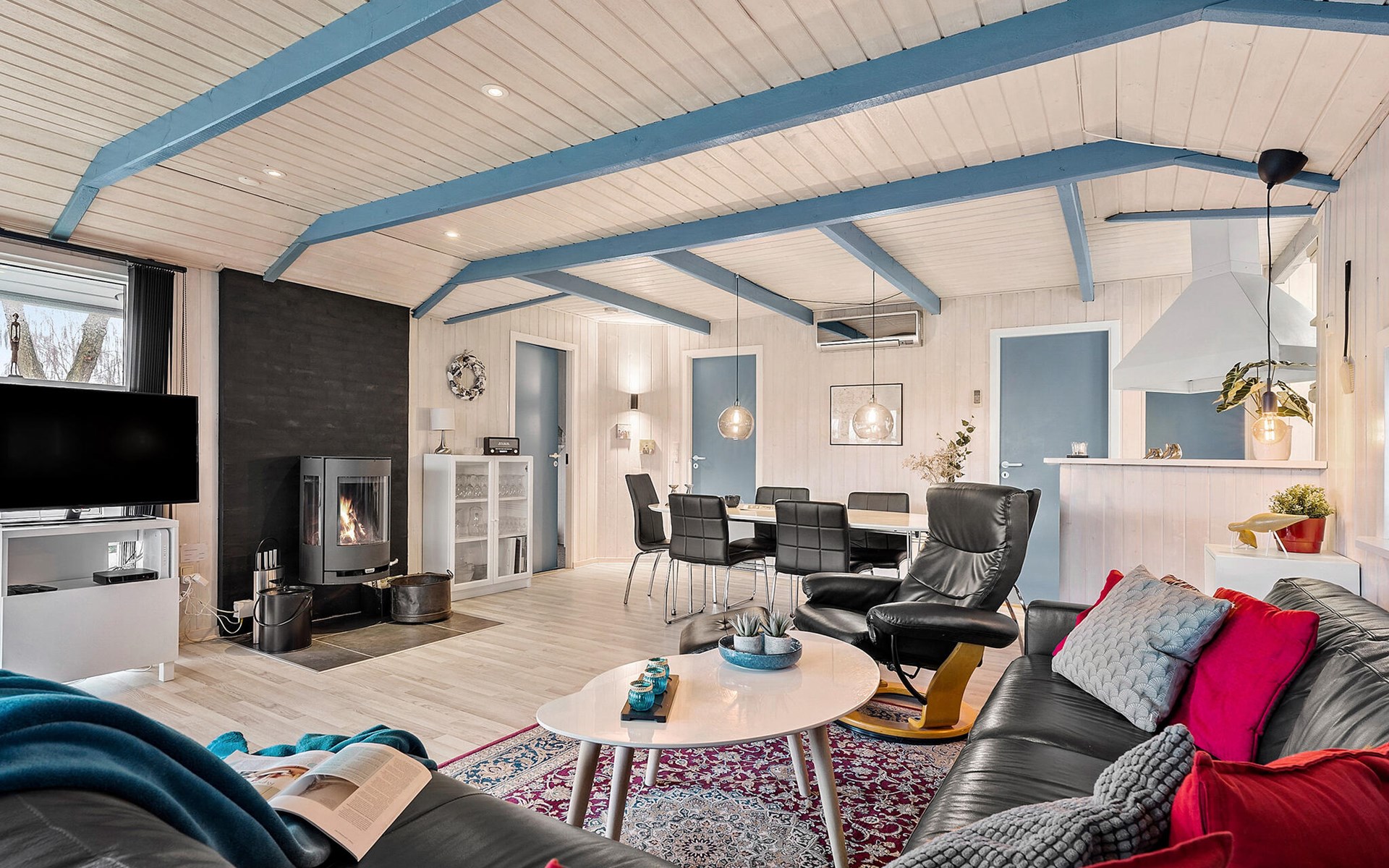 Auf einem großen, geschlossenen Gartengrund liegt dieses schöne Ferienhaus. Es ist gut ausgestattet und die Einrichtung ist geschmackvoll und komfortabel. Küche und Wohnzimmer liegen in offener Verbindung zueinander. Das geräumige Badezimmer bietet Wellness pur mit einer Sauna und einem Whirlpool. Im Winter können Sie es sich vor dem Kaminofen gemütlich machen. Eine Wärmepumpe dient außerdem als Wärmequelle im Haus. Im Außenbereich erwarten Sie mehrere teilweise überdachte Terrassen mit mehreren Sitzgelegenheiten, so dass Sie je nach Tageszeit immer einen angenehmen Platz im Freien finden werden.