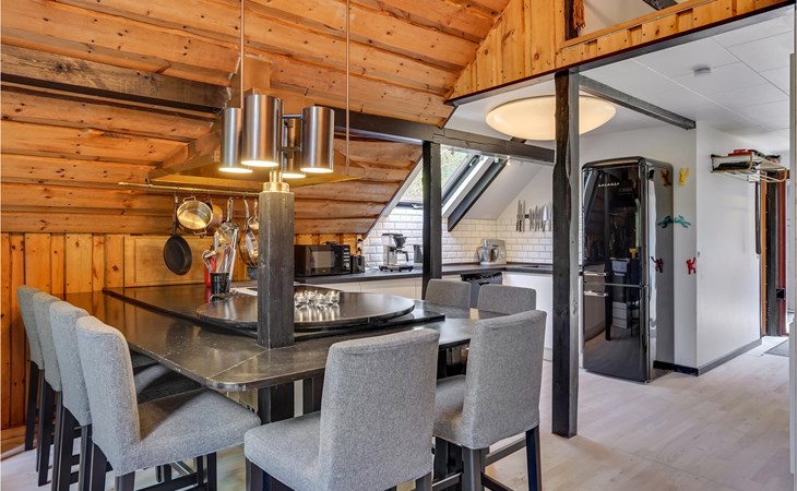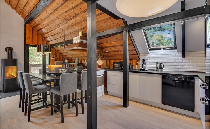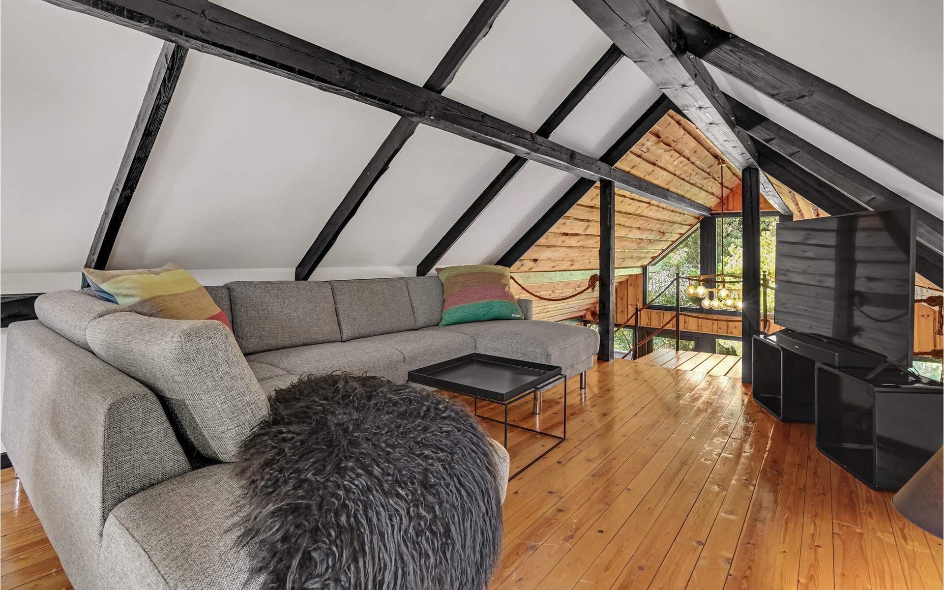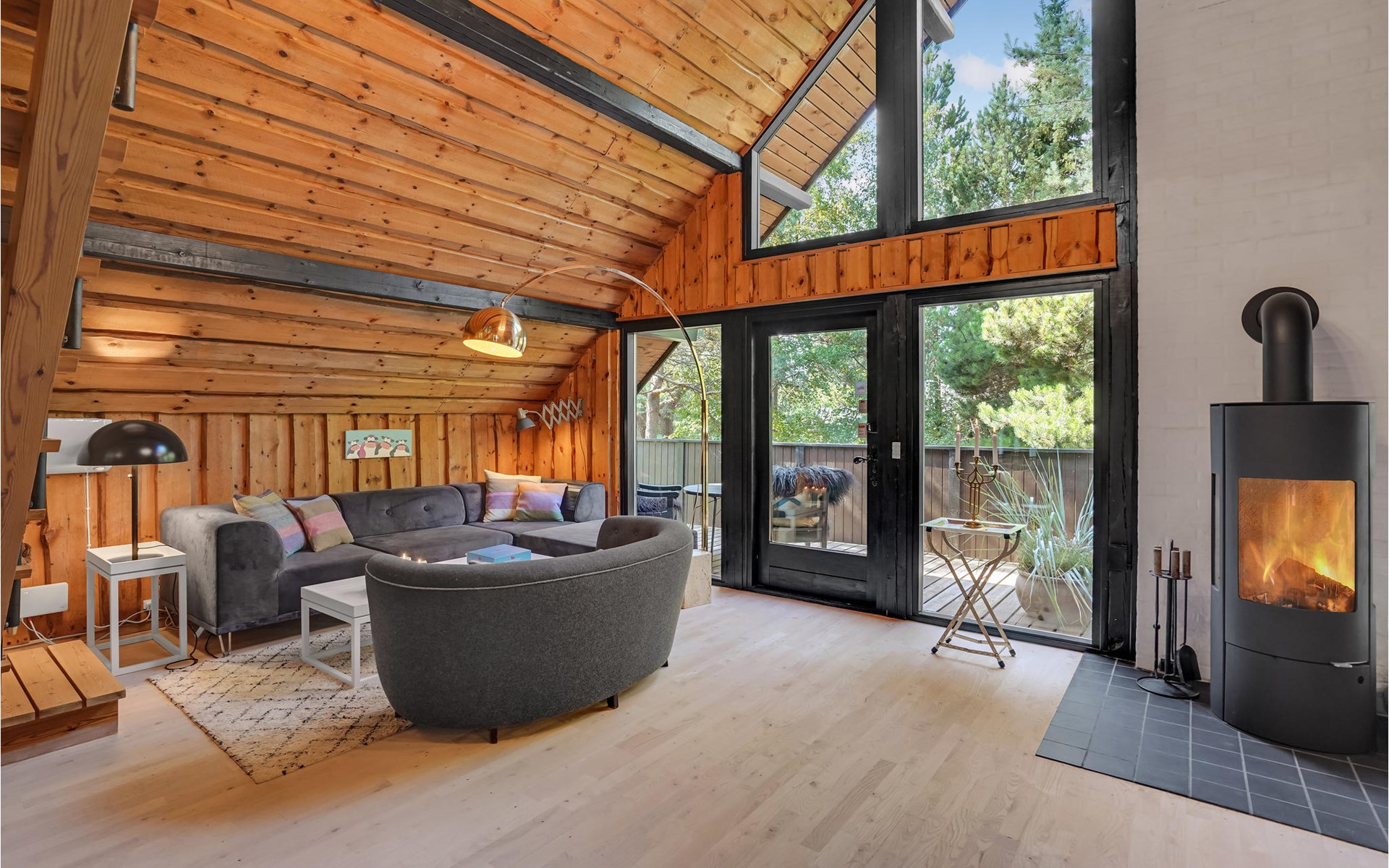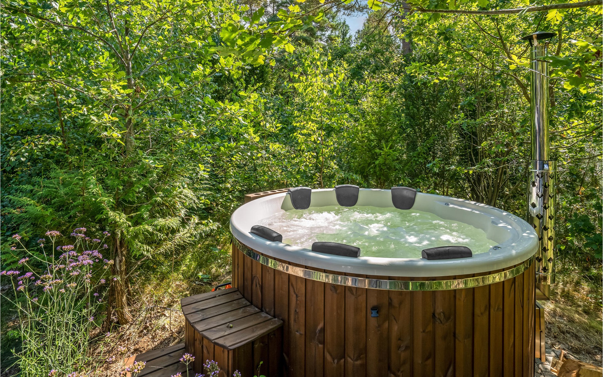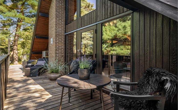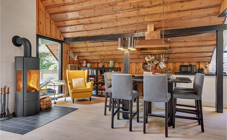 Charmantes Ferienhaus. Das Haus liegt in der Nähe von Gudmindrup Strand, einem der schönsten Strände an der Küste, der kinderfreundlich und mit Dünen ist. Das Haupthaus besteht aus Badezimmer mit Badewanne, 1 Schlafzimmer mit Zugang zum privaten Badezimmer mit Dusche, schöne Küche Familienzimmer in offener Kombination mit dem Wohnzimmer, über eine Treppe Zugang zum Fernsehzimmer. Vom Wohnzimmer Zugang zur offenen und überdachten Terrasse. Das Haus ist durch ein Nebengebäude mit einer schönen offenen Terrasse verbunden, auf der Sie viele Stunden mit angenehmen Grillabenden verbringen können. Genießen Sie nach einem Aufenthalt im finnischen Holzbad eine herrliche Abkühlung im kalten Tauchbecken.