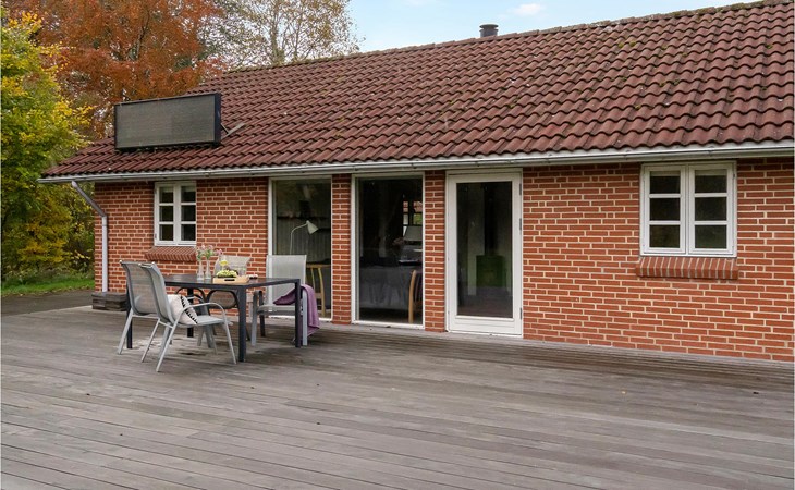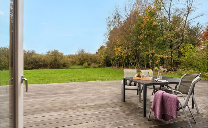 Draußen können Sie entspannte Nachmittage auf der Terrasse verbringen oder sich mit der ganzen Familie bei einer Runde Wikingspiel vergnügen, während Ihre Vierbeiner im eingezäunten Garten herumschnüffeln.