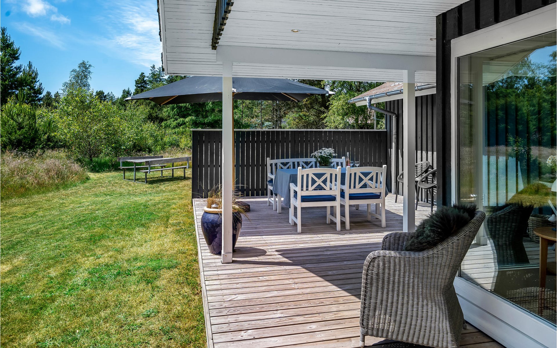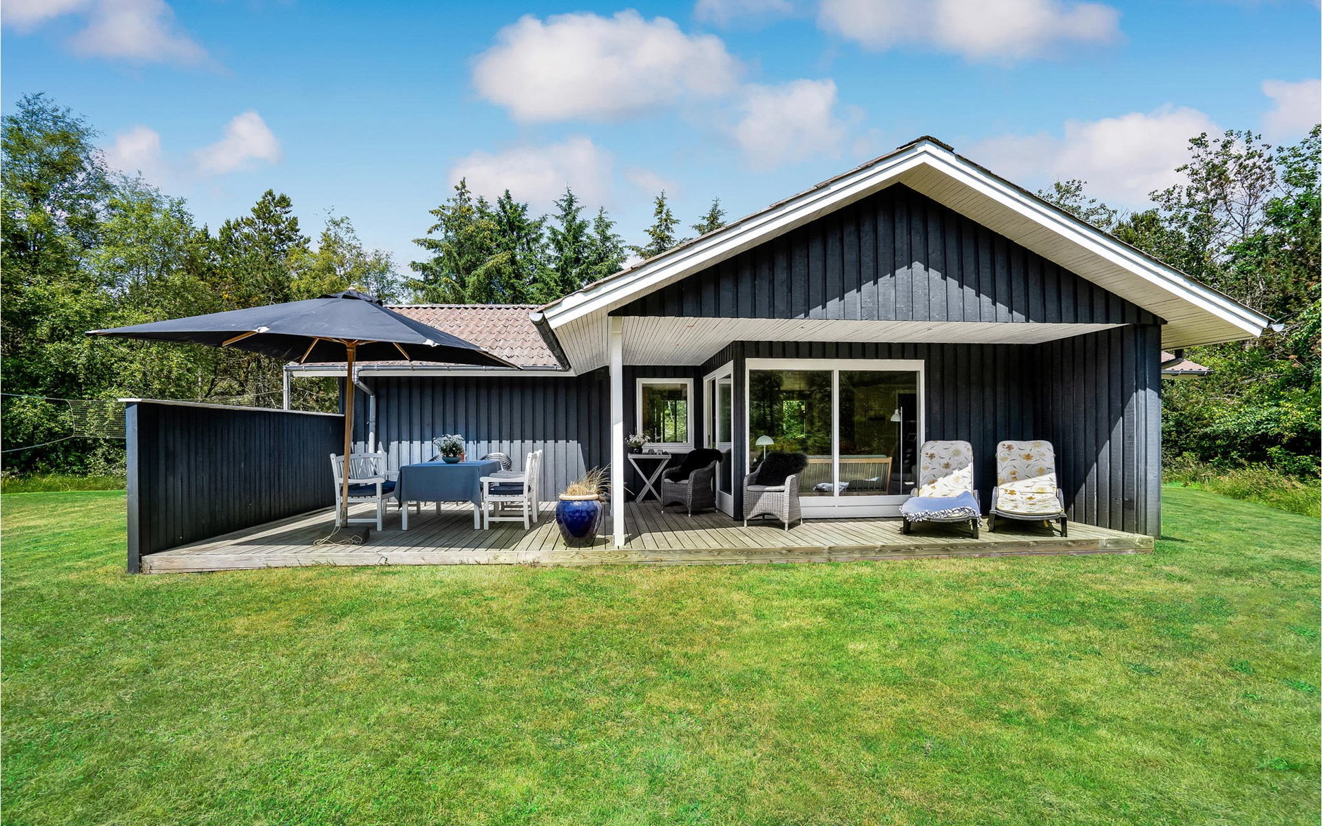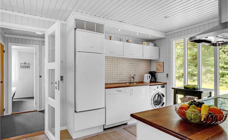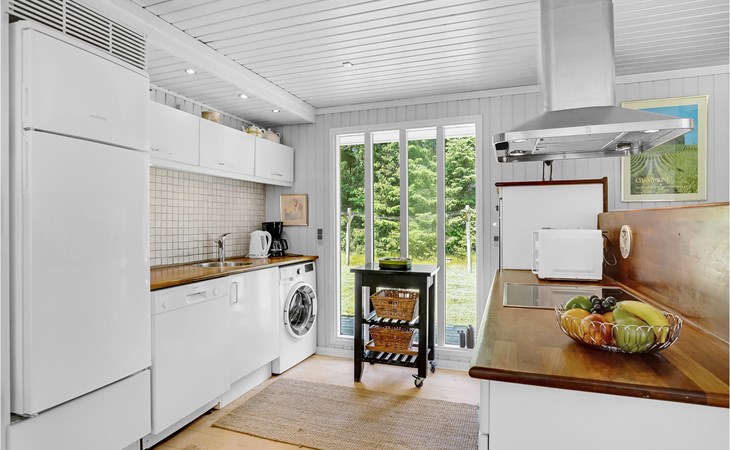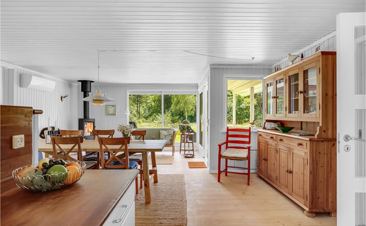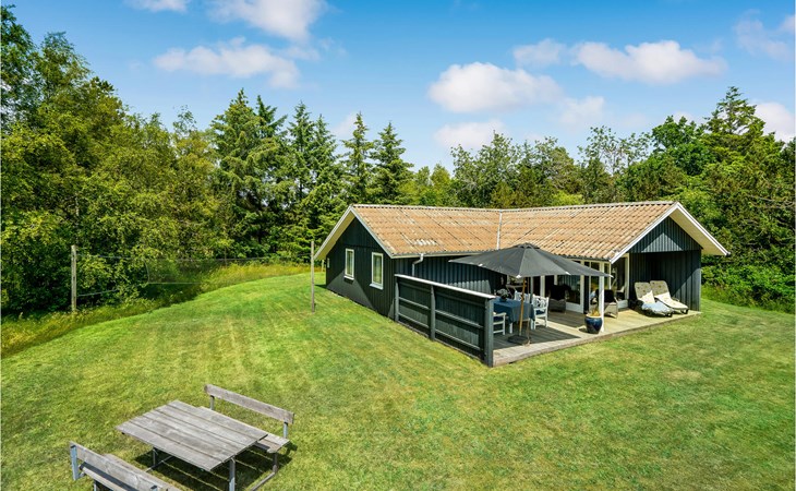 Dieses Ferienhaus ist sehr gemütlich und geschmackvoll eingerichtet. Es liegt auf einem geschlossenen Naturgrundstück in einer ruhigen Umgebung bei Ho. Knotenpunkt des Hauses ist der lange Esstisch zwischen der offenen Küche und dem Wohnraum. Aufgrund des hellen Holzbodens und der großen Fensterpartien ist der Raum sehr offen und hell. Im Freien befindet sich eine schöne, große Terrasse. Außerdem ist eine Rasenfläche vorhanden, die sehr gut zum Spielen geeignet ist. Alles in allem ein richtig tolles Ferienhaus.
