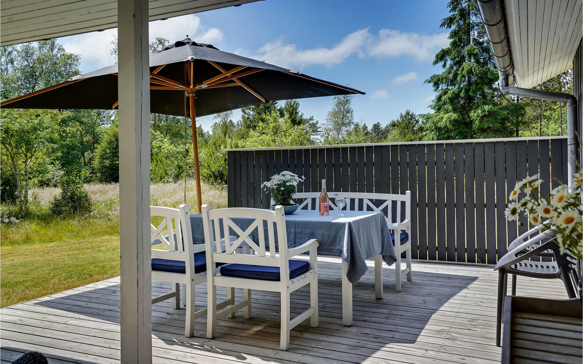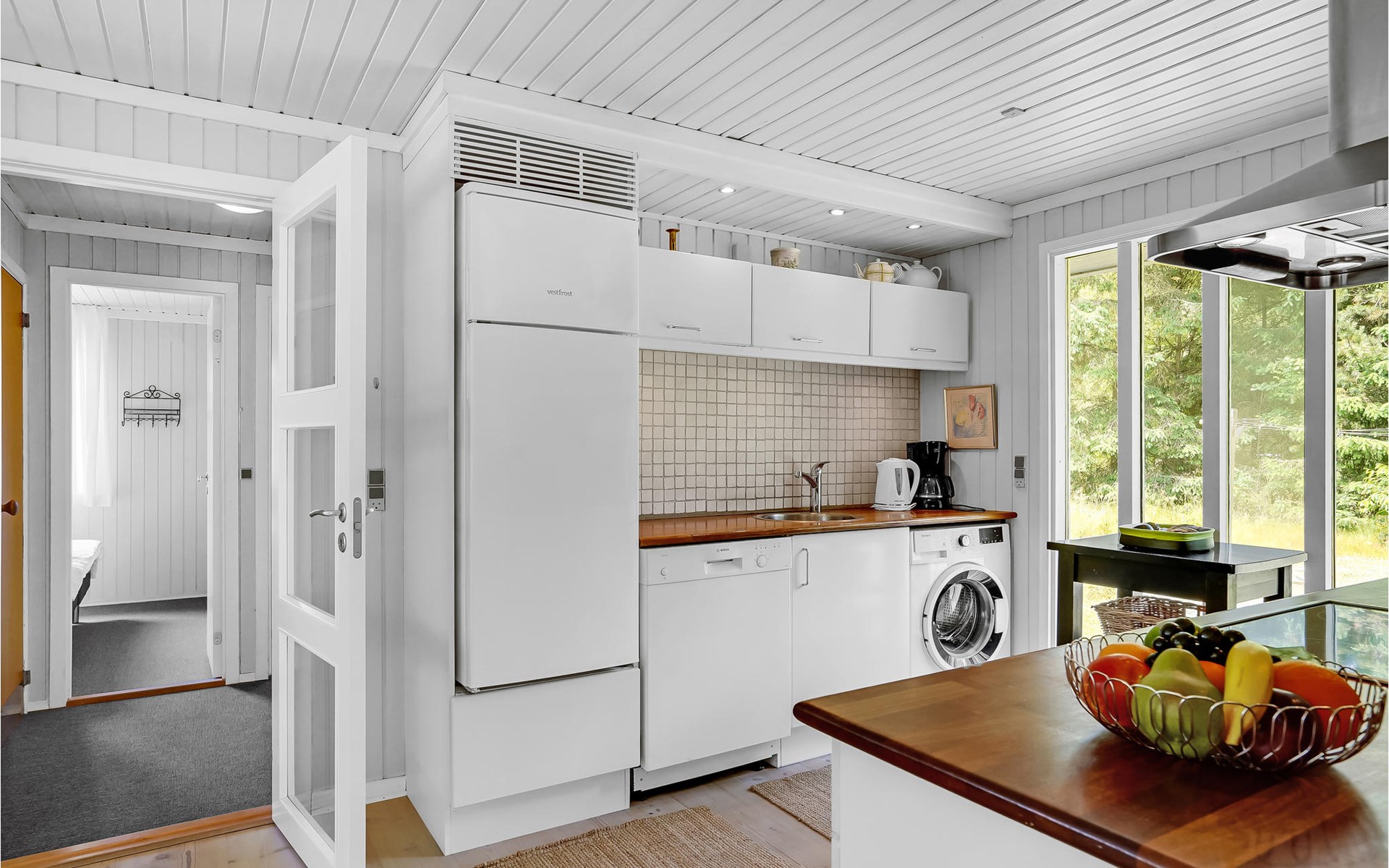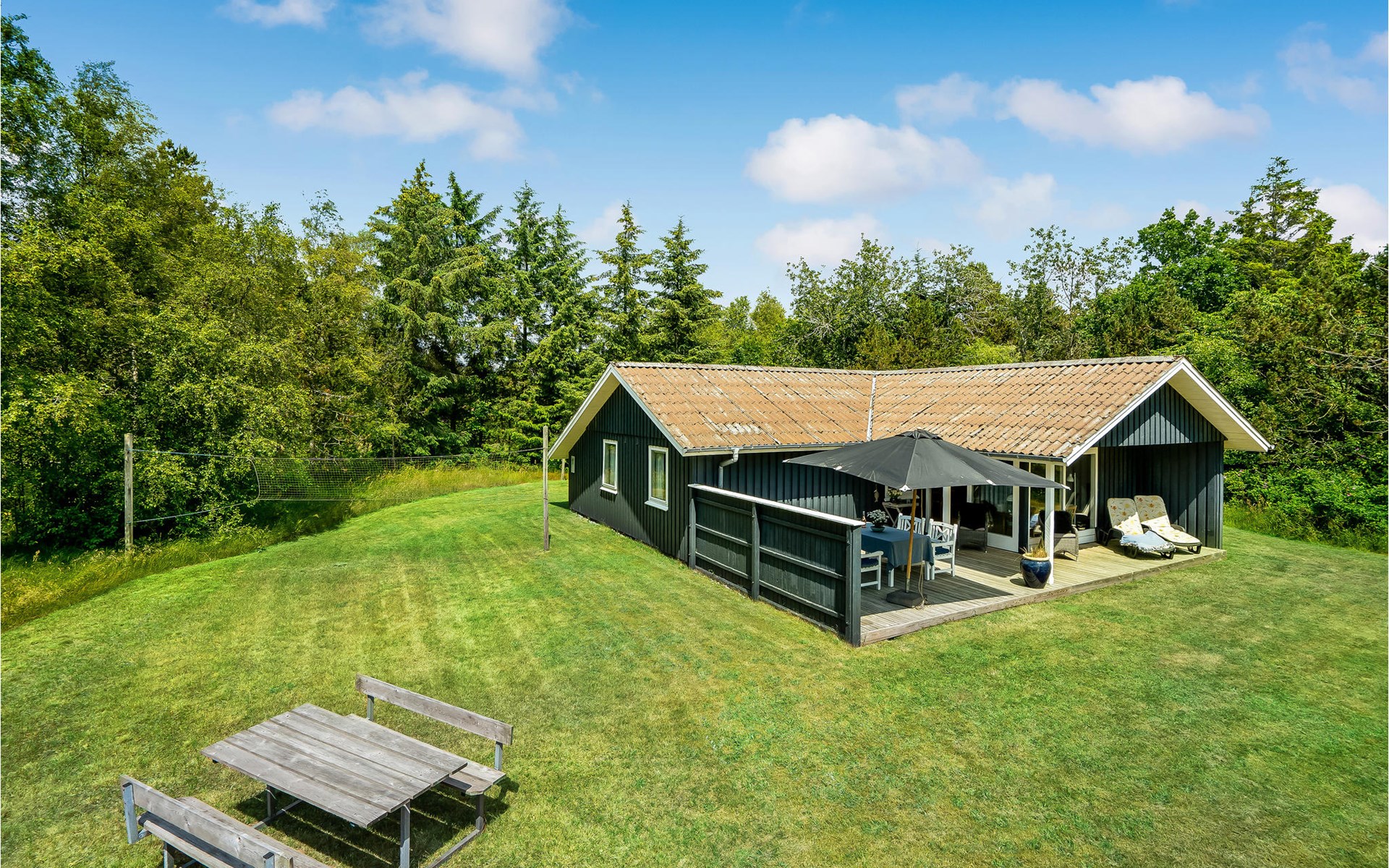 Dieses Ferienhaus ist sehr gemütlich und geschmackvoll eingerichtet. Es liegt auf einem geschlossenen Naturgrundstück in einer ruhigen Umgebung bei Ho. Knotenpunkt des Hauses ist der lange Esstisch zwischen der offenen Küche und dem Wohnraum. Aufgrund des hellen Holzbodens und der großen Fensterpartien ist der Raum sehr offen und hell. Im Freien befindet sich eine schöne, große Terrasse. Außerdem ist eine Rasenfläche vorhanden, die sehr gut zum Spielen geeignet ist. Alles in allem ein richtig tolles Ferienhaus.