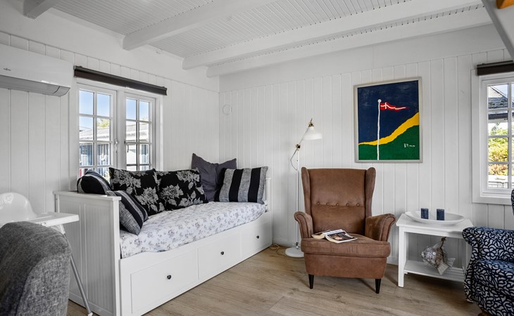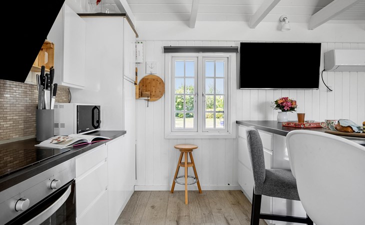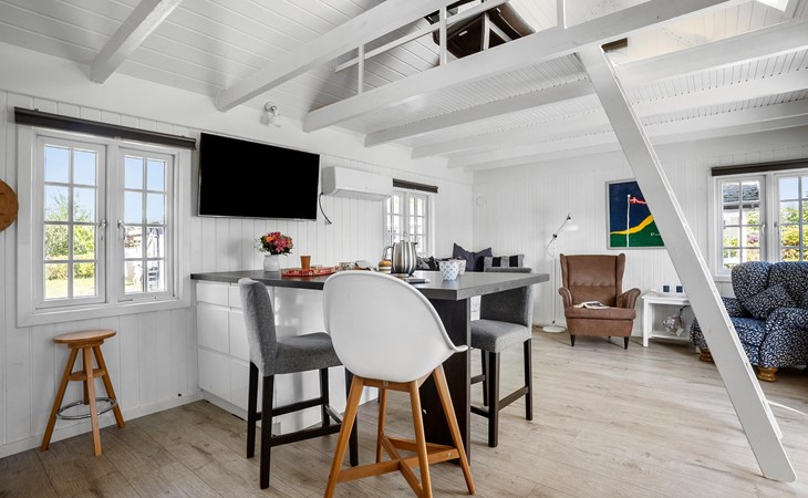 Nur wenige Schritte vom beliebten Hasmark Strand entfernt, lädt Sie dieses komfortable Domizil in sein liebevoll eingerichtetes Interieur ein. Freuen Sie sich auf behagliche Tage in heller, freundlicher Atmosphäre und auf gemütliche Stunden am Kaminofen. Planen Sie Ihre Unternehmungen bei harmonischen Mahlzeiten, lauschen Sie auf dem Lesesessel dem Pfeifen des Windes oder streamen Sie einen spannenden Film, der allen gefällt.