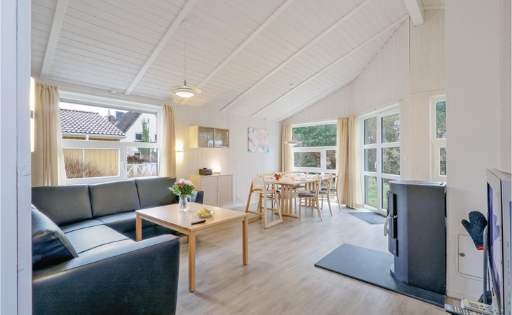 Im Wohnzimmer sorgt ein Kaminofen dafür, dass vor allem in der kalten Jahreszeit durch das prasselnde Feuer eine ganz besondere Atmosphäre gezaubert wird - und der Alltag erscheint bald ganz weit entfernt.