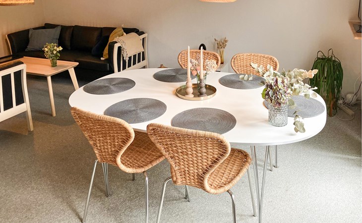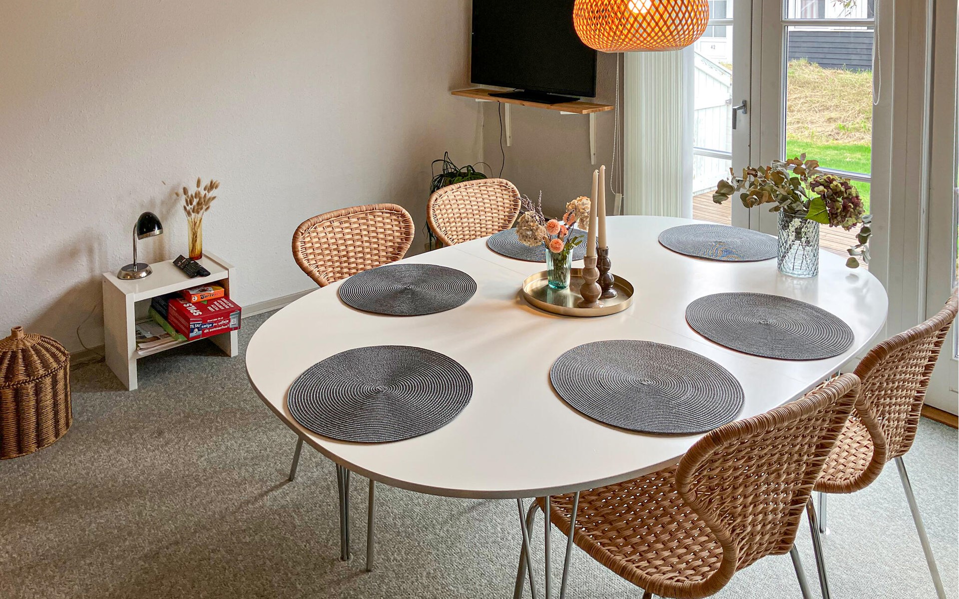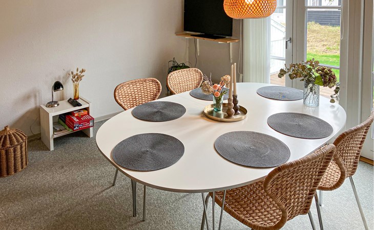 Treten Sie ein und fühlen Sie sich sofort willkommen in diesem freundlich gestalteten Ferienhaus. Die hellen Räume, das geschmackvolle Interieur und die ruhige Lage schaffen eine Atmosphäre, in der Sie und Ihre Familie sich rundum entspannen können. Nur wenige Minuten trennen Sie von der Nordsee, dem Fjord und mehreren idyllischen Seen. Die offene Gestaltung und der schöne Essbereich mit Blick nach draußen laden dazu ein, gemeinsame Mahlzeiten in angenehmer Umgebung zu genießen. Am Abend können Sie im gemütlichen Wohnzimmer zusammensitzen und die Seele baumeln lassen.