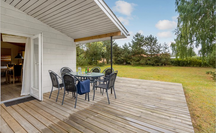 Verbringen Sie mit Ihren Liebesten einen schönen Urlaub in diesem kompakten Ferienhaus. Hier finden Sie alles vor, was Sie für Ihren Komfort und Ihre Verpflegung während des Urlaubs brauchen. Die schöne überdachte Terrasse gibt Ihnen die Möglichkeiten Ihre selbstgekochten Urlaubsmahlzeit zu genießen. Ihre Kinder können im Garten Fußball oder Wikingerschach spielen, während Sie beim Morgenkaffee Ihre Tagesplanung besprechen.