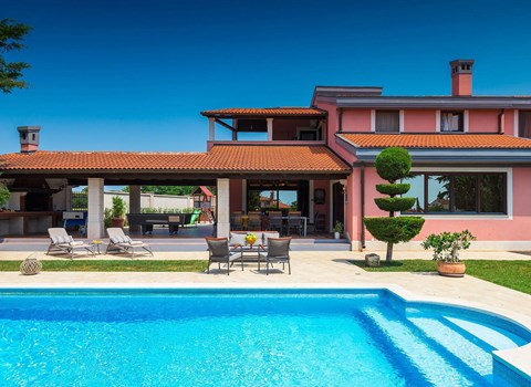 Diese wunderschöne Villa für 10 Personen befindet sich am Rande der schöner Küstenstadt Porec. Gelegen in einer friedlichen Nachbarschaft, Villa David ist die ideale Wahl für Familien, die nach einem Ort suchen, wo sie sich entspannen können und den Alltagsleben vergessen. Der wunderschön gepflegter grüner Garten wird Sie begeistern. Der Garten ist mit Pflanzen und Bäumen erfüllt, die einen besonderen mediterranen Duft verbreiten. Der Höhepunkt des Gartens ist der großer privater Pool mit Hydromassage. Der Pool ist von gemütlichen Liegestühlen umgeben und nur wenige Schritte von der wunderschönen überdachten Terrasse mit Außenküche und Essbereich entfernt, wo Sie Mahlzeiten zubereiten und speisen können. Das Innere der Villa ist schön eingerichtet, sehr hell und geräumig, und besteht aus 5 Schlafzimmern. Drei von ihnen verfügen über ein Doppelbett und zwei bestehen aus zwei Einzelbetten. Es gibt zwei Badezimmer mit jeweils einer Duschkabine. Im Erdgeschoss finden Sie ein Schlafzimmer, das Wohnzimmer, eine völlig ausgestattete Küche und einen Essbereich mit Zugang zur Terrasse mit einer gemütlichen Sitzecke und Tischfußball. Die restlichen vier Zimmer befinden sich im Obergeschoss. Der Balkon mit einem schönen Blick aufs Meer ist der perfekte Ort ist, um jeden Morgen Ihres Urlaubs zu beginnen. Die Villa ist komplett umzäunt, bietet wifi, 4 private Parkplätze und befindet sich in der Nähe aller Annehmlichkeiten, die Sie brauchen und nur eine kurze Fahrt vom nächsten Strand entfernt. Jugendgruppen sind nicht erlaubt.Gelegen im ruhigen Teil von Porec, aber nur eine kurze Fahrt vom Stadtzentrum entfernt, diese Villa ist ideal sowohl für diejenigen, die einen entspannenden Urlaub bevorzugen, als auch für diejenigen, die die Hektik der touristischen Städte mögen. In Porec finden Sie alle Arten von Aktivitäten, Restaurants, Bars und Clubs, aber die Stadt ist vor allem für ihr reiches kulturelles Erbe bekannt. Porec, früher eine römische Kolonie, erreichte seinen Höhepunkt während der Herrschaft des byzantinischen Kaiser Justinian. Die atemberaubende Euphrasius Basilika, unter dem UNESCO- Schutz, ist der beste Beweis dafür, wie glorreich diese Epoche war. Interessensgebiete sind die mittelalterlichen Städte Motovun und Groznjan sowie die Küstenstädte Rovinj und Vrsar. Etwas weiter entfernt, die Brijuni-Inseln, das römische Amphitheater in Pula und Venedig sind von dieser Region leicht erreichbar.