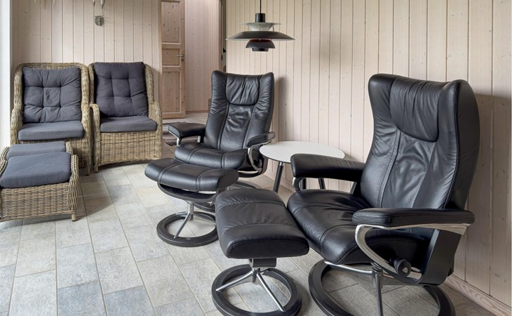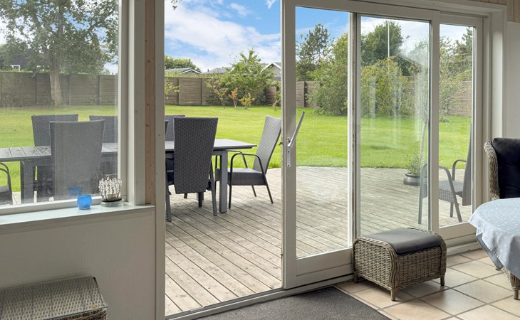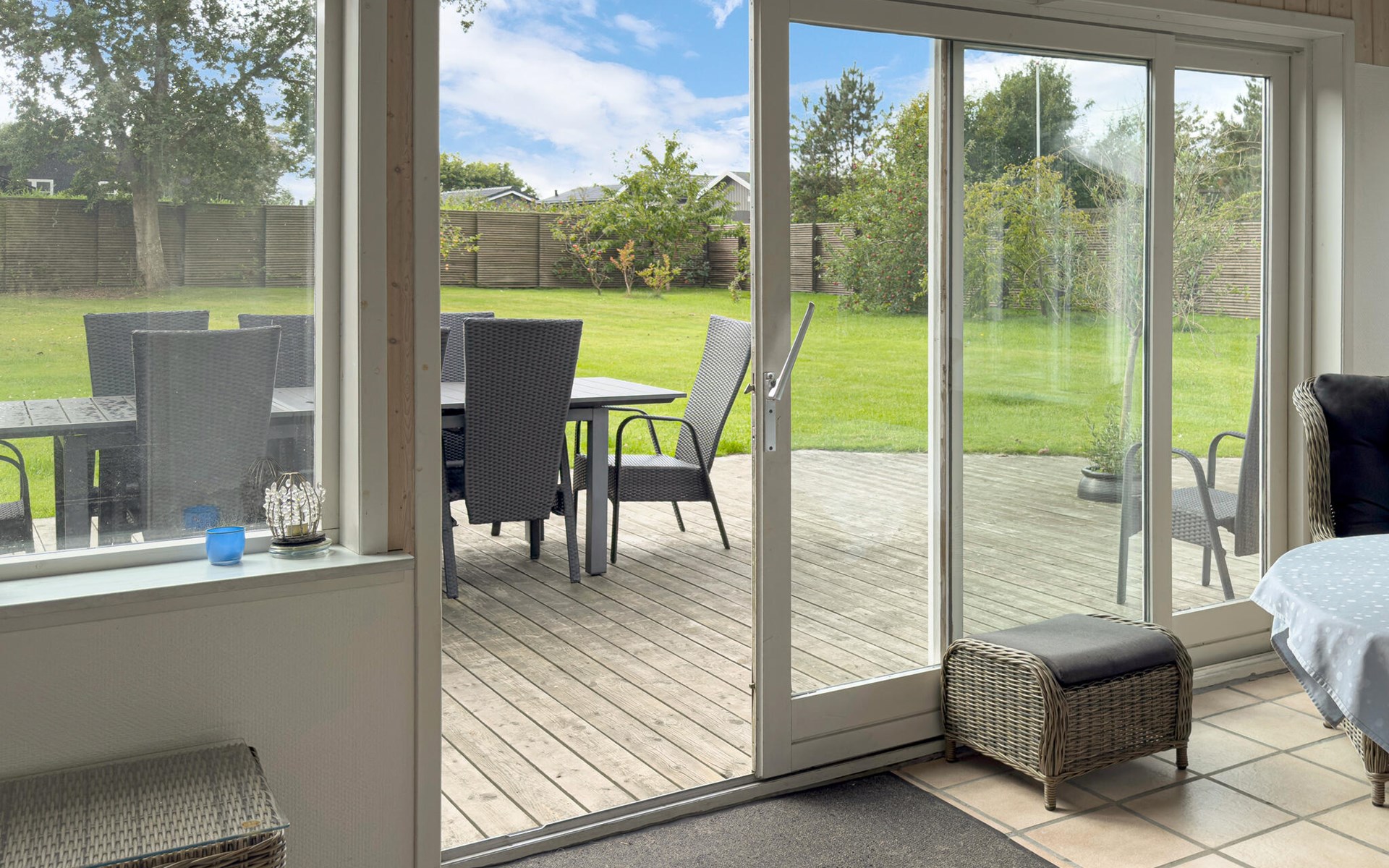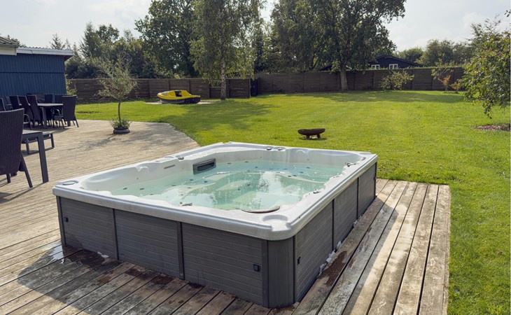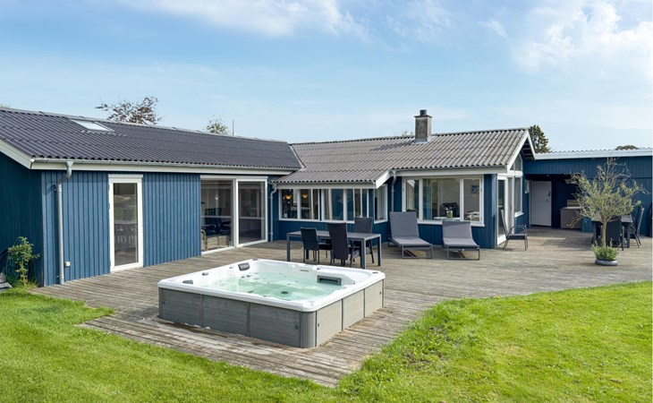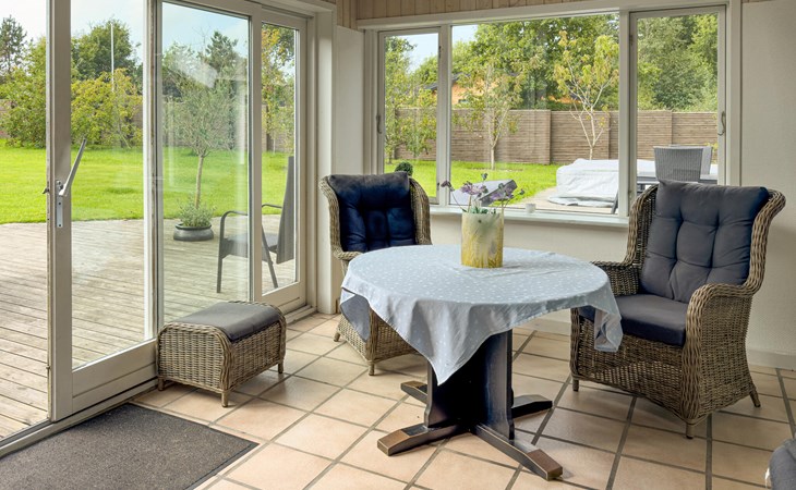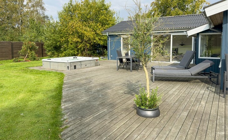 Genießen Sie die frische Luft auf der weitläufigen Holzterrasse. Erholen Sie sich im sprudelnden Whirlpool oder entspannen Sie auf den Sonnenliegen. Nehmen Sie Platz auf den gemütlichen Gartenmöbeln oder gönnen Sie sich ruhige Stunden im Wintergarten. Spielen Sie auf der großen Rasenfläche mit den Kindern oder lassen Sie einfach den Blick über das gepflegte Grün schweifen.