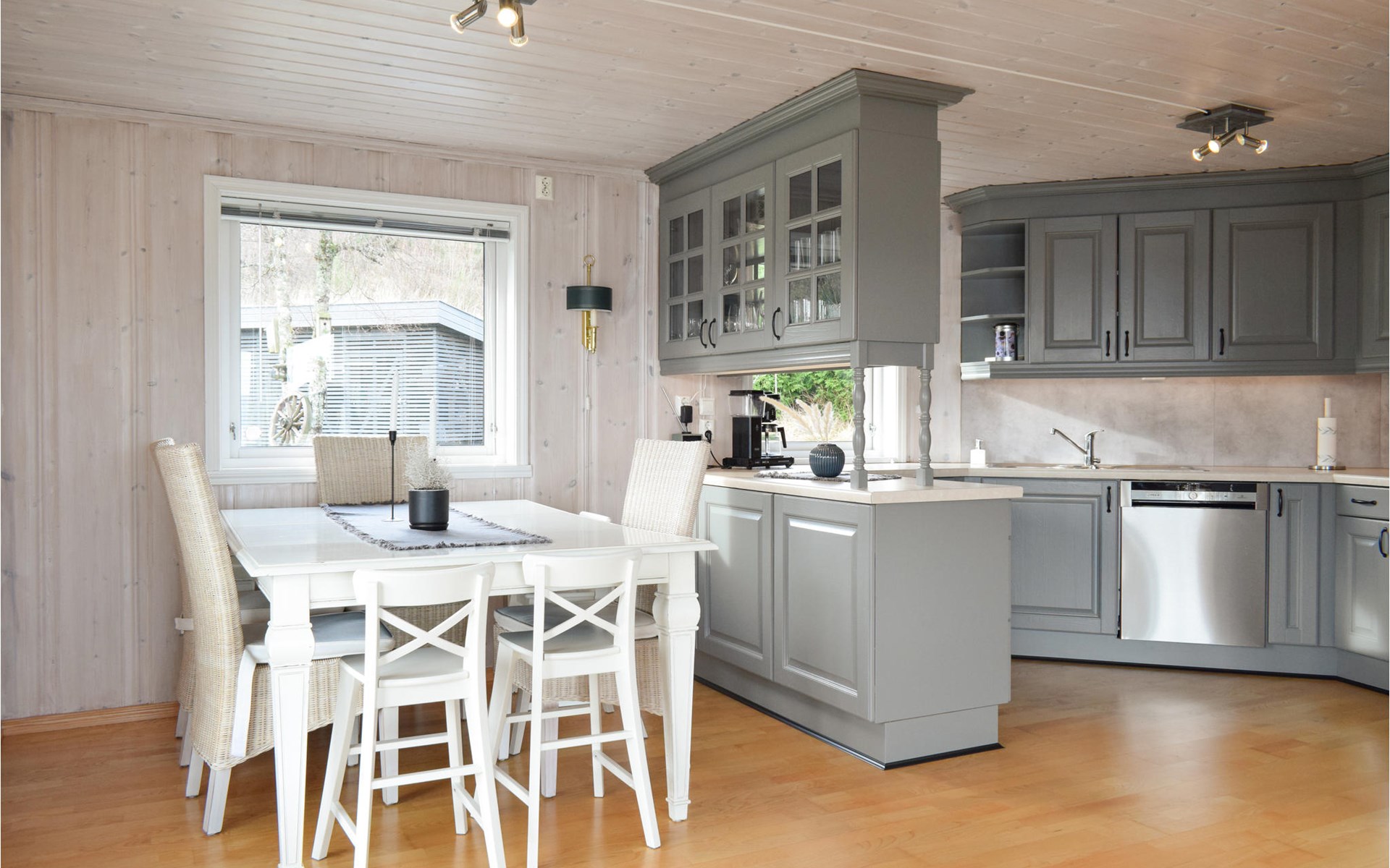 Besonderes Ferienhaus in schöner ruhiger Umgebung. Das Ferienhaus liegt auf einem großen und gepflegten Grundstück mit fantastischem Fjordblick. Die große Terrasse und der Garten eignen sich perfekt für schöne Sommertage. Direkt unter dem Haus befindet sich das Bootshaus mit einer Bootsgarage. Vor der Bootsgarage befindet sich ein solider Filetiertisch, auf dem Sie den Fang des Tages verarbeiten können. Das Boot, das gemietet werden kann, ist ein solider Schären-Jeep, der für 6 Personen mit passendem Motor zugelassen ist. Hier finden Sie alles, um Ihr Angelglück von Land und vom Boot aus zu versuchen. Unternehmen Sie Bootsausflüge in die kleinen Städte Stord, Fjellberg und Vikebygd sowie in das gemütliche Dorf Skånevik, in dem im Sommer ein reges Treiben herrscht. Wenn Sie im Süßwasser angeln möchten, sind die guten Angelflüsse wie der Etneelva und der Vikedalselva eine Autofahrt vom Haus entfernt. Ansonsten kann man gut Tagesausflüge mit dem Auto machen, in die Region Haugaland mit der Stadt Haugesund und den kleinen Städten Åkrahamn mit Åkrasanden sowie der Segelboot-Stadt Skudeneshavn mit ihrer spannenden Geschichte. Besuchen Sie auch Avaldsnes Kongsgård und tauchen Sie ein in die Wikingergeschichte der Region. Touren auf Norwegischen Landschaftsrouten in Ryfylke mit hohen Bergen mit Wasserfällen und langgestreckten Fjorden sind unvergessliche Erlebnisse. Baroni Rosendal 1665 und das Folgefonn Center in Rosendal am Hardangerfjord erreichen Sie in weniger als 2 Stunden.