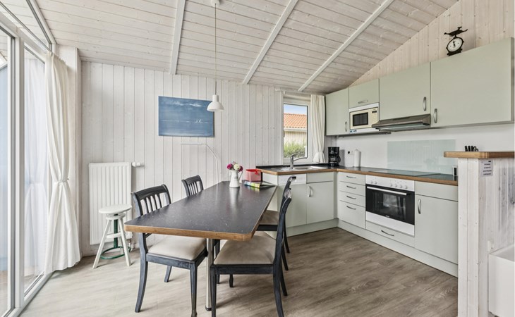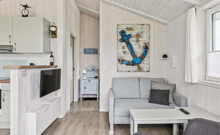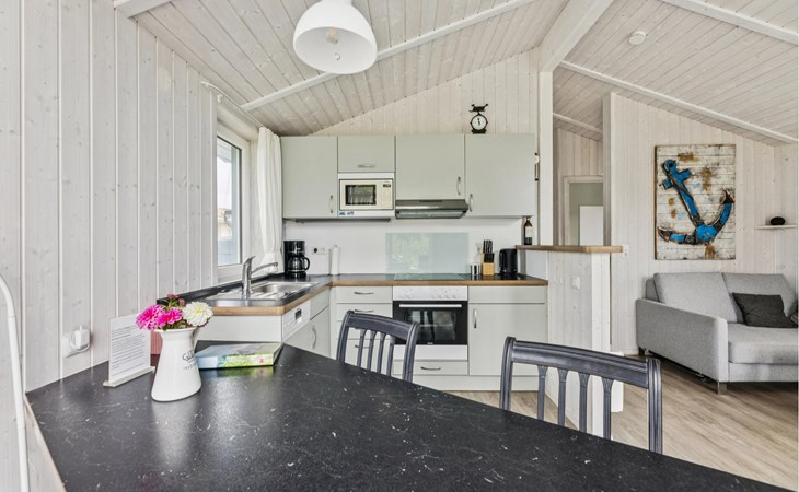 Die voll ausgestattete offene Küche ist ideal für gemütliche Kochrunden im Kreise Ihrer Lieben. Ihre eigene Terrasse lädt zu langen Sonnenbädern, Grillabenden oder einem ausgedehnten Frühstück mit duftenden Brötchen ein. Dank eines Schlafsofas im Wohnzimmer bietet das Haus Platz für bis zu sechs Personen. Auch an die allerkleinsten wurde gedacht, denn ein Kinderbett und ein Kinderstuhl stehen kostenlos zur Verfügung, außerdem gibt es einen Strandkorb.