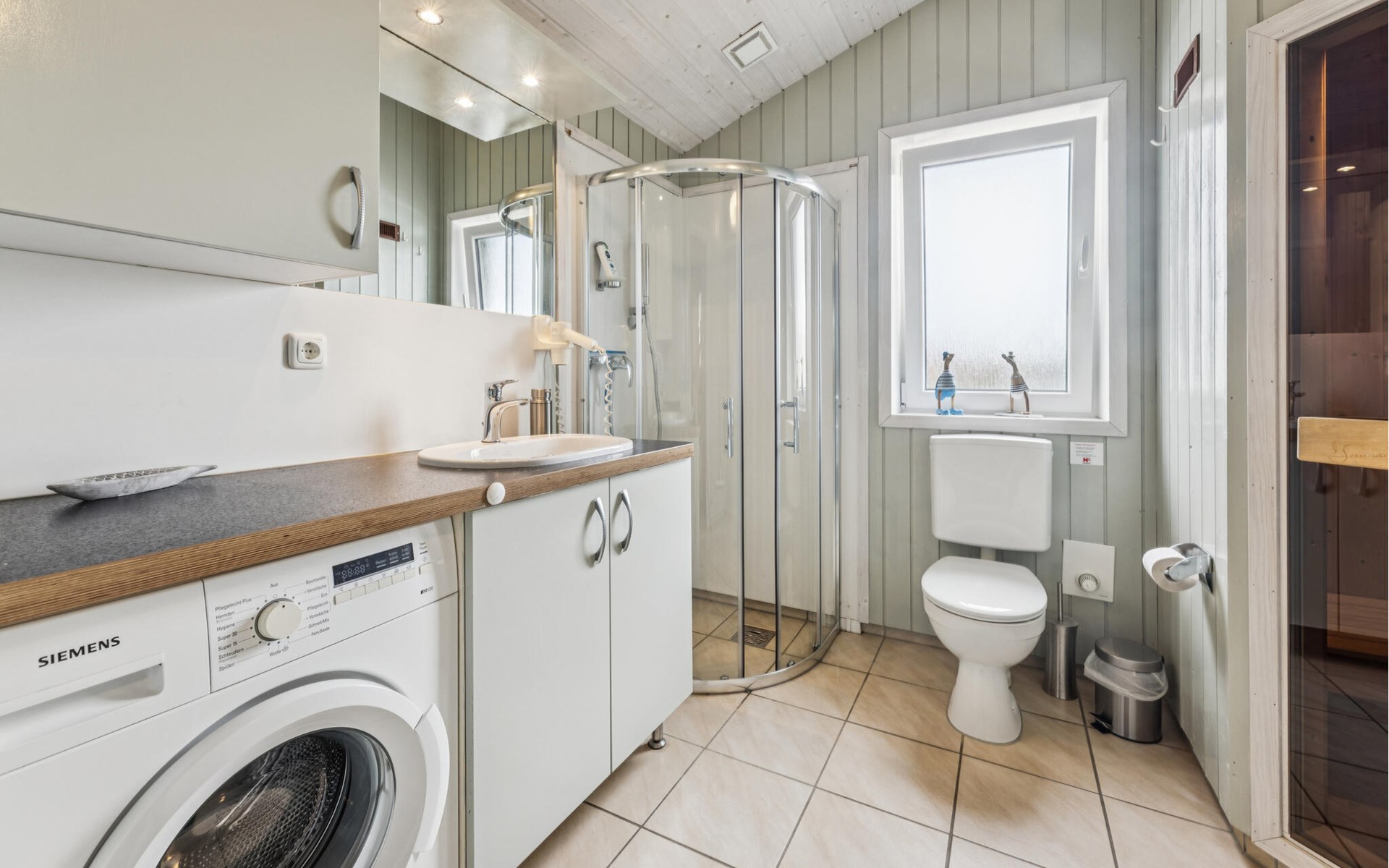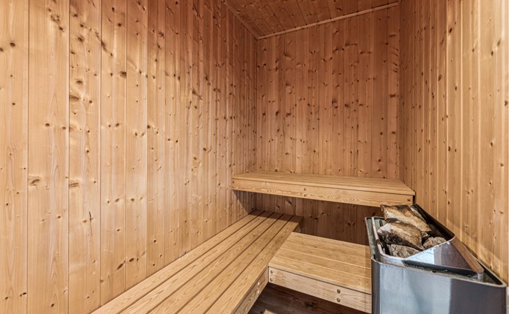 Gerade für die kältere Jahreszeit ist das Haus ideal, denn im Badezimmer erwartet Sie ihre ganz private Sauna, um sich nach einem Tag an der frischen Luft wieder richtig aufzuwärmen. Anschließend können Sie es sich auf dem Sofa gemütlich machen und den Feuerschein des Kamins im Wohnzimmer genießen.