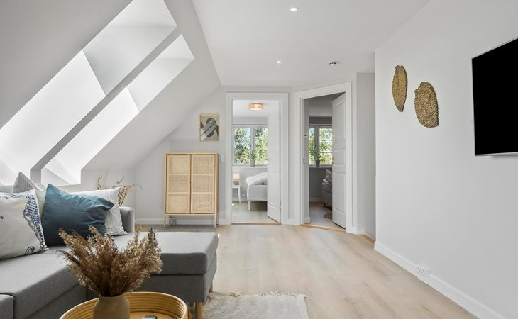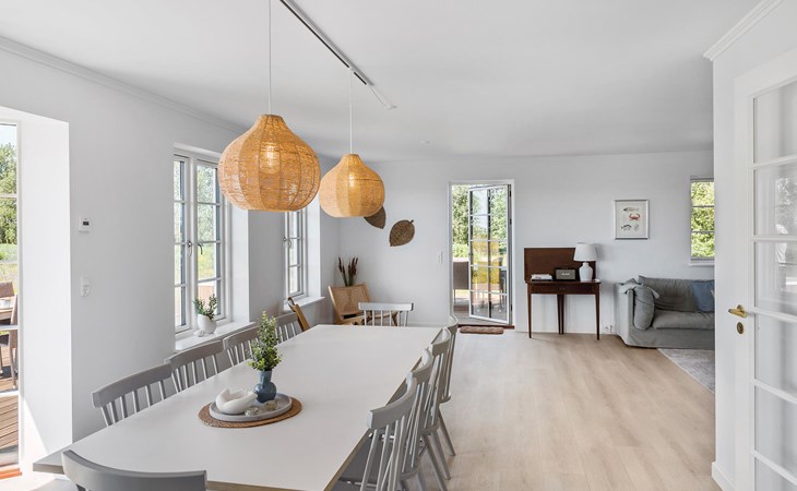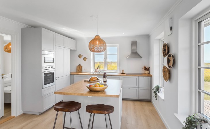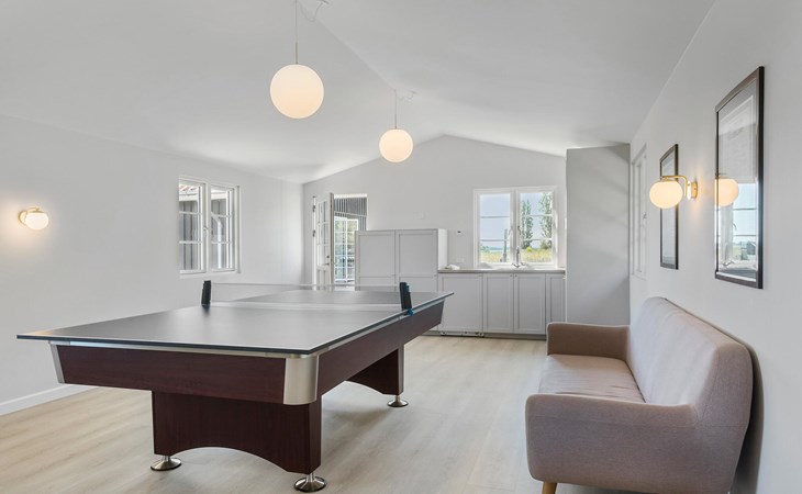 Freuen Sie sich auf Idylle, Erholung und eine helle und komfortable Atmosphäre, die Sie auf zwei Etagen empfängt. Durch die zahlreichen Fenster fällt viel Tageslicht in die freundlichen Zimmer und vom Inneren können Sie einen traumhaften Ausblick auf die Blumenwiesen und das Meer genießen. Das Haus bietet Ihnen hohe Qualität, ausgewählte Möbel und allerhand Annehmlichkeiten. Machen Sie es sich im einem der beiden Wohnzimmer gemütlich oder fordern sich im Aktivitätsraum zu Billard oder Tischtennis heraus. Kommen Sie am Morgen in der großartigen Essküche zusammen und schmieden Pläne für den bevorstehenden Tag.