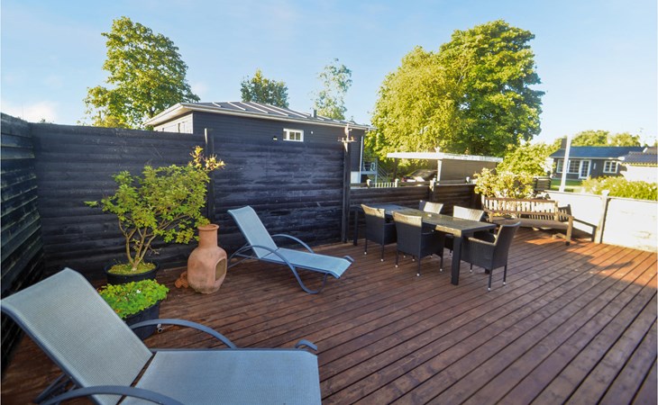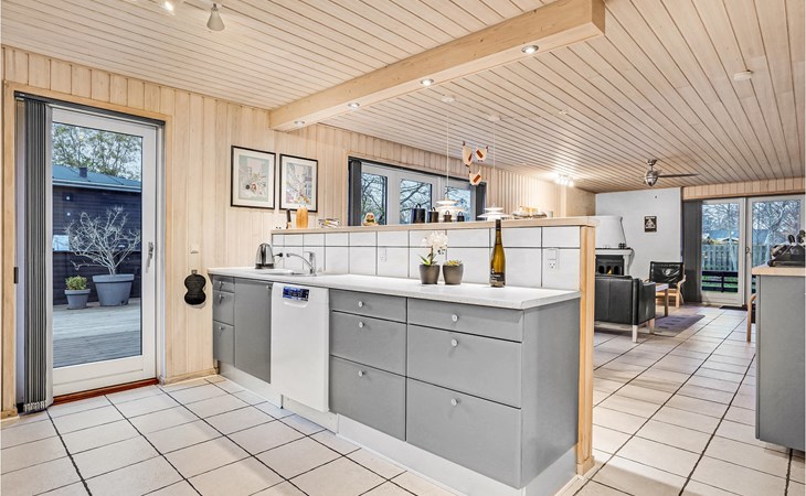 In Grenå, nahe beim Strand, liegt dieses einladende Ferienhaus mit seinen großen Terrassen. Genießen Sie auch das sichtgeschützte Grundstück. Im Haus gibt es zwei Badezimmer und bequeme Betten in den Schalfzimmern. In der offenen Wohnküche steht ein Behaglichkeit verbreitender Kaminofen. Die Einrichtung ist schön und ideal für einen entspannenden Urlaub. Nicht nur der Badestrand liegt nahe beim Haus, auch den Hafen erreichen Sie bequem zu Fuß vom Haus. Ebenso nahe liegen große Wälder und das Kattegatcenter von Grenå. Im Kattegatcenter sehen Sie Haie und andere Meerestiere. Zeit sollten Sie auch für einen Besuch im Djurs Sommerland reservieren.