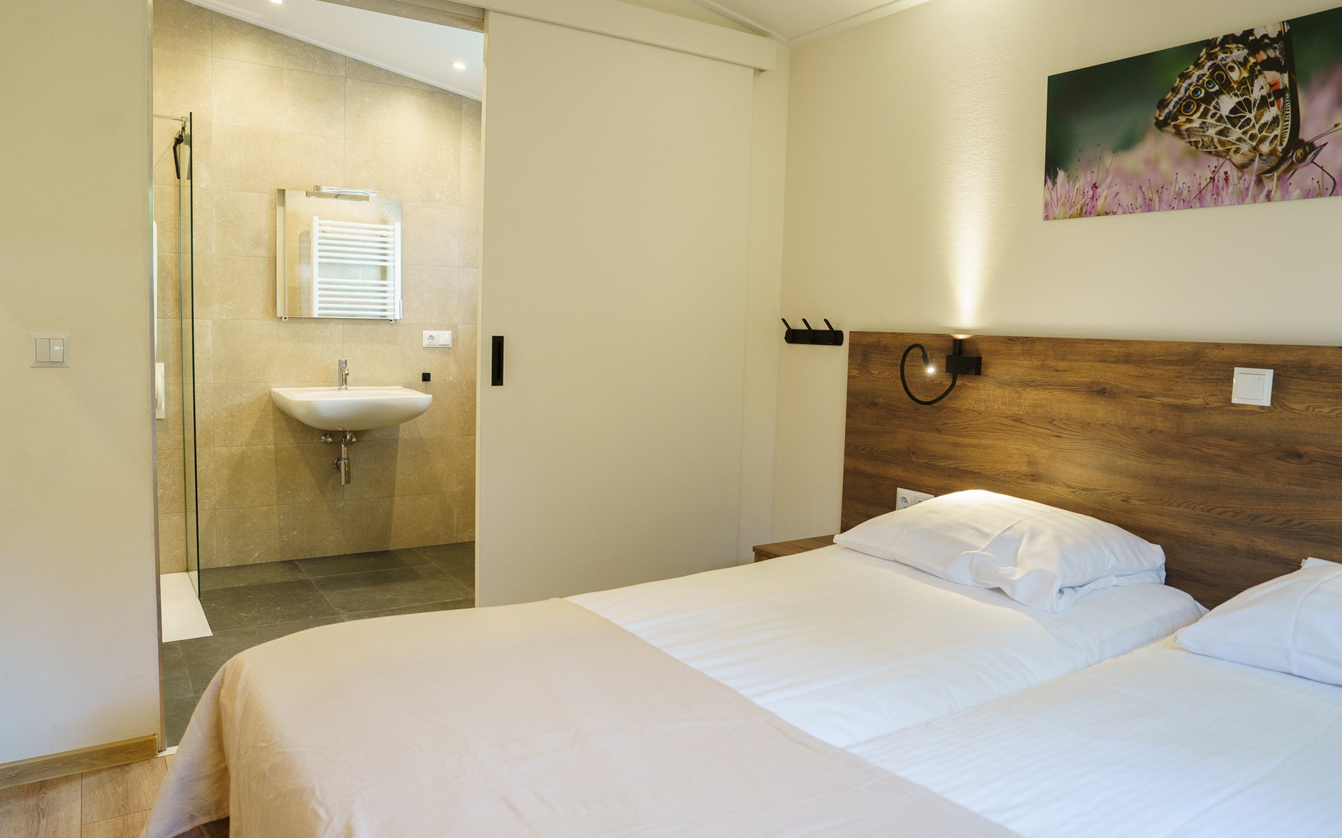 Mooie moderne huisjes. Goed schoon en comfortabel. Wel jammer dat de bedden zo hard waren en er te weinig parkeerplekken waren.