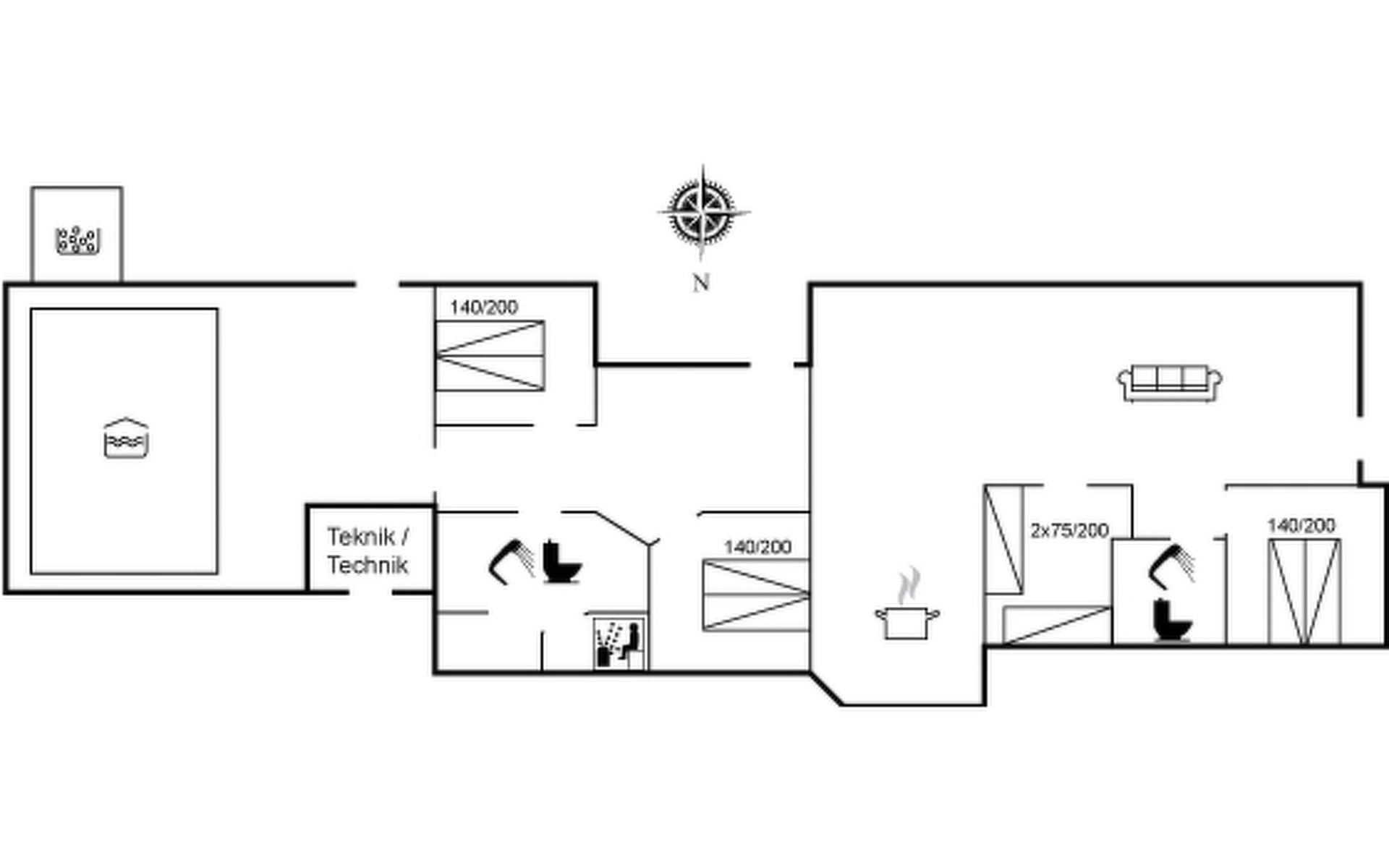 Einfamilienhaus, Baujahr 1995. 600 m vom Meer. Zur Alleinbenutzung: naturbelassenes Grundstück 1'267 m2, Hallenbad (3 x 4 m, 1'6.6 m2, 130 - 130 cm tief). Grill (Schaukel). Im Hause: Sauna, Trampolin, Waschmaschine, Wäschetrockner. Parkplatz beim Haus. Lebensmittelgeschäft 400 m. Golfplatz 2 km. Der Besitzer akzeptiert keine Jugendgruppen.