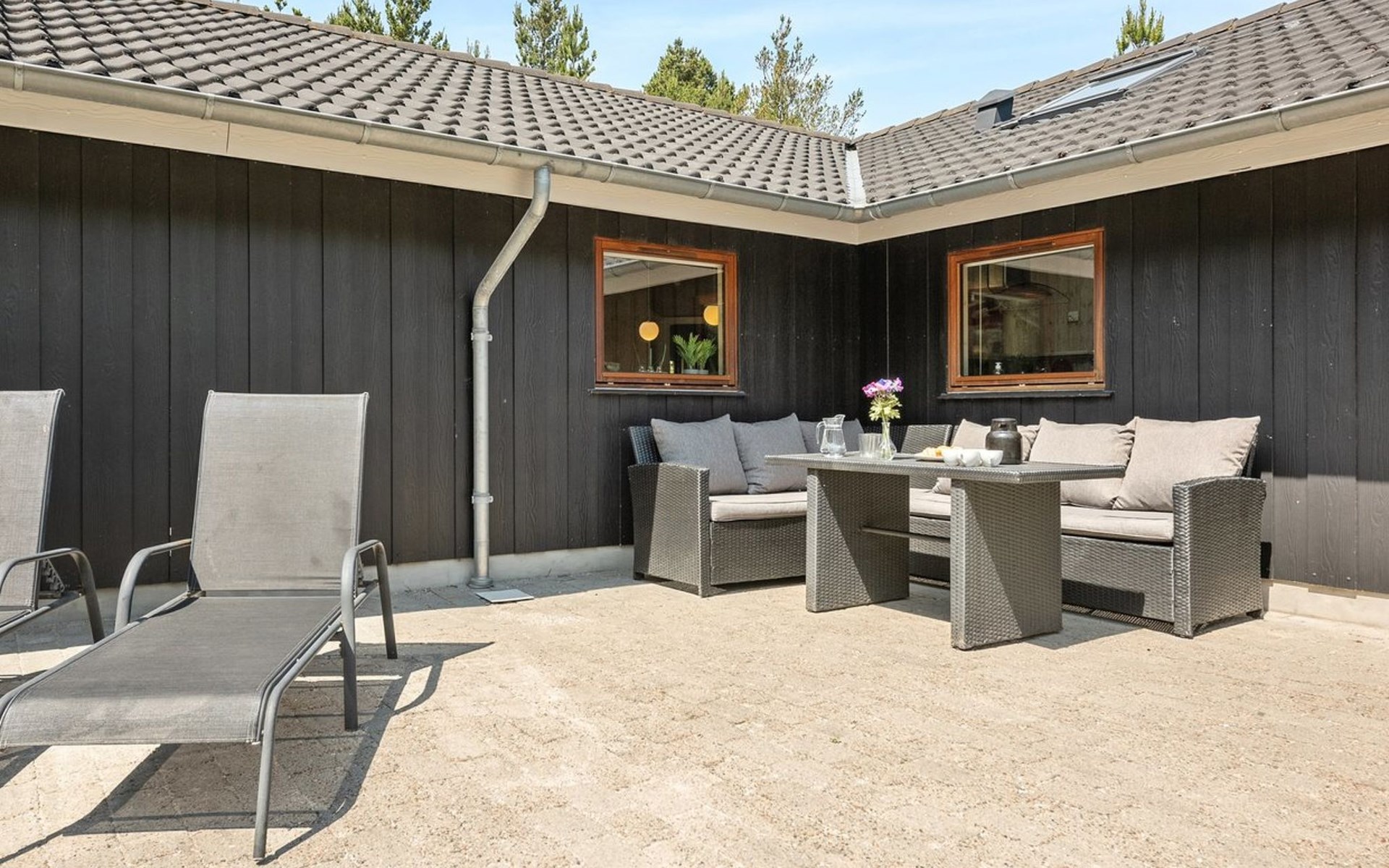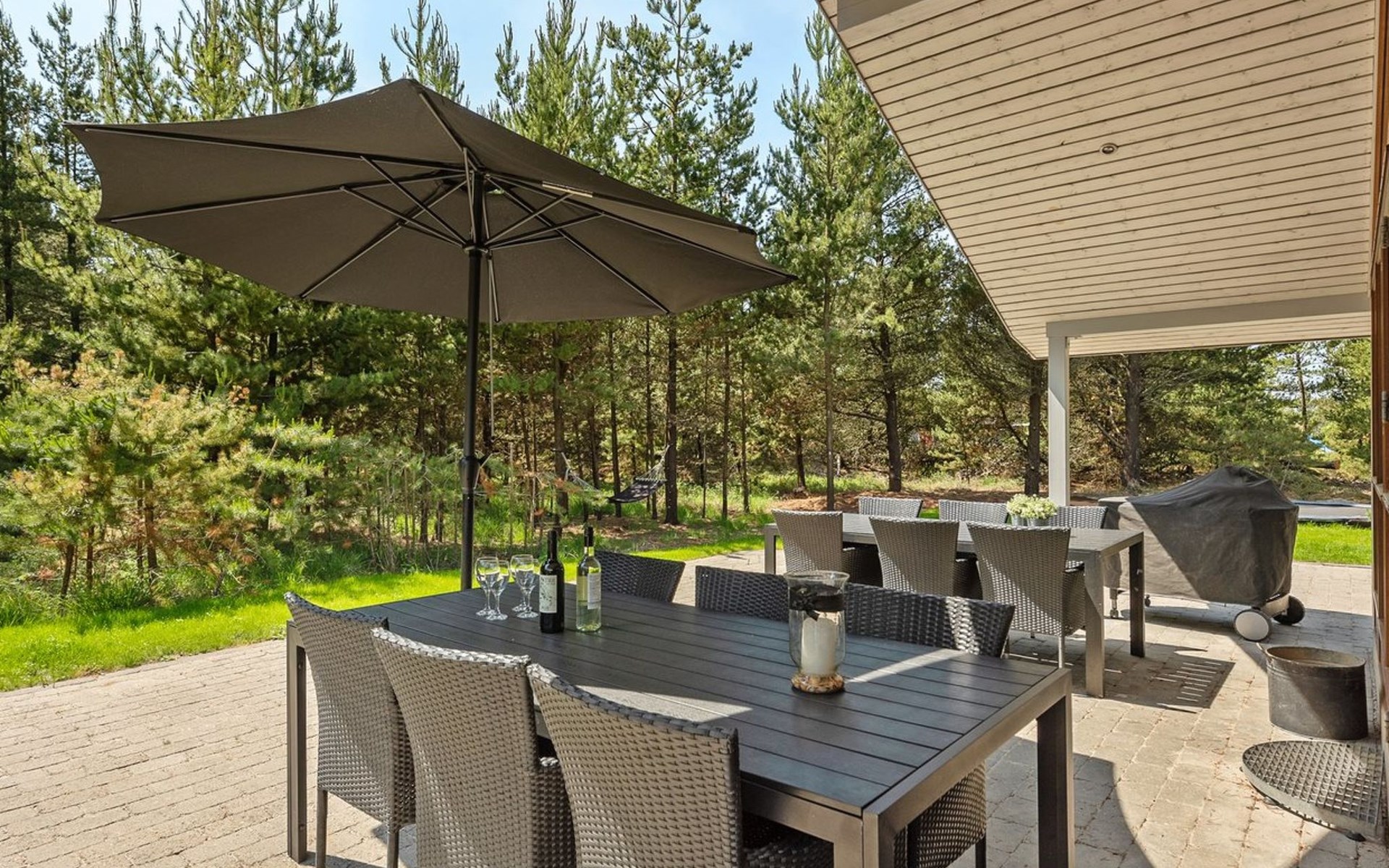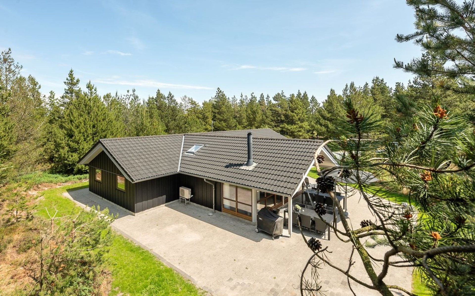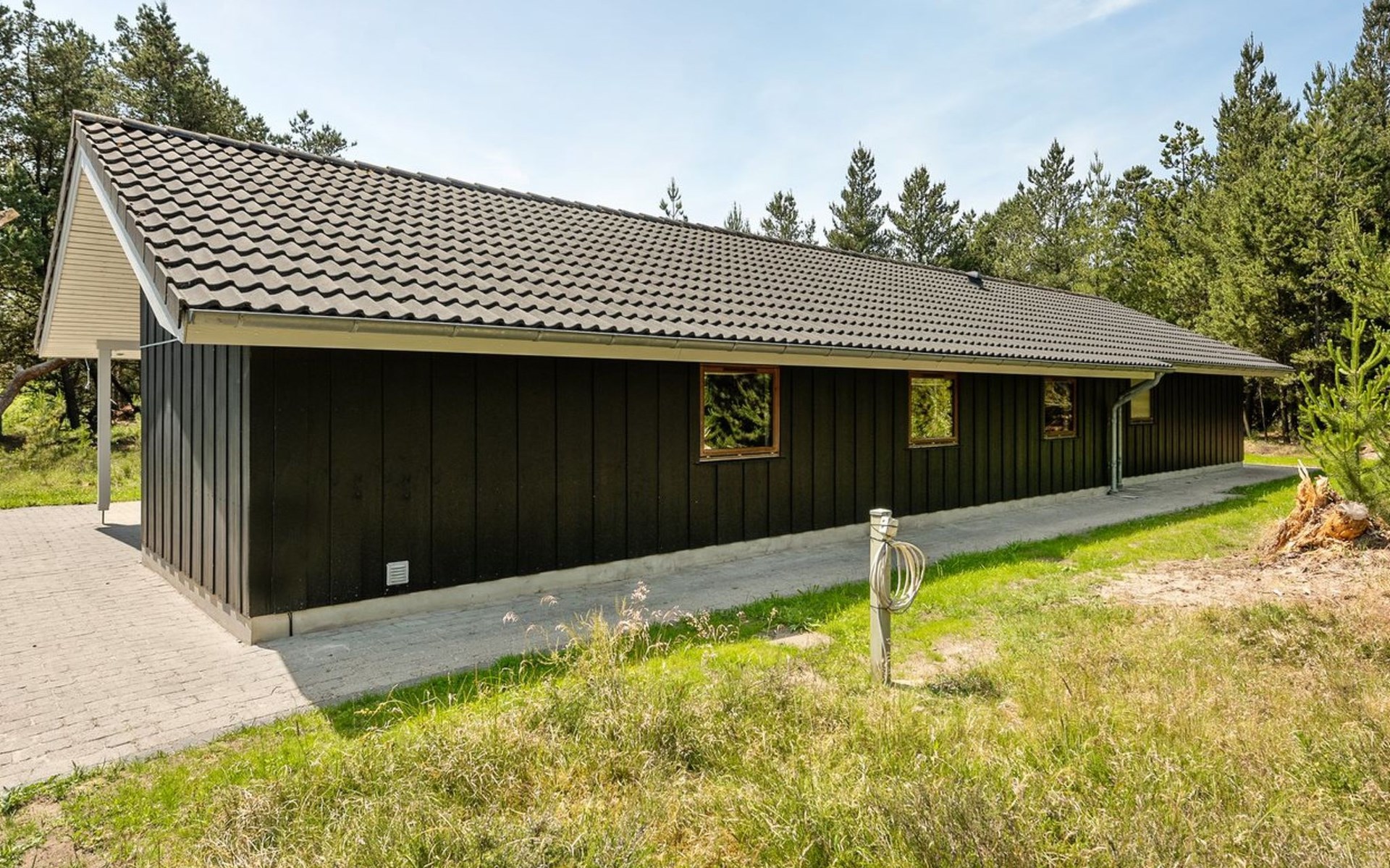 Einfamilienhaus, Baujahr 2006. 2.4 km vom Meer. Zur Alleinbenutzung: naturbelassenes Grundstück 3'300 m2. Terrasse (100 m2), Kinderspielplatz (Schaukel). Im Hause: Sauna, Trampolin, Waschmaschine, Wäschetrockner. Parkplatz beim Haus. E-Ladestation. Lebensmittelgeschäft 2 km. Der Besitzer akzeptiert keine Jugendgruppen.