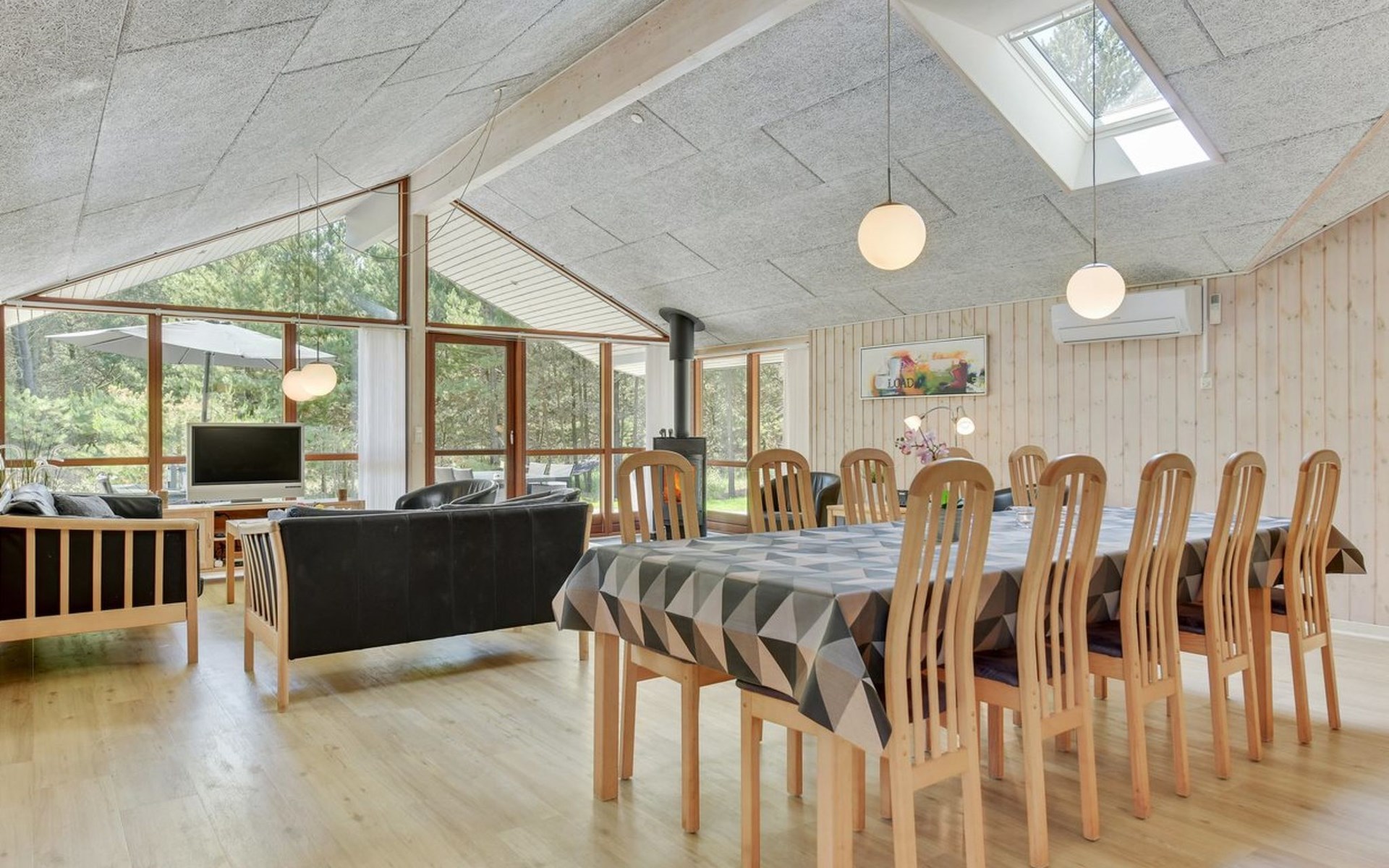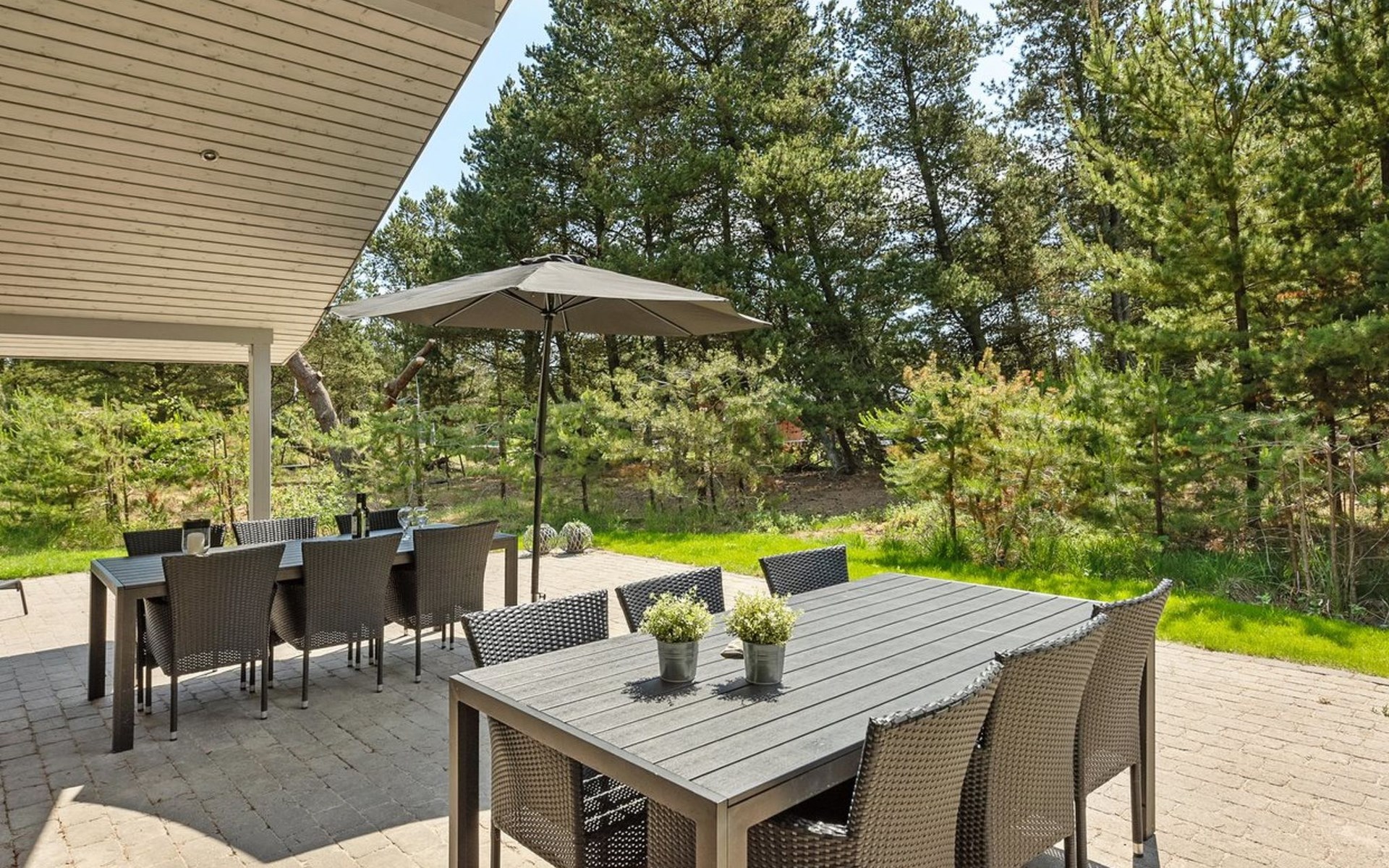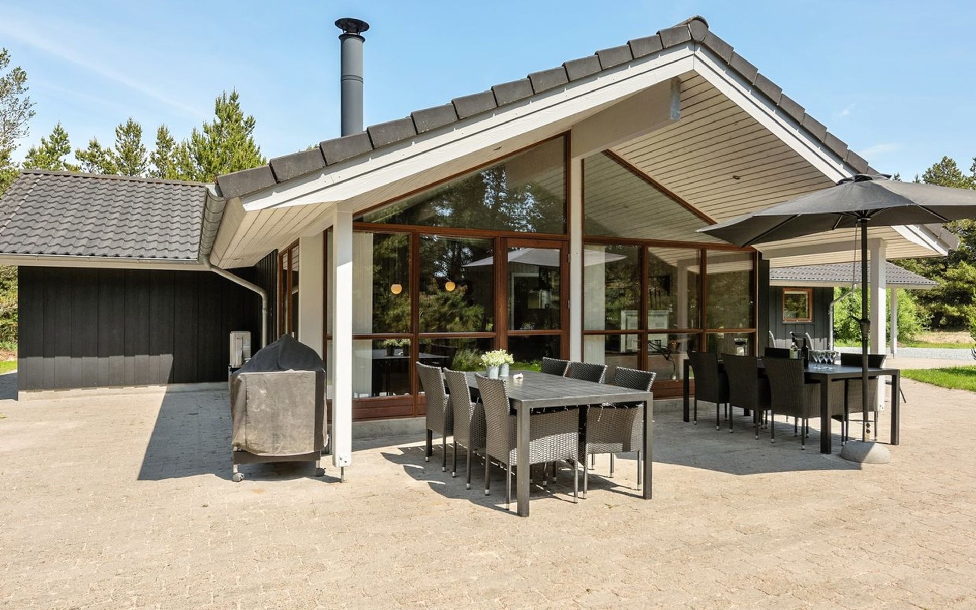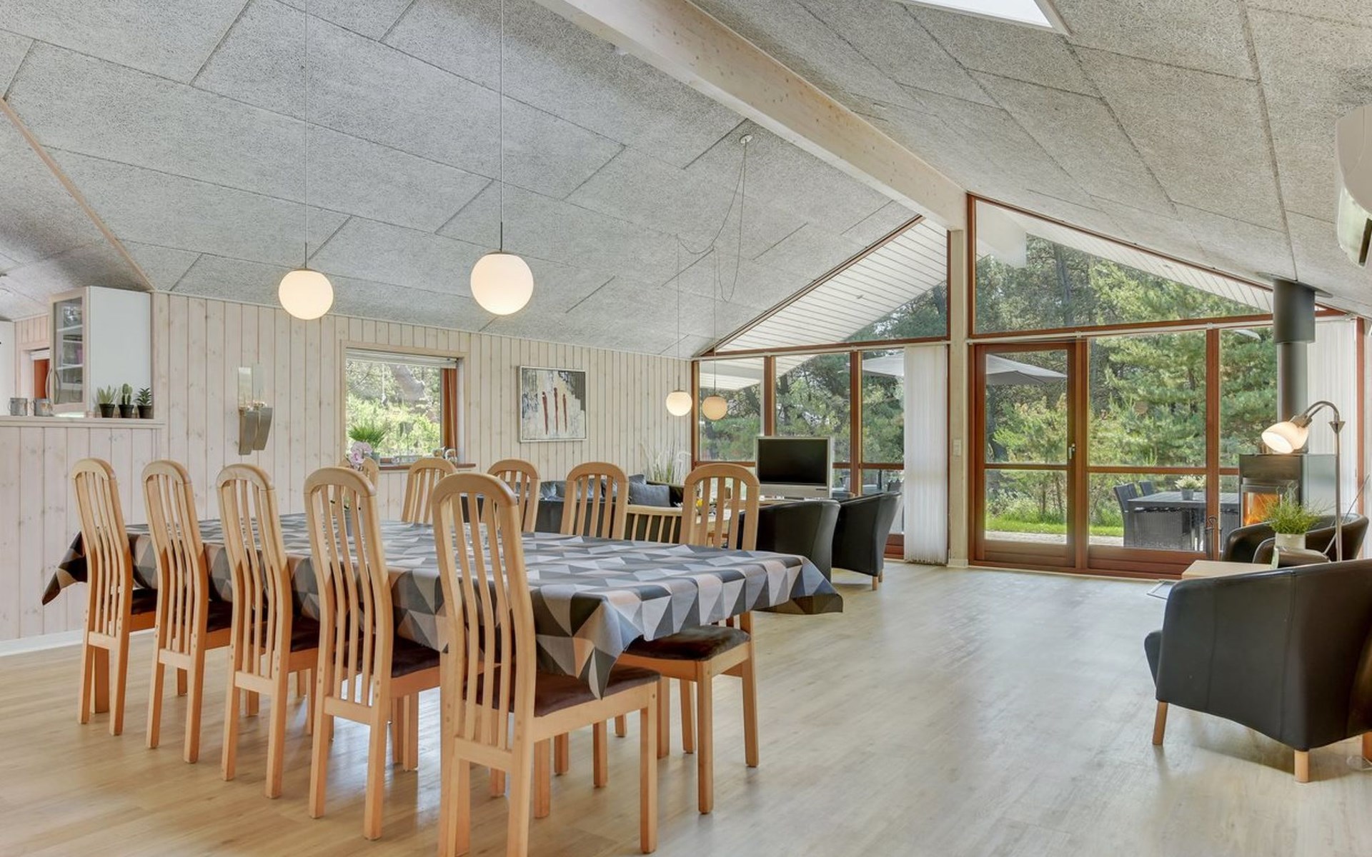 Einfamilienhaus, Baujahr 2006. 2.4 km vom Meer. Zur Alleinbenutzung: naturbelassenes Grundstück 3'300 m2. Terrasse (100 m2), Kinderspielplatz (Schaukel). Im Hause: Sauna, Trampolin, Waschmaschine, Wäschetrockner. Parkplatz beim Haus. E-Ladestation. Lebensmittelgeschäft 2 km. Der Besitzer akzeptiert keine Jugendgruppen.