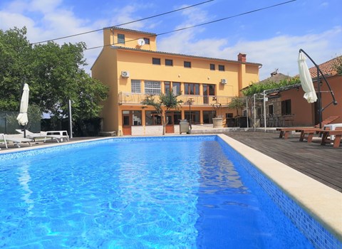 Schönes Einfamilienhaus "Villa Bella", auf 2 Stockwerken. Im Weiler Srbani, 4 km vom Zentrum von Brtonigla, 9 km vom Zentrum von Novigrad, ruhige, sonnige Lage, 9 km vom Meer, in einer Sackgasse. Zur Alleinbenutzung: Grundstück 500 m2, Schwimmbad eckig (8 x 4 m, 140 cm tief, saisonale Verfügbarkeit: 01.Mai. - 01.Nov.) mit Innentreppe. Aussendusche, Gartenmöbel, Grill. Im Hause: Internetzugang, Waschmaschine. Parkplatz (für 2 Autos) beim Haus auf dem Grundstück. Einkaufsgeschäft 3 km, Restaurant 3 km, Bushaltestelle 4.9 km, Kieselstrand 9 km, Felsstrand 9 km. Wanderwege ab Haus 100 m, Radweg 150 m. Nahe gelegene Sehenswürdigkeiten: aquapark 3 km. Bitte beachten: geeignet für Familien. Der Besitzer akzeptiert keine Jugendgruppen. Das veranstalten von Feiern ist nicht gestattet. Das Objekt setzt sich aus 2 Doppelhäusern zusammen, kann auch zusammen gemietet werden.