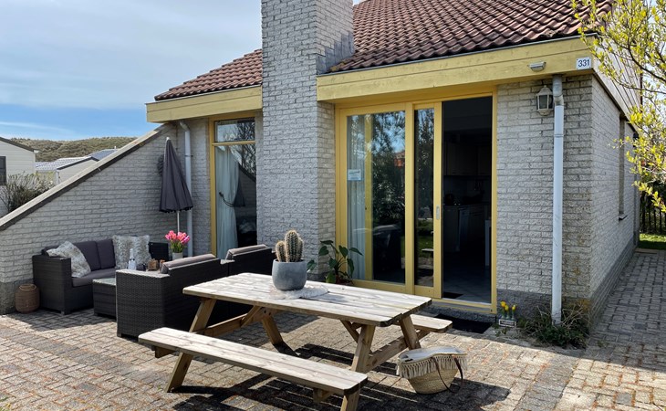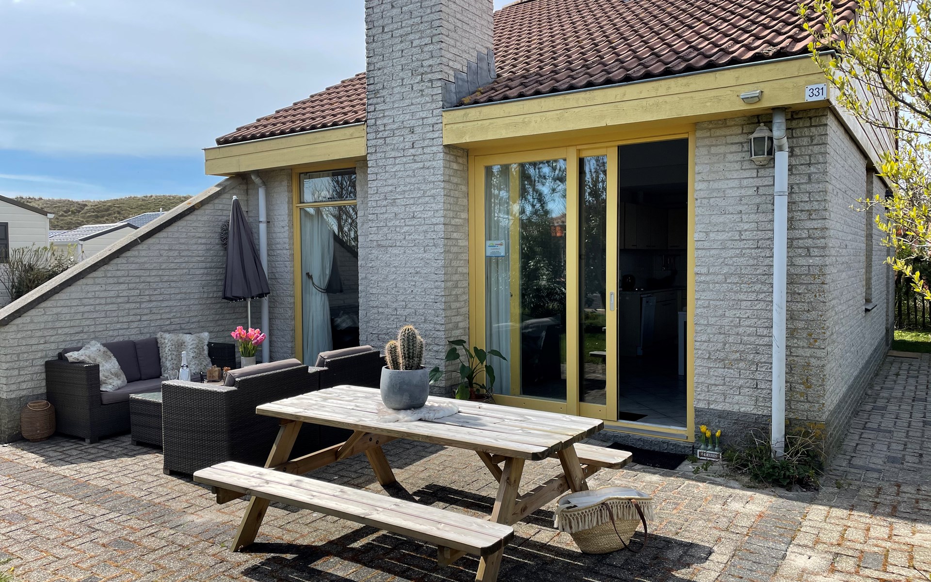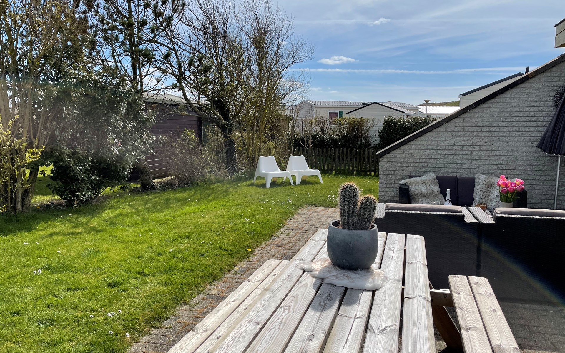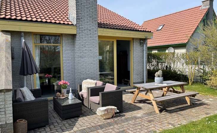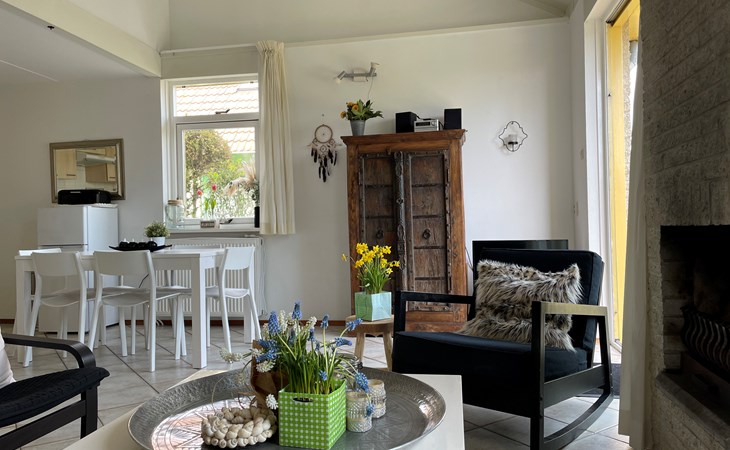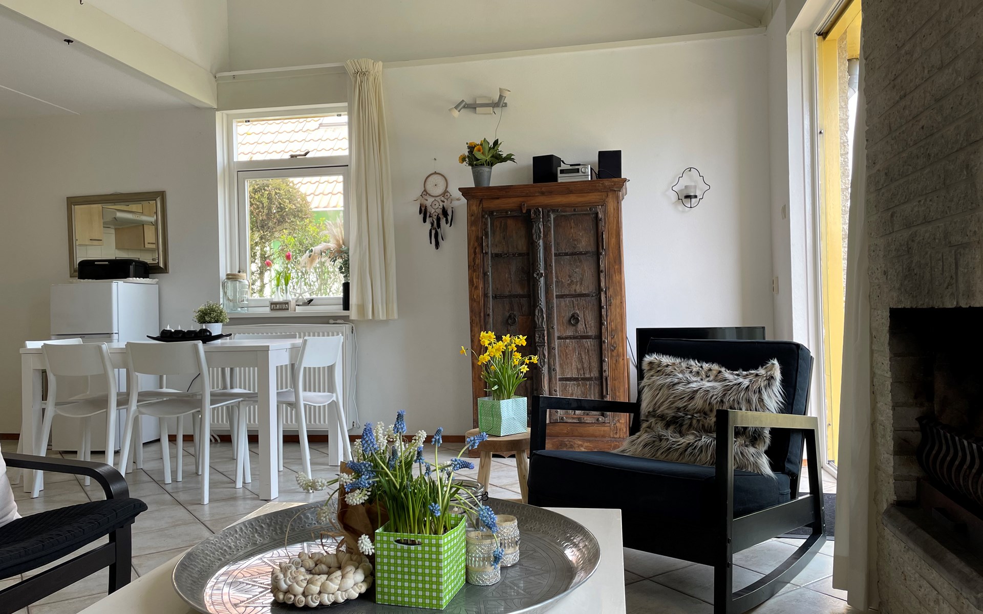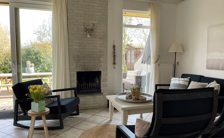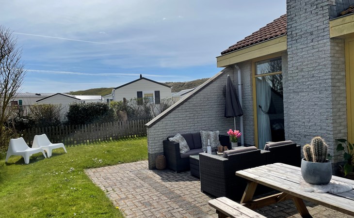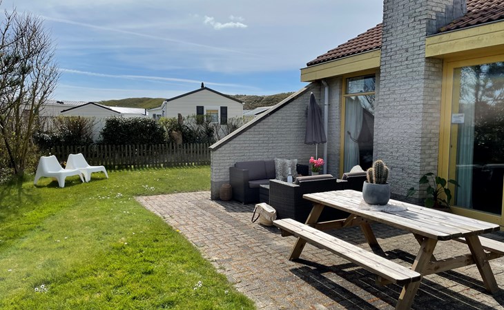 Der freistehende Bungalow ist wunderschön am Rande des Parks gelegen und bietet einen Blick auf die Dünen. Dieser gemütlich eingerichtete Bungalow hat eine offene Küche im Wohnzimmer mit Schiebetüren zum Garten. Das Wohnzimmer hat einen Kamin, den Sie in den kälteren Monaten gerne beheizen können. Die Küche ist mit einem Kühlschrank mit Gefrierfach, einem Geschirrspüler, einer Nespresso-Maschine und einer Filterkaffeemaschine, einer Kombimikrowelle und einem Gasherd ausgestattet. Es gibt 3 Schlafzimmer, darunter ein Schlafzimmer im Obergeschoss mit 2 Einzelbetten und ein Schlafzimmer mit 2 Einzelbetten. Im Erdgeschoss befindet sich das 3. Schlafzimmer mit 2x Einzelbetten. Das Badezimmer hat eine Dusche und ein Waschbecken und es gibt eine separate Toilette. Das Haus verfügt über einen Internetzugang und Sie können kostenloses WI-FI im Haus nutzen. Außerdem gibt es eine Waschmaschine und einen Trockner, die Sie benutzen können. Der große, sonnige Garten hat einen Rasen und eine gemütliche Terrasse mit Gartenmöbeln und bietet einen schönen Blick auf die Dünen. Auch Hunde sind hier erlaubt, so dass Sie einen schönen Urlaub mit der Familie und Ihrem vierbeinigen Freund verbringen können.