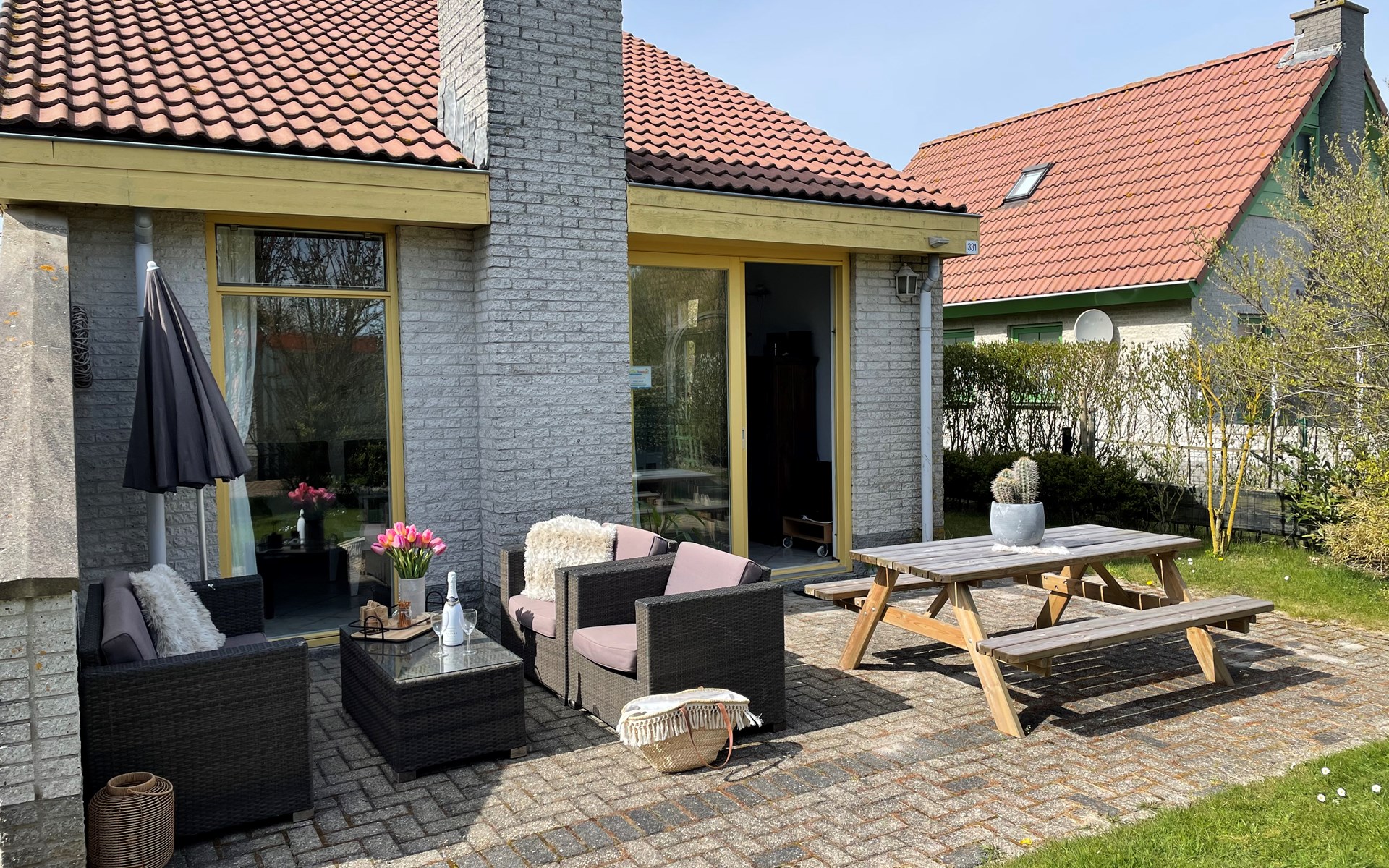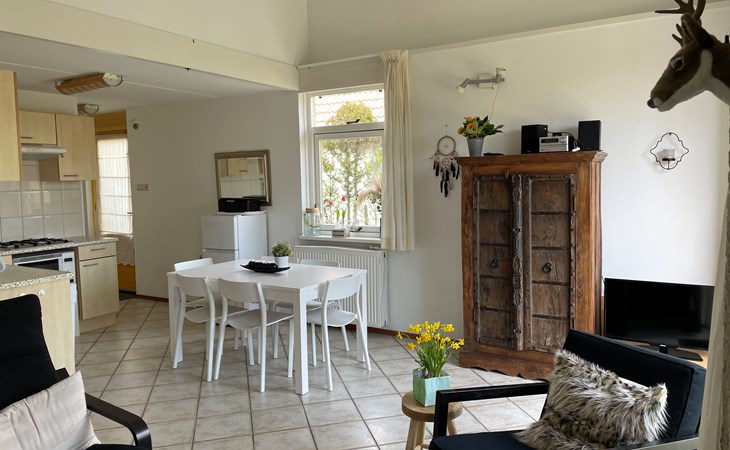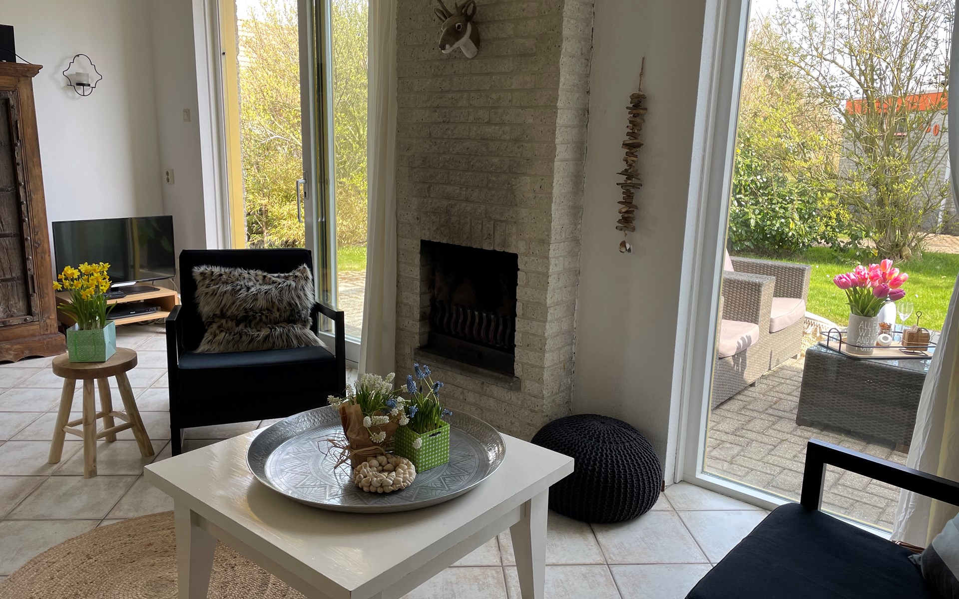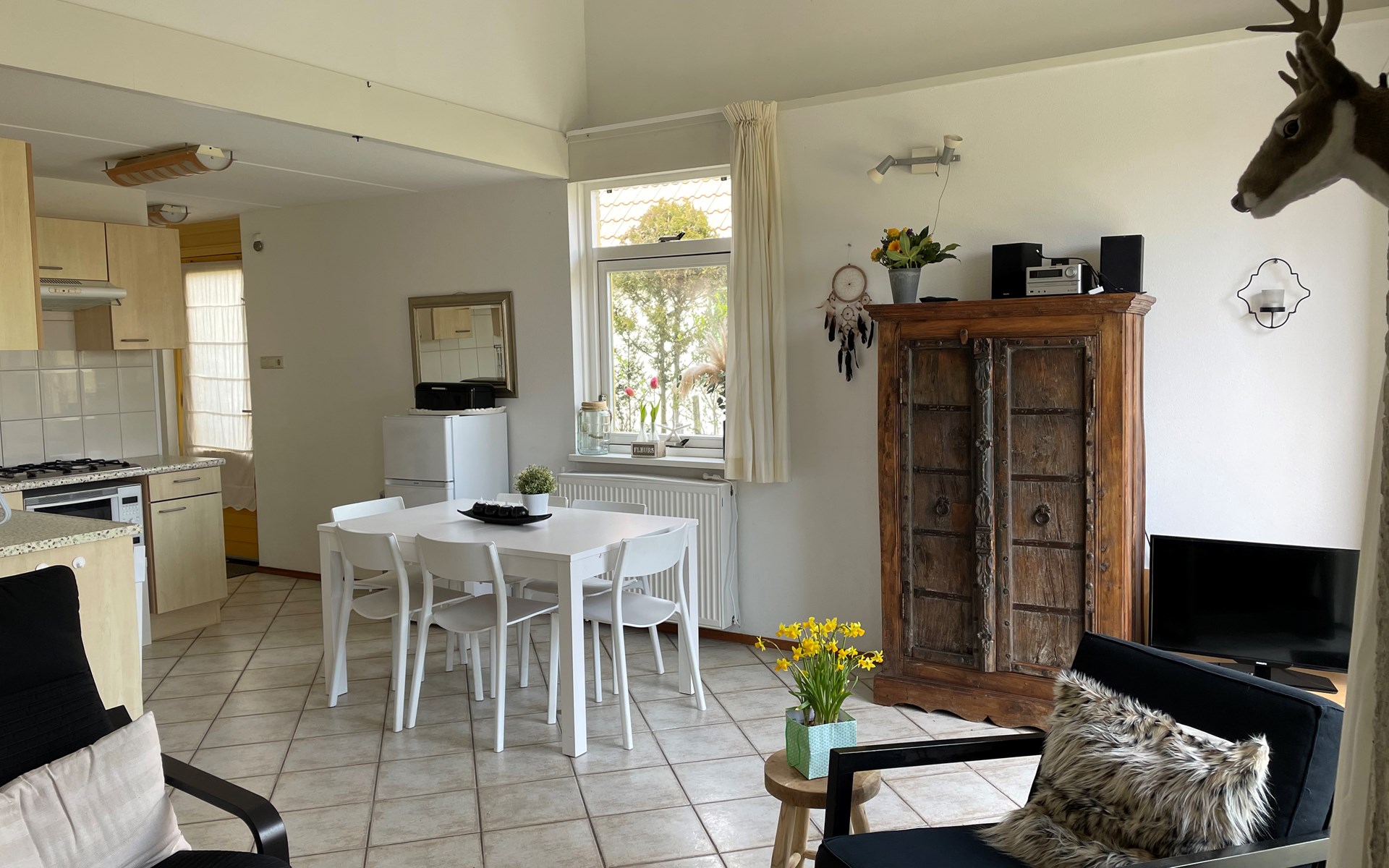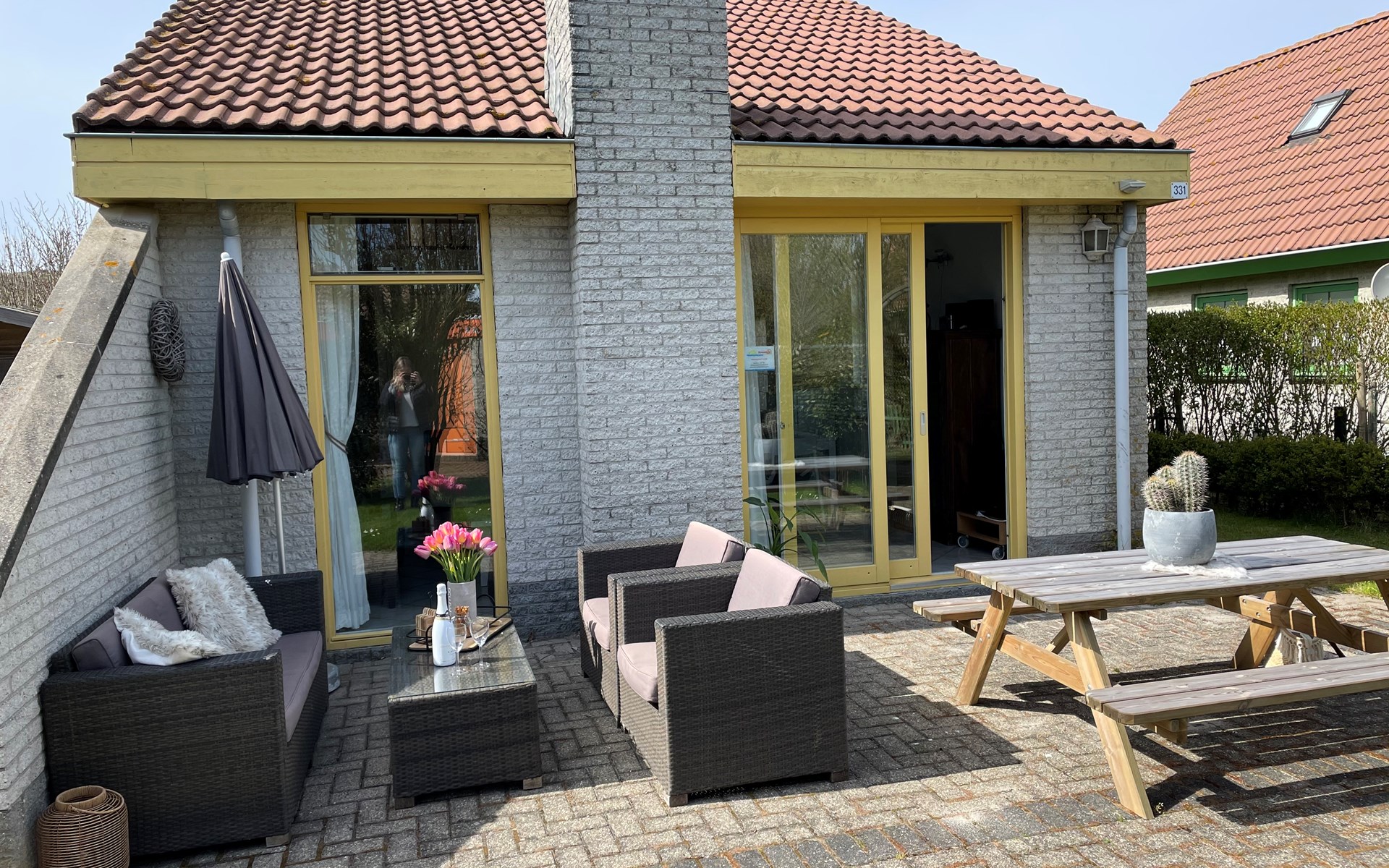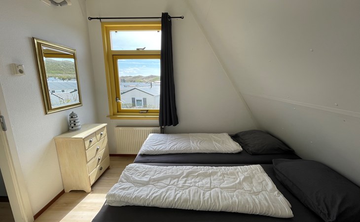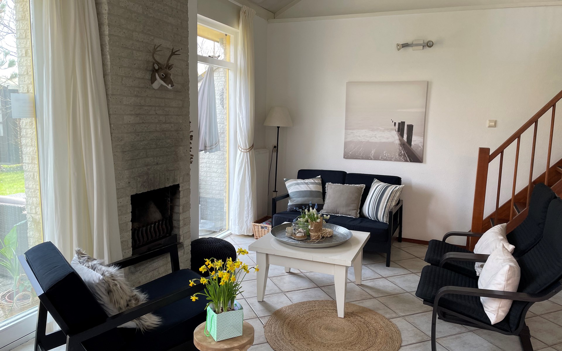 Der freistehende Bungalow ist wunderschön am Rande des Parks gelegen und bietet einen Blick auf die Dünen. Dieser gemütlich eingerichtete Bungalow hat eine offene Küche im Wohnzimmer mit Schiebetüren zum Garten. Das Wohnzimmer hat einen Kamin, den Sie in den kälteren Monaten gerne beheizen können. Die Küche ist mit einem Kühlschrank mit Gefrierfach, einem Geschirrspüler, einer Nespresso-Maschine und einer Filterkaffeemaschine, einer Kombimikrowelle und einem Gasherd ausgestattet. Es gibt 3 Schlafzimmer, darunter ein Schlafzimmer im Obergeschoss mit 2 Einzelbetten und ein Schlafzimmer mit 2 Einzelbetten. Im Erdgeschoss befindet sich das 3. Schlafzimmer mit 2x Einzelbetten. Das Badezimmer hat eine Dusche und ein Waschbecken und es gibt eine separate Toilette. Das Haus verfügt über einen Internetzugang und Sie können kostenloses WI-FI im Haus nutzen. Außerdem gibt es eine Waschmaschine und einen Trockner, die Sie benutzen können. Der große, sonnige Garten hat einen Rasen und eine gemütliche Terrasse mit Gartenmöbeln und bietet einen schönen Blick auf die Dünen. Auch Hunde sind hier erlaubt, so dass Sie einen schönen Urlaub mit der Familie und Ihrem vierbeinigen Freund verbringen können.
