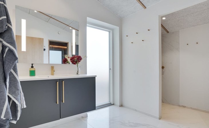 Einfamilienhaus, Baujahr 2022. 950 m vom Meer. Zur Alleinbenutzung: naturbelassenes Grundstück 600 m2. Aussendusche, Grill, Kinderspielplatz (Rutschbahn, Schaukel). Im Hause: Sauna, Waschmaschine, Wäschetrockner. Parkplatz beim Haus. E-Ladestation. Lebensmittelgeschäft 800 m. Der Besitzer akzeptiert keine Jugendgruppen.