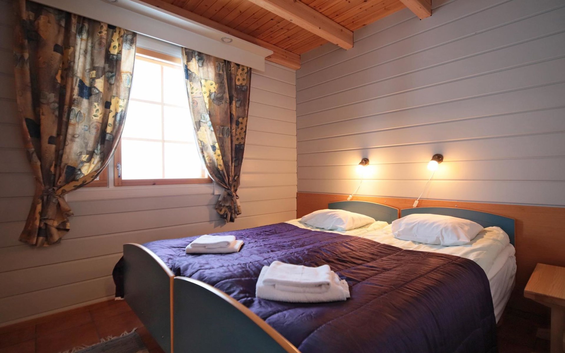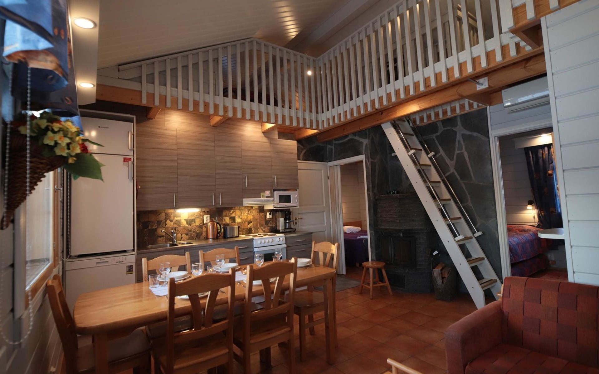 Bedrooms: one bedroom downstairs has a double bed and the other has 2 beds (one of the beds is pulled out from under the regular bed). In the loft there are 2 extra beds that can be booked for an additional fee (35 e/person/stay). The maximum number of people in the apartment is 6.
