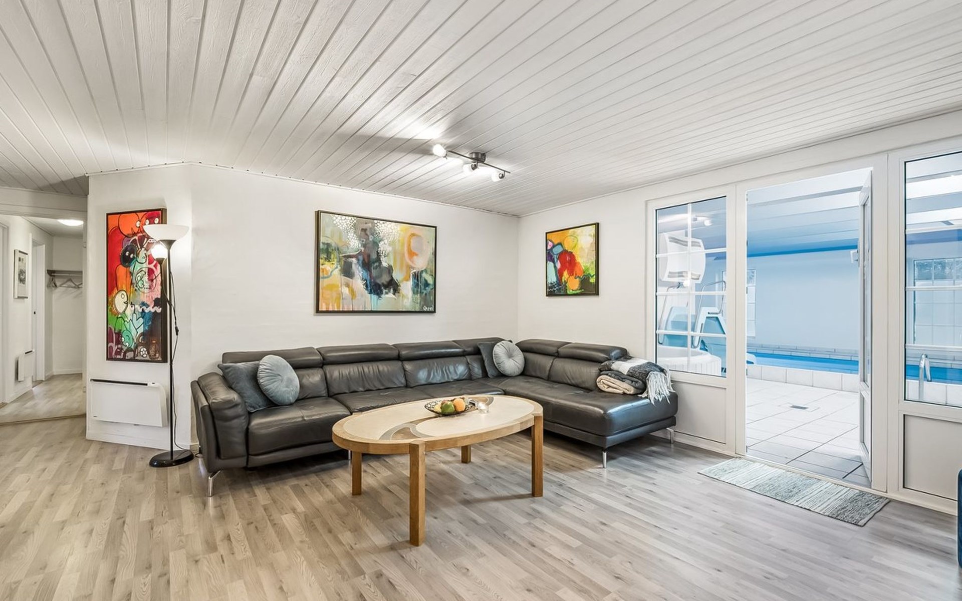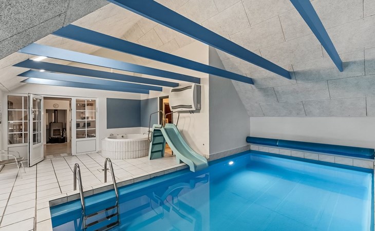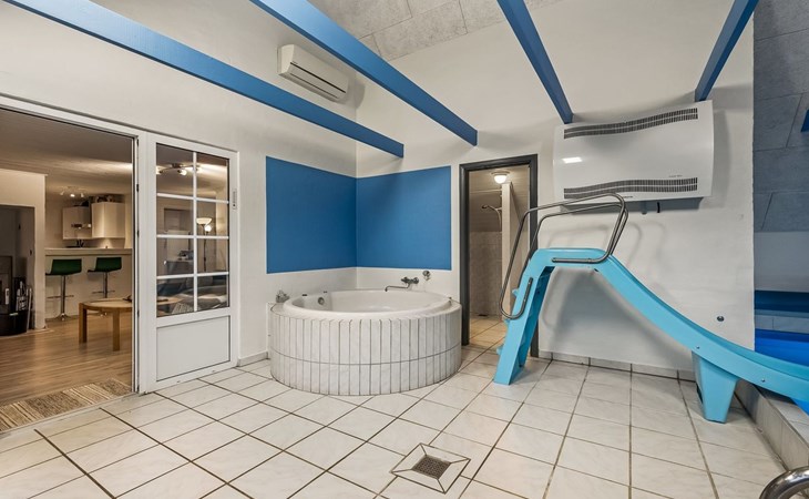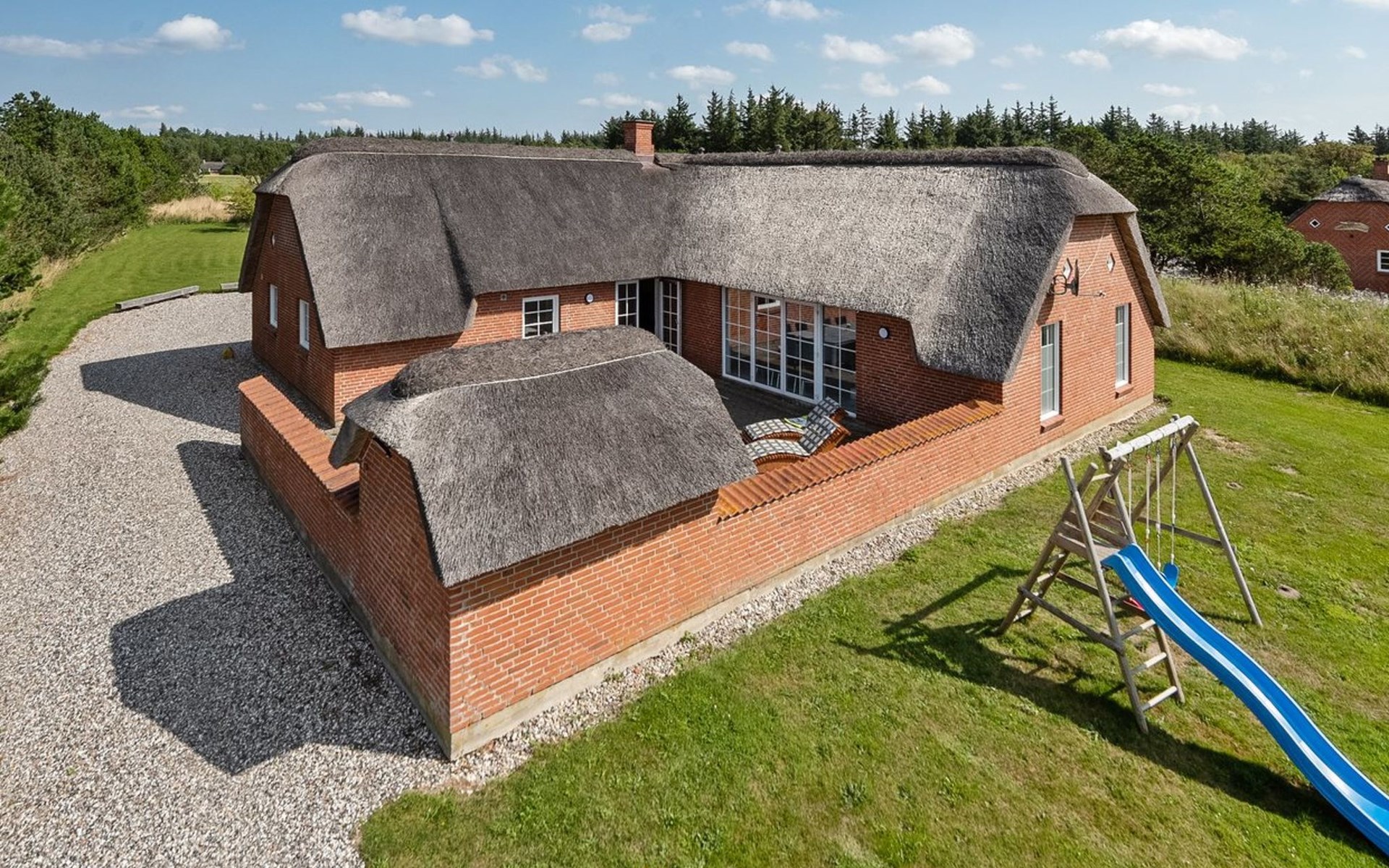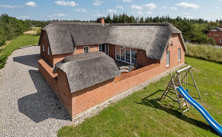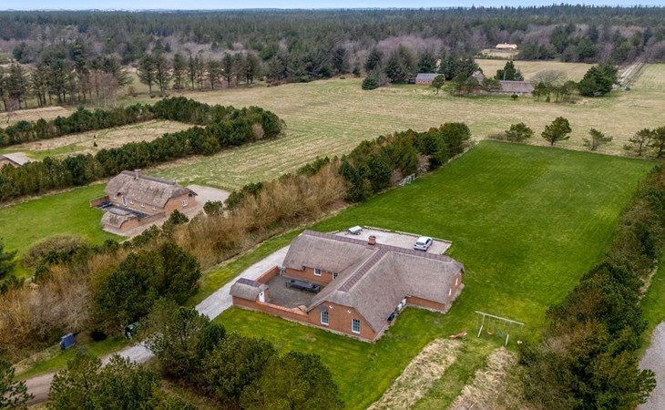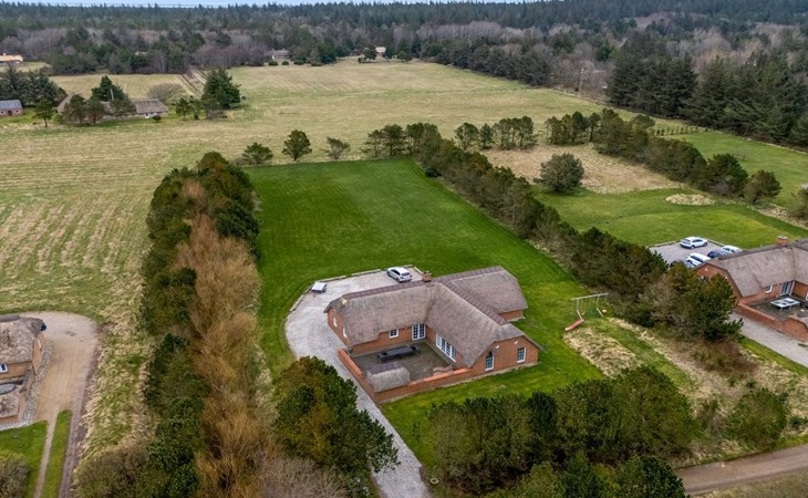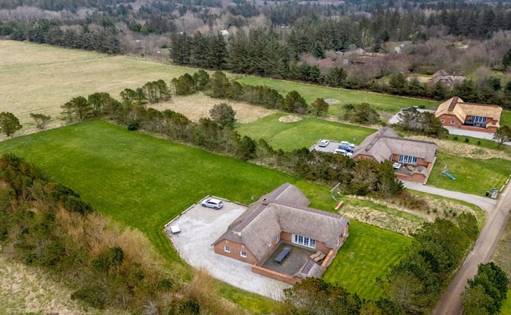 Einfamilienhaus, Baujahr 1992. 1.8 km vom Meer. Zur Alleinbenutzung: naturbelassenes Grundstück 5'023 m2, Hallenbad (3 x 5 m, 1'7.4 m2, 130 - 130 cm tief). Terrasse (100 m2), Grill, Kinderspielplatz (Rutschbahn, Schaukel). Im Hause: Sauna, Waschmaschine, Wäschetrockner. Parkplatz beim Haus. E-Ladestation. Lebensmittelgeschäft 3 km. Golfplatz 18 km. Der Besitzer akzeptiert keine Jugendgruppen.