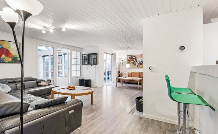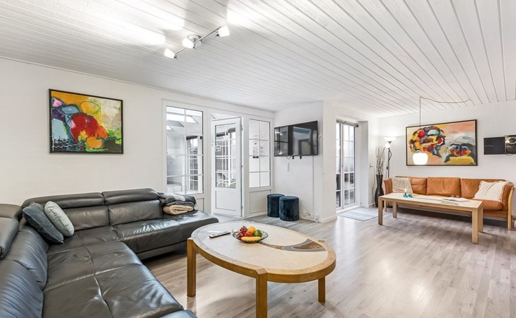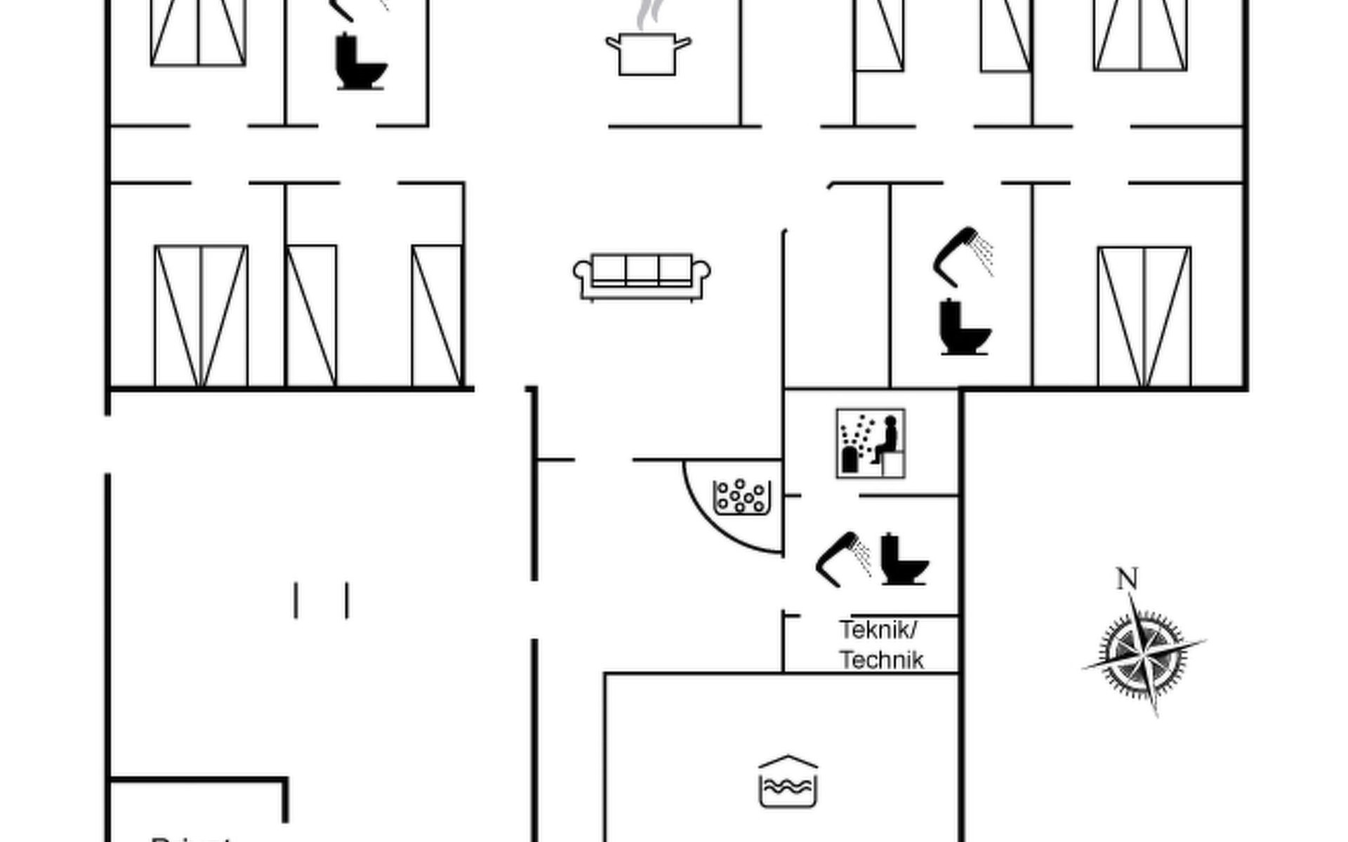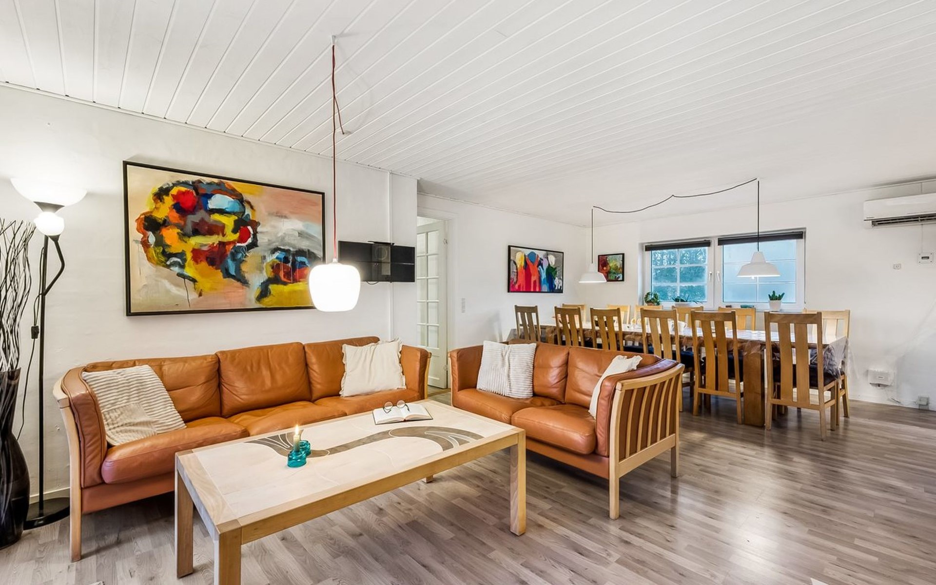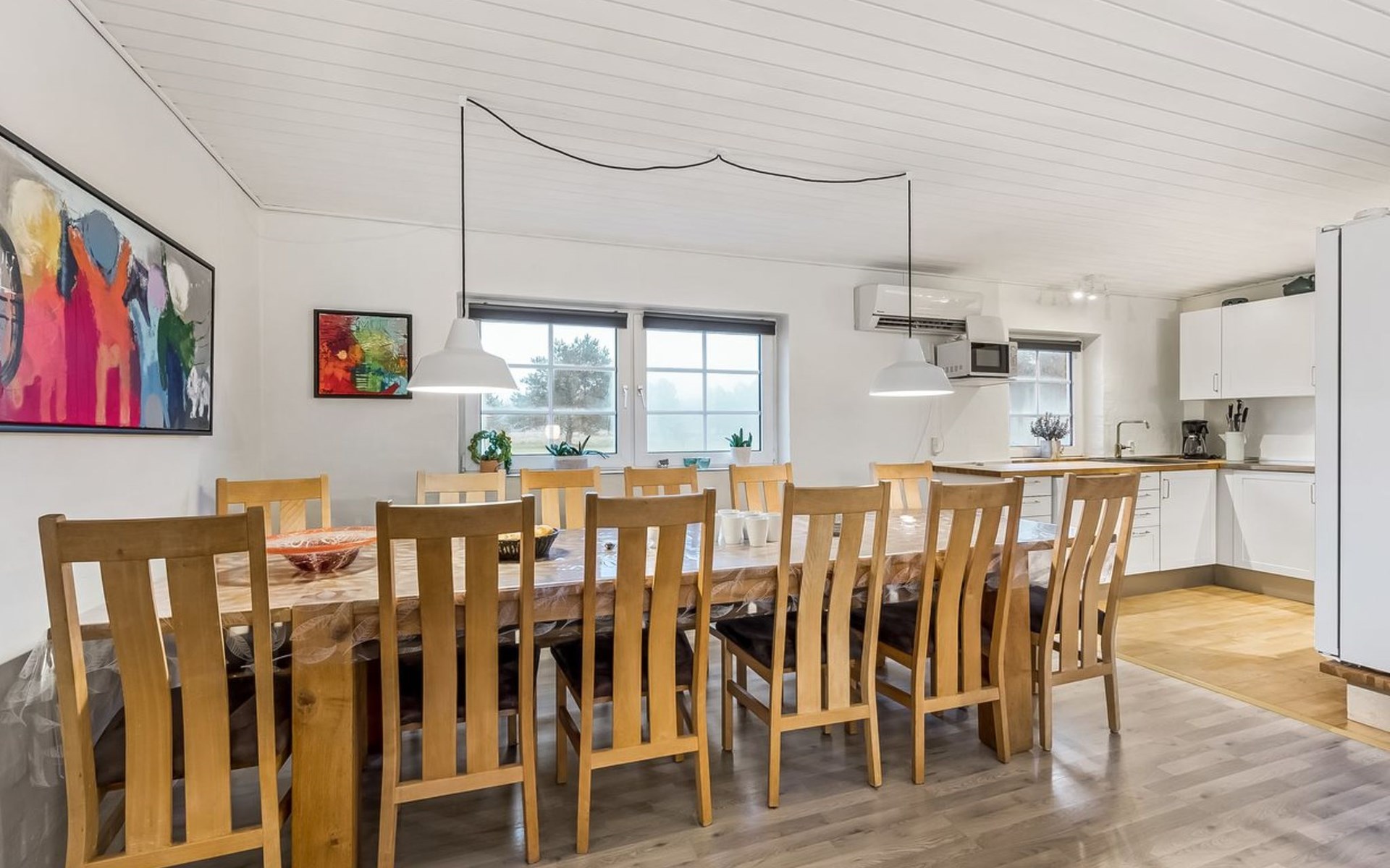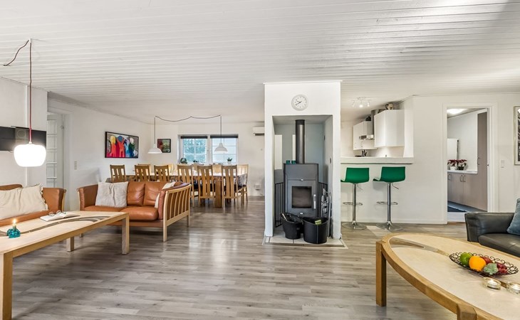 Einfamilienhaus, Baujahr 1992. 1.8 km vom Meer. Zur Alleinbenutzung: naturbelassenes Grundstück 5'023 m2, Hallenbad (3 x 5 m, 1'7.4 m2, 130 - 130 cm tief). Terrasse (100 m2), Grill, Kinderspielplatz (Rutschbahn, Schaukel). Im Hause: Sauna, Waschmaschine, Wäschetrockner. Parkplatz beim Haus. E-Ladestation. Lebensmittelgeschäft 3 km. Golfplatz 18 km. Der Besitzer akzeptiert keine Jugendgruppen.