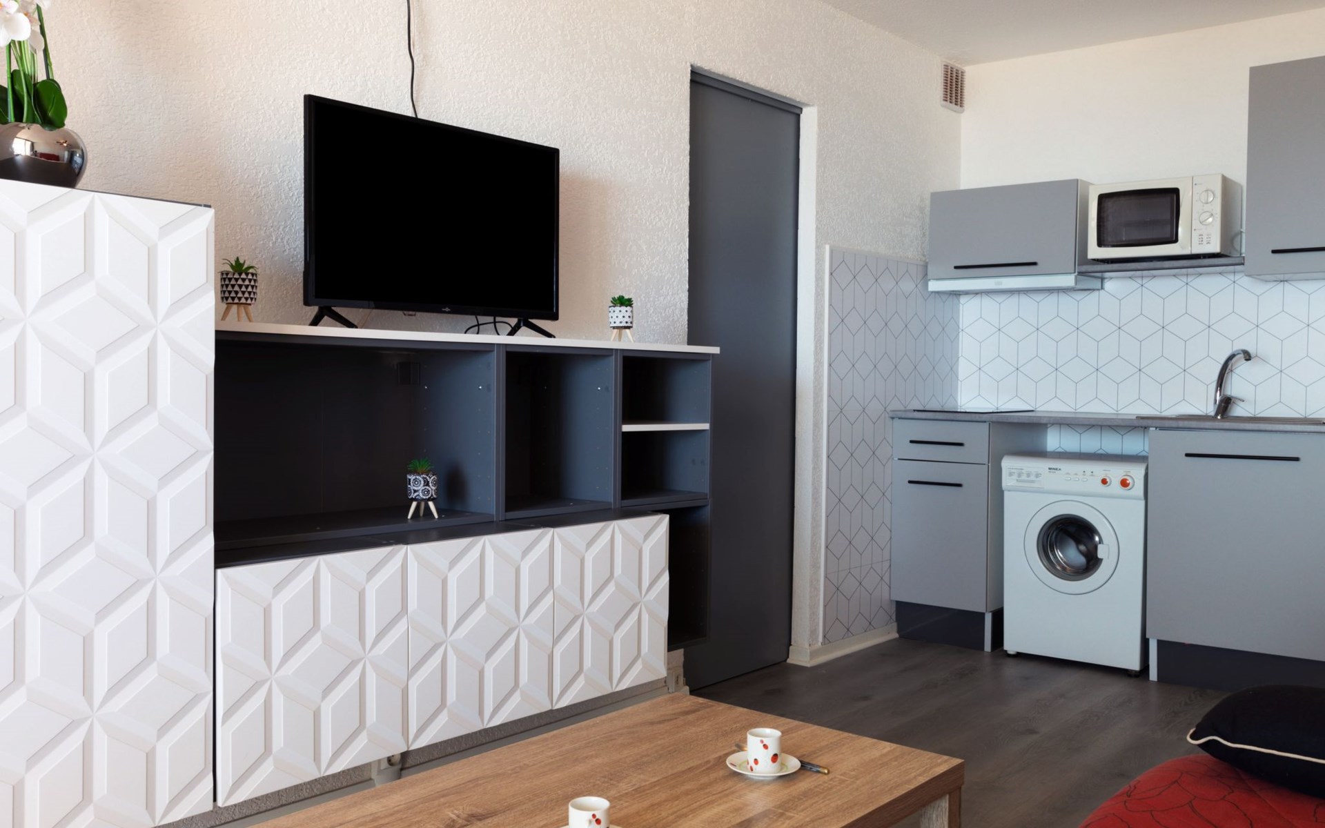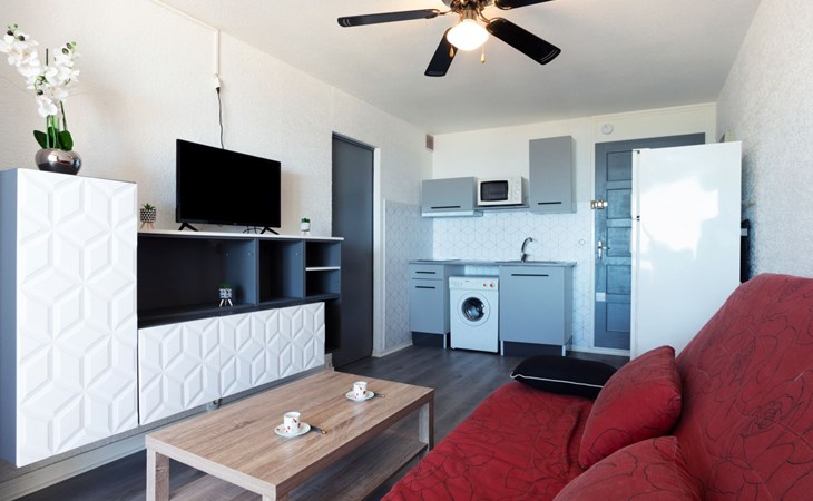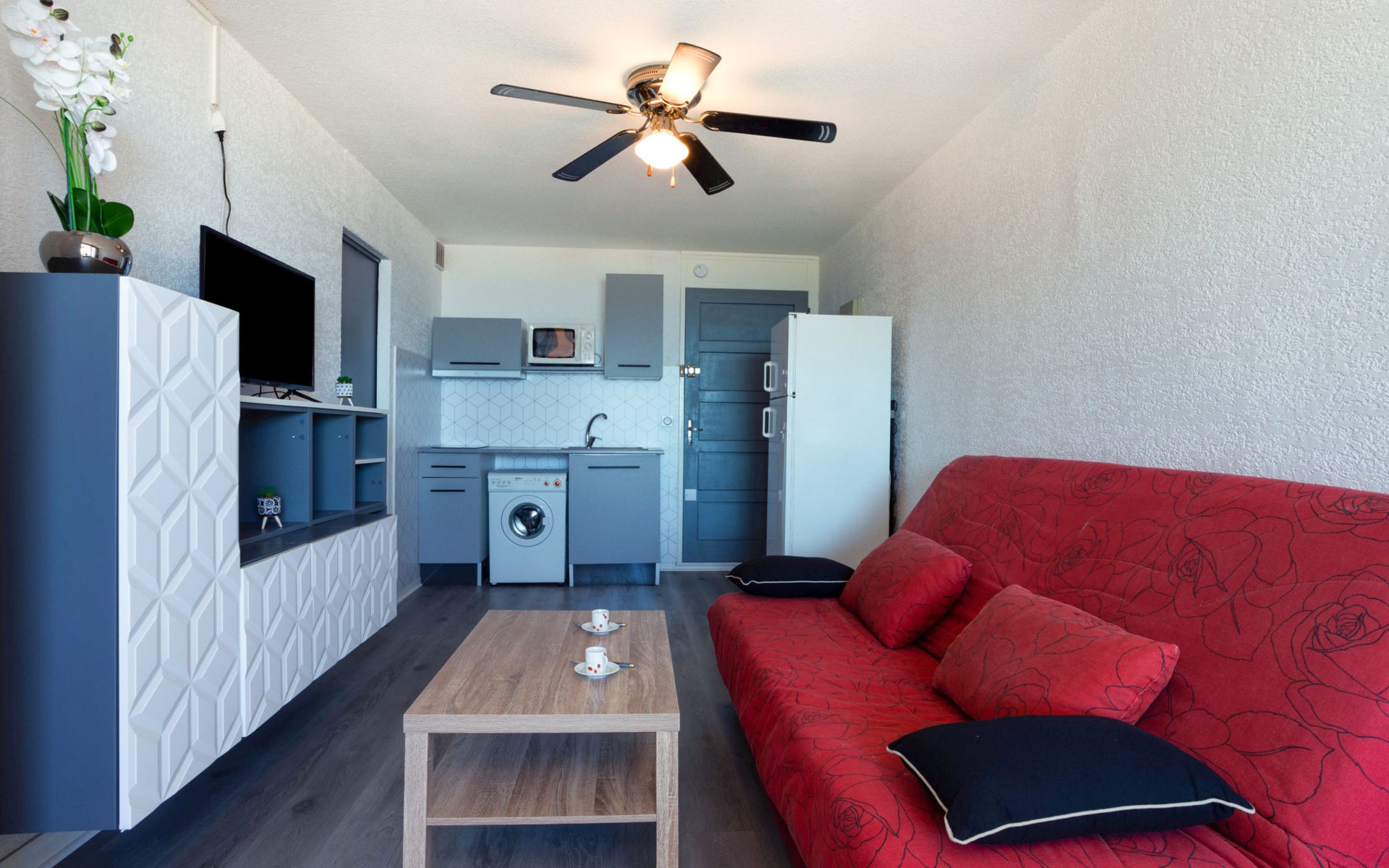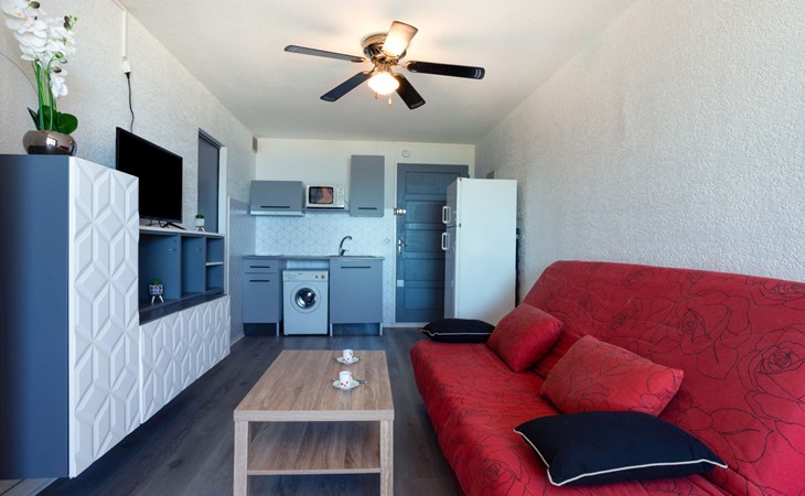 Residenz "Front de Mer", auf 3 Stockwerken. Im Ortsteil Grande Plage, belebte Lage, vom Meer, 100 m vom Strand. In der Anlage: Parkplatz. Einkaufsgeschäft, Einkaufszentrum, Restaurant 50 m, Bushaltestelle "Les Marines" 300 m, Bahnstation "Perpignan" 33 km. Nahe gelegene Sehenswürdigkeiten: Aqualand Port Leucate 7 km, Réserve Africaine de Sigean 41 km, site des dosses 4 km, téléski nautique 5 km. Bekannte Seen in der Umgebung sind gut erreichbar: Etang de Leucate ou salses 11 km, Lac de Villeneuve de la Raho 28 km. Wandergebiete: Sentier du guetteur 8 km, la forteresse de salses 15 km, Sentier du littoral Collioure 40 km. Bitte beachten: Weitere Unterkünfte sind buchbar.
