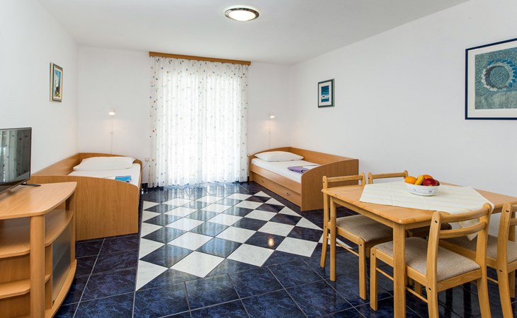 Jadranovo 7 km von Crikvenica: Grosses, kinderfreundliches, schönes Appartementhaus "Villa Anna". 10 Wohnungen in der Residenz. 250 m vom Zentrum von Jadranovo, 5 km vom Zentrum von Dramalj, 350 m vom Meer, 550 m vom Strand. Zur Mitbenutzung: Grundstück 1'500 m2 (eingezäunt) mit Rasen und Bäumen, Schwimmbad beheizt (14 x 4 m, 110 - 165 cm tief, saisonale Verfügbarkeit: 11.Mai. - 30.Sep.). Aussendusche, Tischtennis, Sitzplatz, Grill, Kinderspielplatz (Schaukel). Im Hause: Internetzugang, Waschmaschine (zur Mitbenutzung, extra). Einkaufsgeschäft 400 m, Restaurant 250 m, Bushaltestelle 700 m, Kieselstrand 850 m, betonierter Strand 550 m. Jacht-Hafen 350 m. Jugendgruppen nur auf Anfrage. Bitte beachten: Flugplatz 13 km vom Haus. Schwimmbad mit Hydromassage.