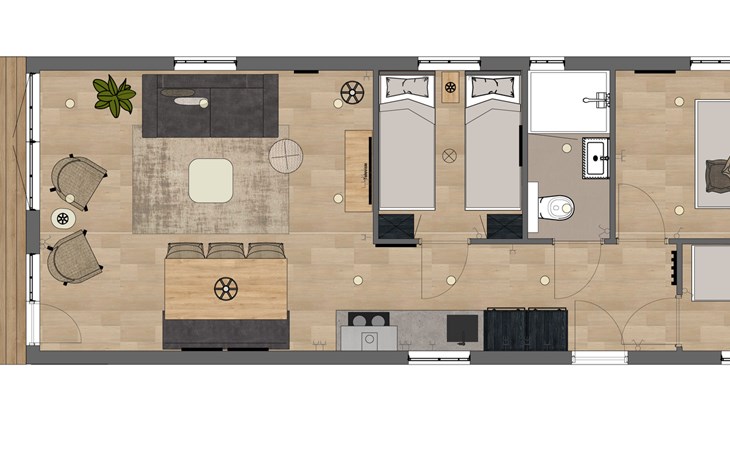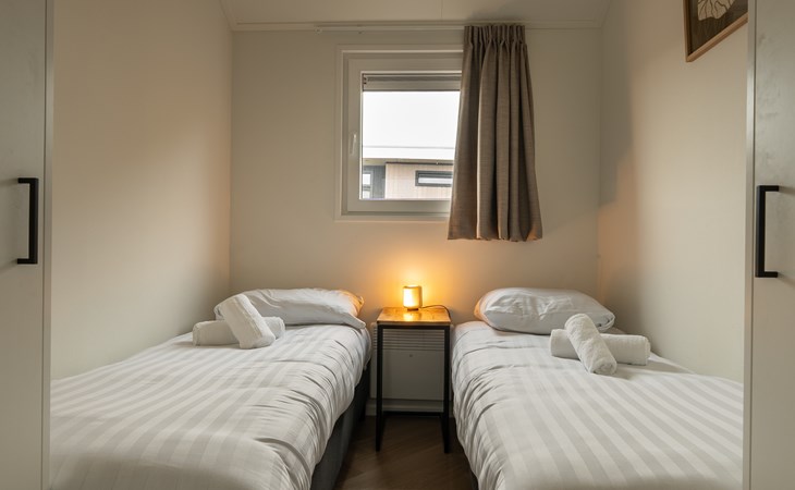 Entdecken Sie den Luxus des Typs Duinhelm, des geräumigsten Hauses in unserem Park, das für sechs Personen geeignet ist. Mit einem seeländischen Design und von einem niederländischen Hersteller gebaut, ist dieses Haus 100% niederländische Handwerkskunst. Erleben Sie das ganze Jahr über Komfort in diesem attraktiven und langlebigen Chalet, das perfekt isoliert und mit Kunststofffenstern und Doppelverglasung ausgestattet ist.