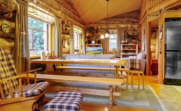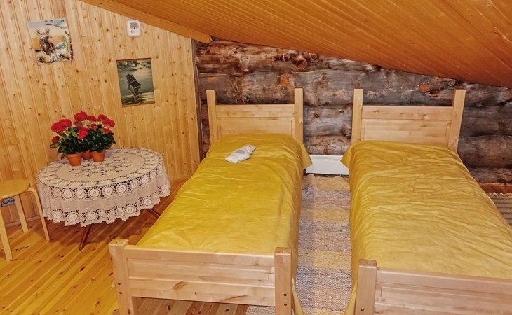 Maximal 1 Haustier/Hund erlaubt. 430 km nördlich von Rovaniemi, 110 km nordöstlich von Inari, See Nilijärvi 45 m (Länge 1.6 km, Breite 0.4 km), flacher Sandstrand mit Sandboden, Pier, eigenes Ruderboot. Blockvilla aus Keloholz, Baujahr 2000. Wohnküche, Schlafzimmer mit Doppelbett, Nische mit Doppelbett, Dachboden mit 4 Betten in zwei verschiedenen Abteilen, 2 zusätzliche Matratzen, Sauna, Waschraum/Wc, separates WC und verglaste Terrasse. Seesauna (24 m²), verfügbar von Anfang Juni bis Ende September. Sauna mit Holzofen, Waschraum (2 Duschen), fliessendes Wasser ist im Sommer aus dem See verfügbar (ansonsten muss das Wasser mit einem Eimer gebracht werden) und Kaminhütte. Ausstattung: elektrisches Licht, Kaminzimmer mit hellem Kamin, elektrische Heizung, 3 Betten und Küchenzeile mit Waschbecken, Kühlschrank und 2 Kochplatten. Nilimella ist eine prächtige Kelo-Blockvilla, in der Nähe des Sees Sevettijärvi. Es gibt ein paar benachbarte Häuser, sonst ist es ein ruhiger Ort. Dies ist ein ausgezeichneter Ausgangspunkt für Wildnisäktivitäten und Naturferien, im Nordosten Lapplands. Angeln: Der berühmte Lachsfischfluss Näätämöjoki ist 16 km entfernt (keine Strassenverbindung, 8 km zu Fuss). Im Sommer verkehrt ein fliegendes Taxi (Wasserflugzeug) von Sevettijärvi. Angelscheine und weitere Informationen: siehe das Ziel 1565 Näätämöjoki (www.eraluvat.fi). Das Ziel 1564 Inari Wilderness (Wildnis) umfasst grosse Gebiete mit Fischgewässern, in der Nähe des Hauses (www.eraluvat.fi). Das Angeln in Seen ist gegen eine Fischereimanagement-Gebühr gestattet. Eine Angelrute und ein Köder können benutzt werden. In Gebieten mit fliessendem Wasser ist das Angeln jedoch nicht gestattet. Weitere Informationen finden Sie unter www.eraluvat.fi. Sie können beim Eigentümer Transportdienst zu den Eisfischergewässern mit dem Schneemobil buchen. Jagd: Das Haus befindet sich in der Nähe des staatlichen Kleinwildjagdgebiets Vätsäri (nur Weidenhuhn). Siehe Ziel 1606 Vätsäri (www.eraluvat.fi). Das Ziel 1605 Näätämö ist vom Haus am nächsten, 5 km entfernt (www.eraluvat.fi). Die grosse Auswahl an Zielen bietet hervorragende Möglichkeiten für die Kleinwildjagd. Sevettijärvi ist das Zentrum des Skolt Sámi Erbe im Norden. Orthodoxe Kirche, Skolt Sámi historisches Haus und Handwerksausstellung (geöffnet im Sommer) 1.5 km. Näätämo und Grenzübergang nach Norwegen 35 km. Geschäfte und Tankstellen in Näätämö.