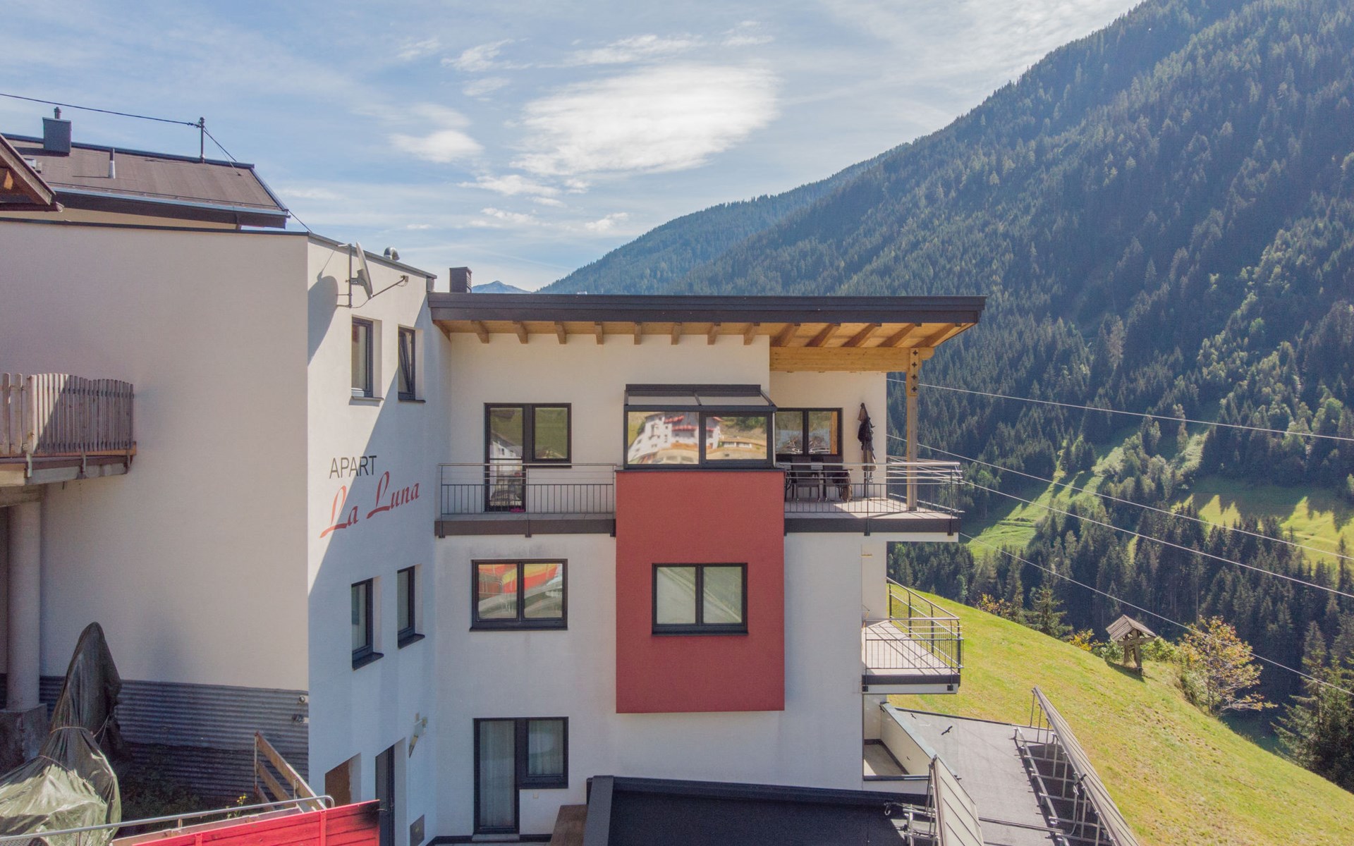 Kappl 9 km von Ischgl: Modernes Zweifamilienhaus "La Luna", Baujahr 2010, umgeben von Wiesen. Ruhige, sonnige Lage am Hang, 1 km vom Skigebiet. Zur Mitbenutzung: Garten. Terrasse. Im Hause: Wireless LAN, Skiraum, Zentralheizung, Skischuhtrockner. Brötchenservice. Parkplatz beim Haus. Lebensmittelgeschäft 300 m, Restaurant 300 m, Bushaltestelle, Freibad 9 km, Hallenbad 9 km. Tennis 2 km, Wanderwege ab Haus 100 m, Gondelbahn 1 km, Skiverleih 1 km, Skibushaltestelle 10 m, Kinderskischule 1 km, Schlittelbahn 1 km, Langlaufloipe 1 km. Bitte beachten: Gratis Skibus. Der gratis Skibus fährt zum Skigebiet Kappl. Bitte beachten: Der Besitzer wohnt im selben Haus. Wir bitten Sie, ab 22 Uhr die Zimmerlautstärke einzuhalten.