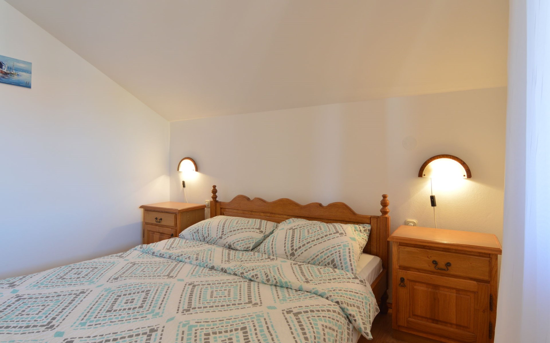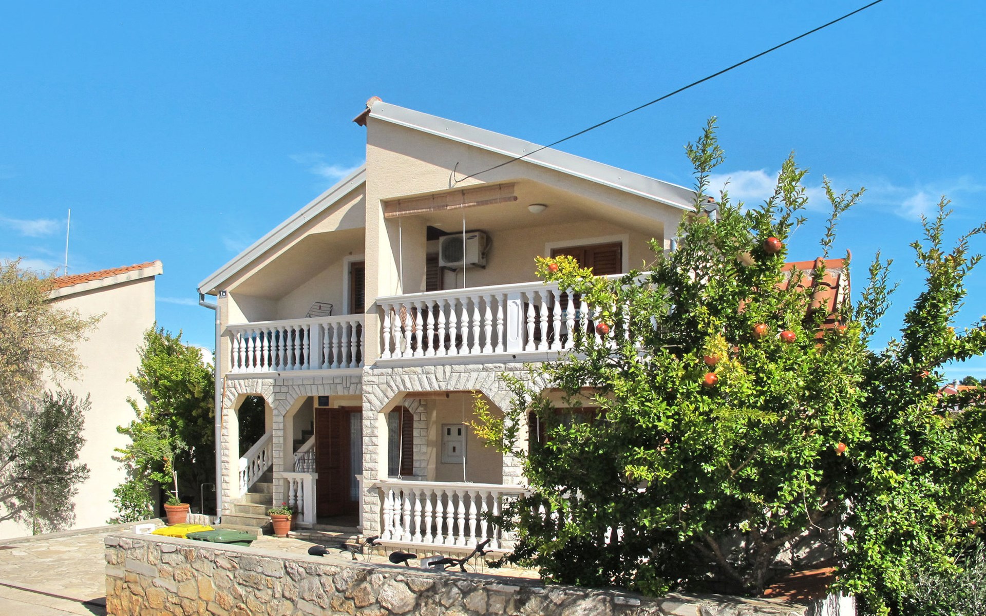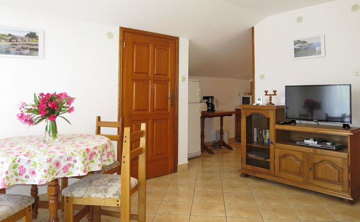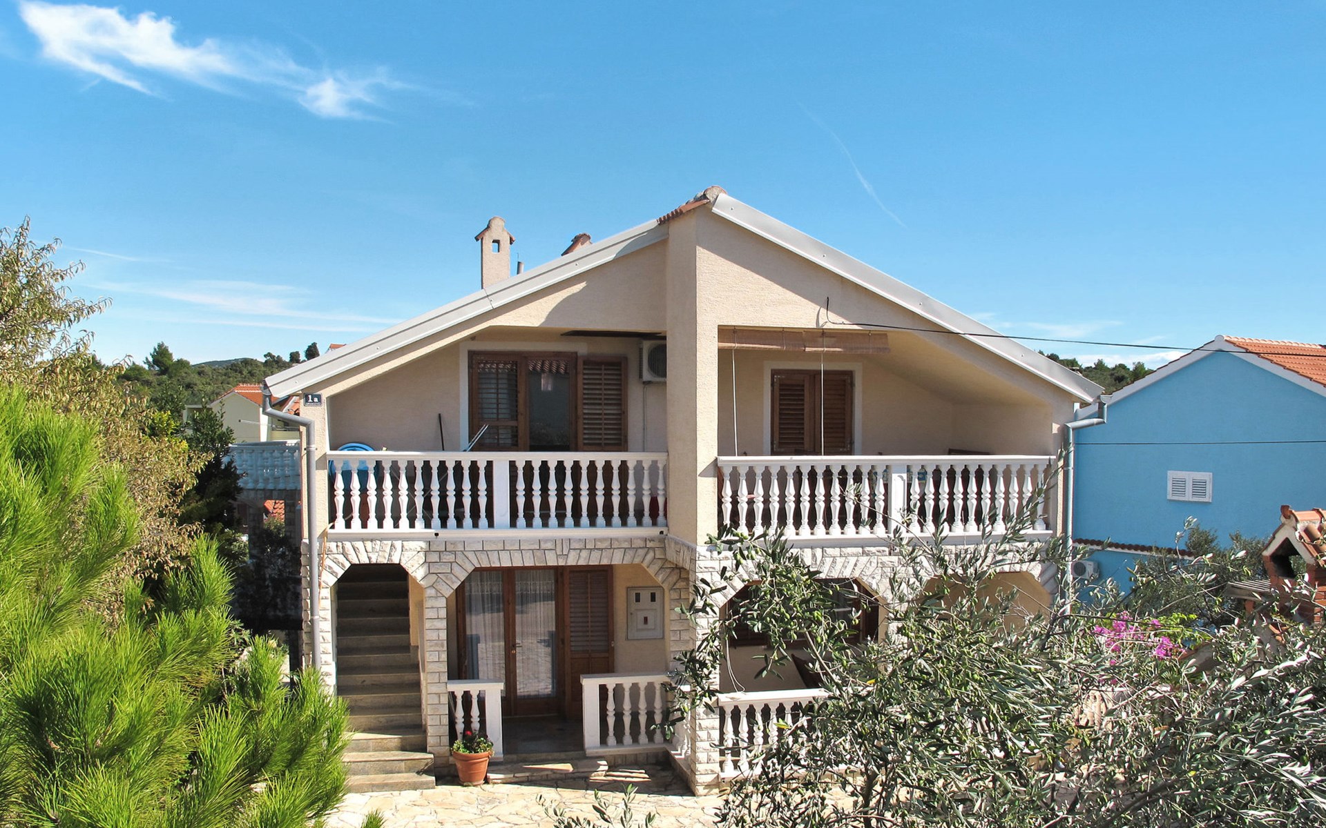 Dreifamilienhaus "Ivamar". 500 m vom Zentrum von Jezera, 4 km vom Zentrum von Tisno, 400 m vom Meer, 600 m vom Strand, in einer Sackgasse. Zur Mitbenutzung: Grundstück 200 m2. Grill. Im Hause: Internetzugang. Parkplatz auf dem Grundstück. Supermarkt 700 m, Restaurant 500 m, Bushaltestelle 1.6 km, Kieselstrand 600 m. Jacht-Hafen 400 m.