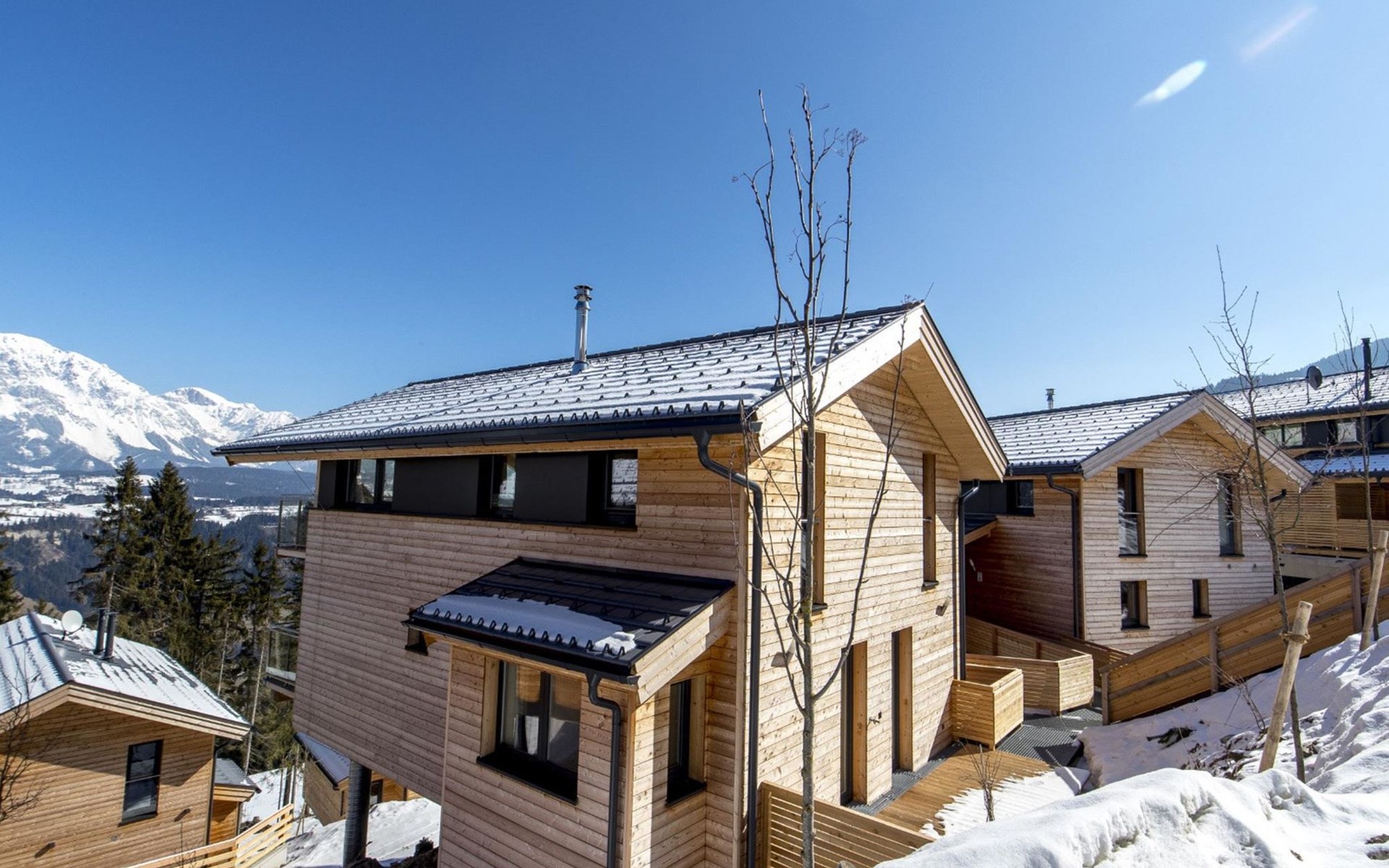 Pichl bei Schladming: Modernes, komfortables Feriendorf "Chalets Reiteralm by Alps Resorts", 1'180 m.ü.M.. Ruhige, sonnige Lage am Hang, 50 m vom Skigebiet. Im Hause: Waschmaschine (extra) (zur Mitbenutzung). Im Winter bitte Schneeketten mitbringen. Parkplatz beim Haus. Supermarkt 8.8 km, Restaurant 8.8 km. Skisportanlagen 50 m. Bekannte Skigebiete sind gut erreichbar: Reiteralm, Hauser Kaibling, Planai. Wandergebiete: Schladminger Thauern. Das Foto ist nur ein Wohnungsbeispiel. Alle Häuser/Wohnungen sind individuell eingerichtet. Die Mietobjekte können sich in Wohnfläche, Raumaufteilung, Ausstattung und Einrichtung unterscheiden. ACHTUNG: SCHLADMING-DACHSTEIN-SUMMERCARD INKLUDIERT!