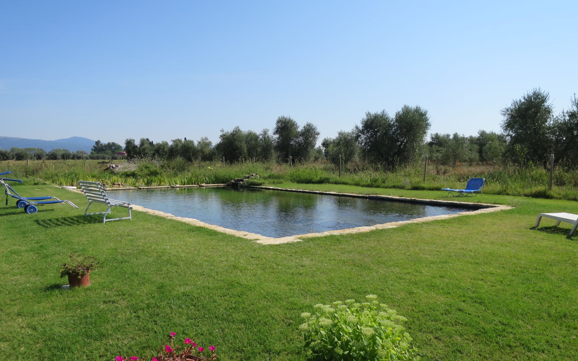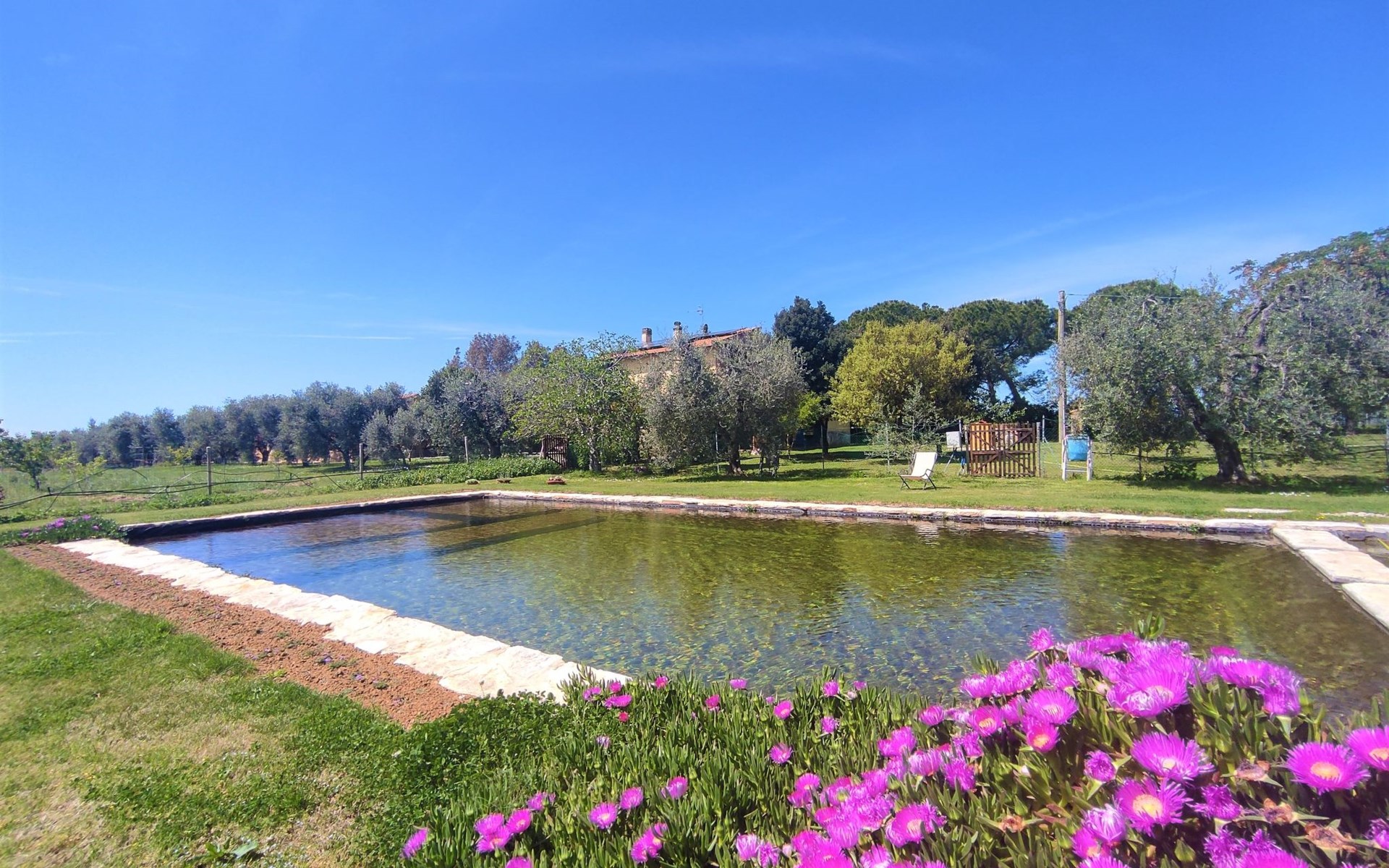 Kleines Bauerngut "Podere Noé". 3 Wohnungen in der Residenz. 7 km vom Zentrum von Ribolla, 16 km vom Zentrum von Roccastrada, alleinstehende, ruhige Lage, 30 km vom Meer, im Grünen. Zur Mitbenutzung: Grundstück 2'500 m2, Garten mit Pflanzen und Bäumen, Liegewiese, Naturteich, Schwimmbad eingezäunt (14 x 7 m, 50 - 150 cm tief, saisonale Verfügbarkeit: 01.Jan. - 31.Dez.). Grill. Im Hause: Waschmaschine (zur Mitbenutzung). Parkplatz (überdacht) auf dem Grundstück. E-Ladestation. Einkaufsgeschäft 7 km, Supermarkt 7 km, Bushaltestelle 2 km, Sandstrand "Castiglione della Pescaia" 30 km. Golfplatz (18 Loch) 25 km. Nahe gelegene Sehenswürdigkeiten: Montemassi 10 km, Grosseto 24 km, Castiglione della Pescaia 30 km. Ab Hof Verkauf von bäuerlichen Produkten. Bitte beachten: Der Besitzer wohnt auf dem gleichen Grundstück. Eigentümer hat einen Hund. Der Pool ist ein Naturteich, bestehend aus einem Badeabschnittund einem ca. 7 x 7 m großen Regenerierungsabschnitt mit Pflanzen. Umzäunte Liegewiese mit Liegestühlen. Direktverkauf biologischer Produkte wie Olivenöl und Früchten aus eigener Herstellung (je nach Saison).