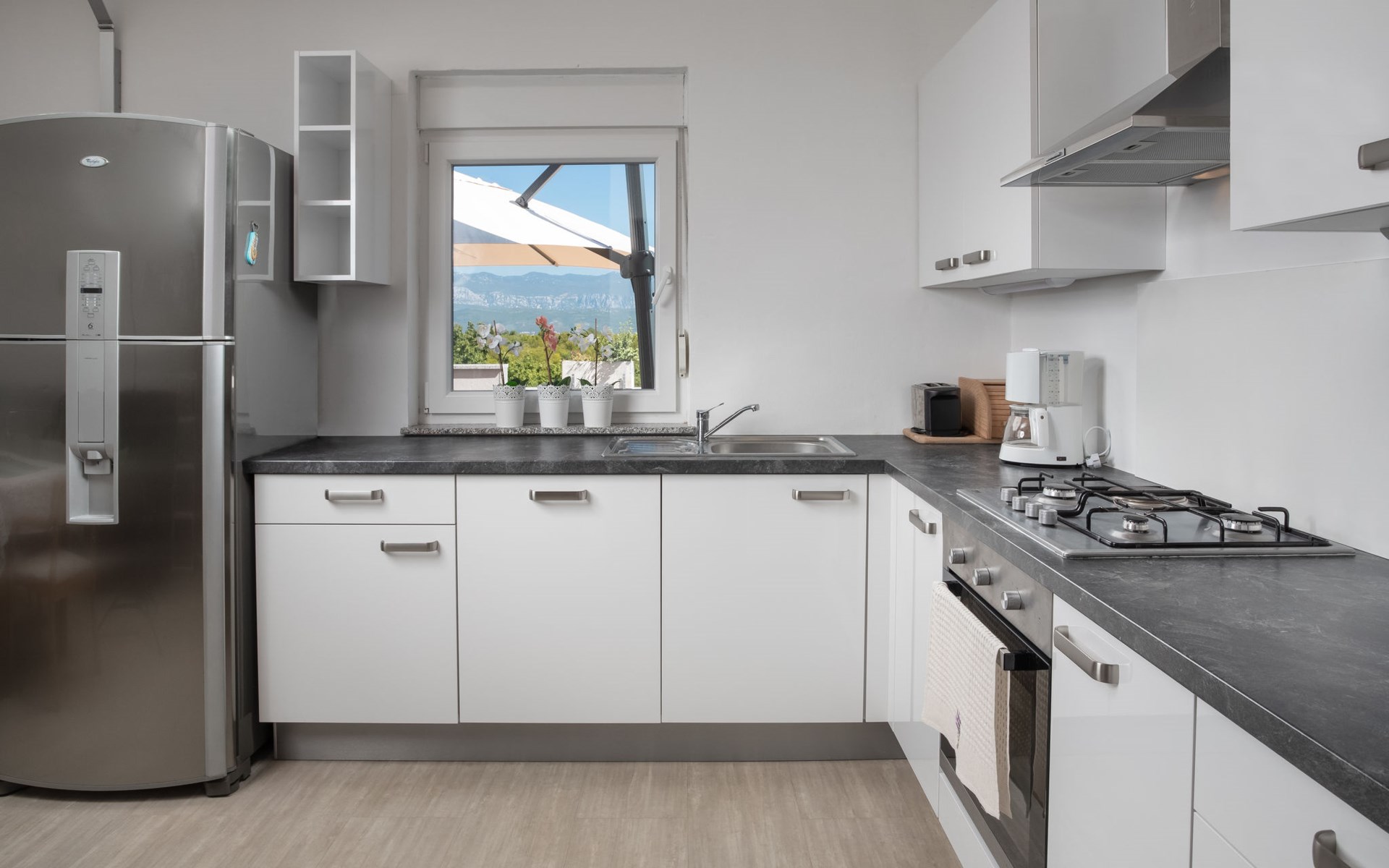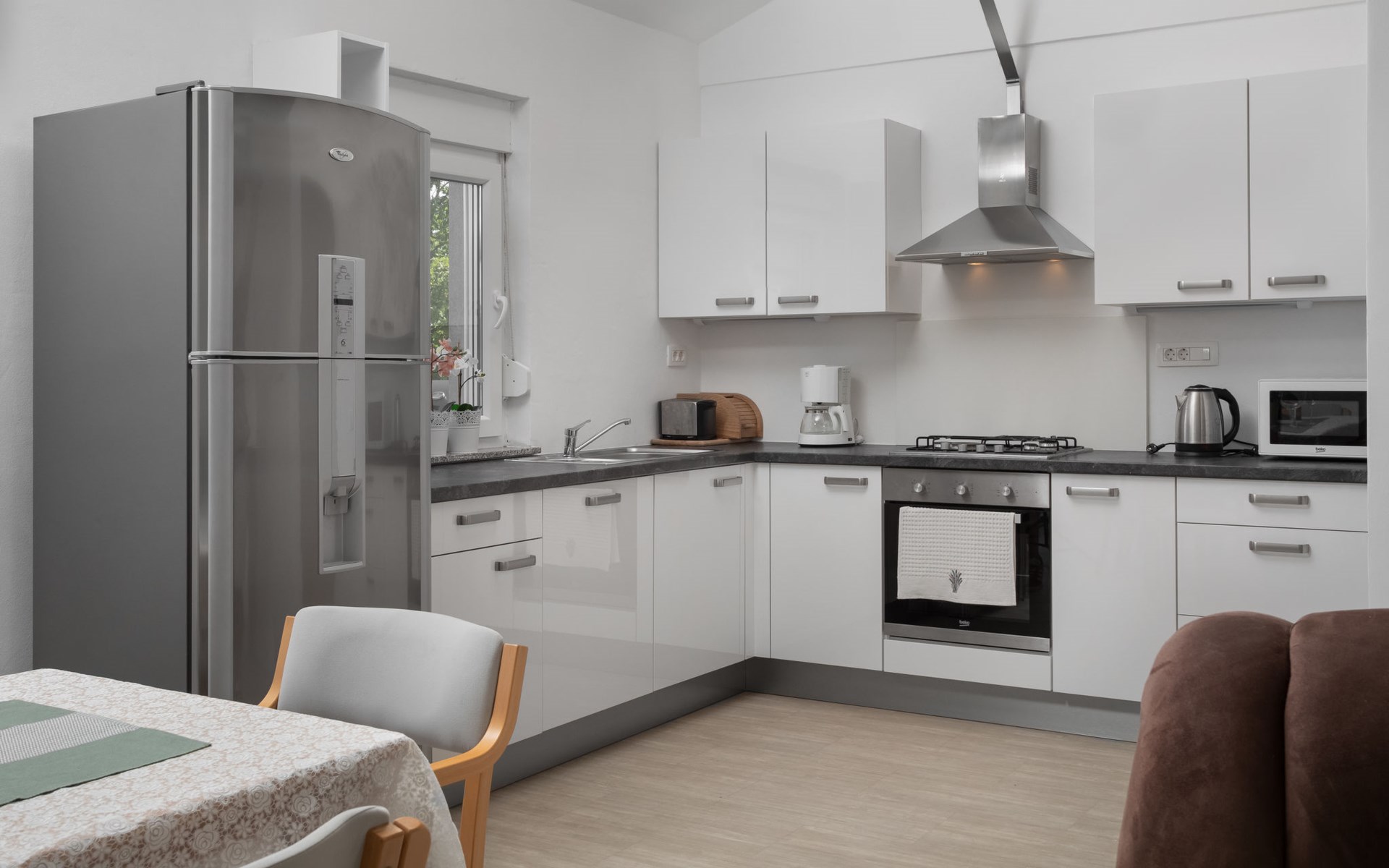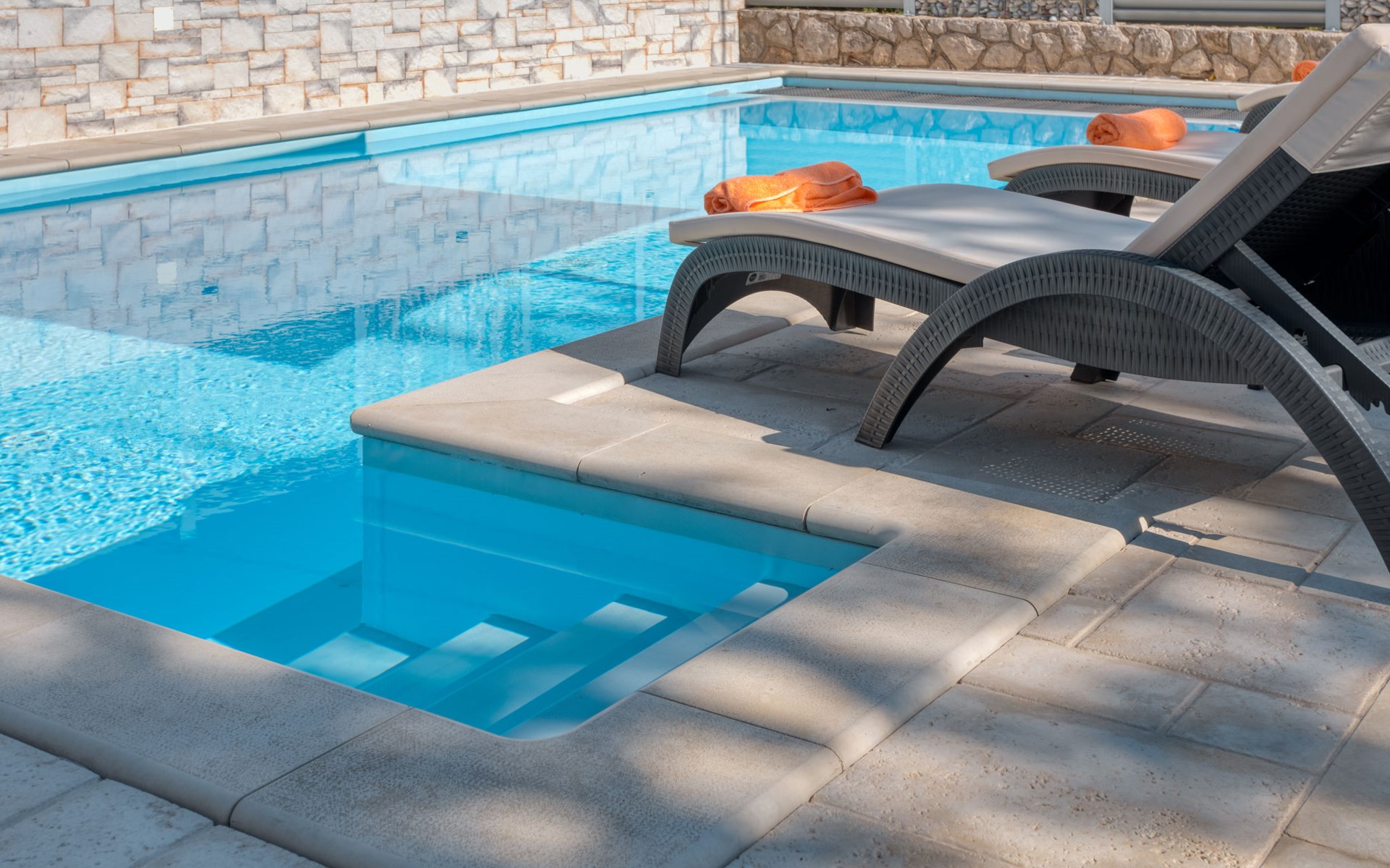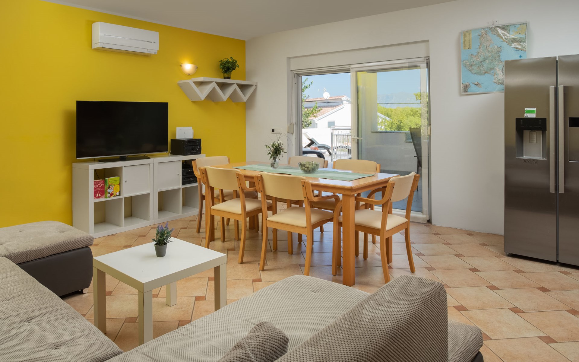 Einfamilienhaus "Lavendel", auf 2 Stockwerken. Im Weiler Donja Hlapa, 12 km vom Zentrum von Malinska, 3.5 km vom Zentrum von Klimno, 16 km vom Zentrum von Krk, am Hang, 2.5 km vom Meer, 2.5 km vom Strand. Zur Alleinbenutzung: Grundstück 500 m2 mit Pflanzen und Bäumen, Schwimmbad beheizt (8 x 4 m, 150 cm tief, saisonale Verfügbarkeit: 15.Mar. - 15.Nov.). Aussendusche, Sprudelbad. Im Hause: Internetzugang, Waschmaschine. Zufahrt bis 200 m zum Haus (Naturweg). Parkplatz (für 3 Autos) beim Haus auf dem Grundstück. Supermarkt 2 km, Bushaltestelle 4.9 km, Sandstrand 5 km, Kieselstrand 2.5 km. Bitte beachten: Flugplatz 14 km vom Haus. Die Wohneinheit besteht aus 2 Wohnungen, die aber zusammen vermietet werden. Schwimmbad beheizt (extra).