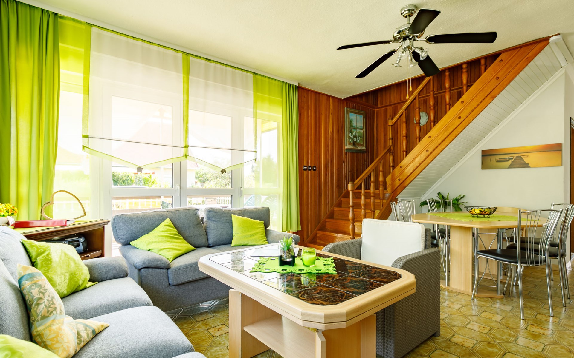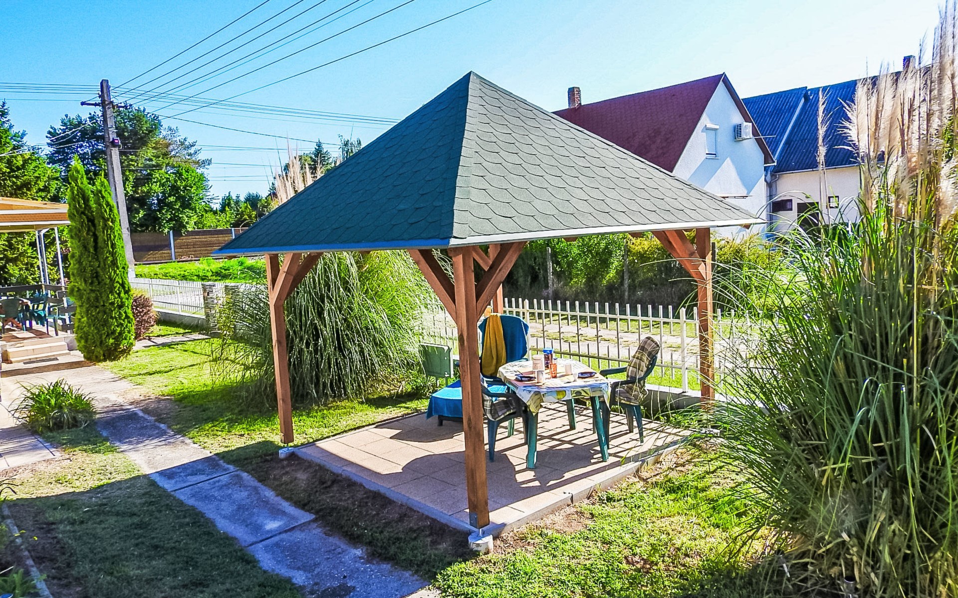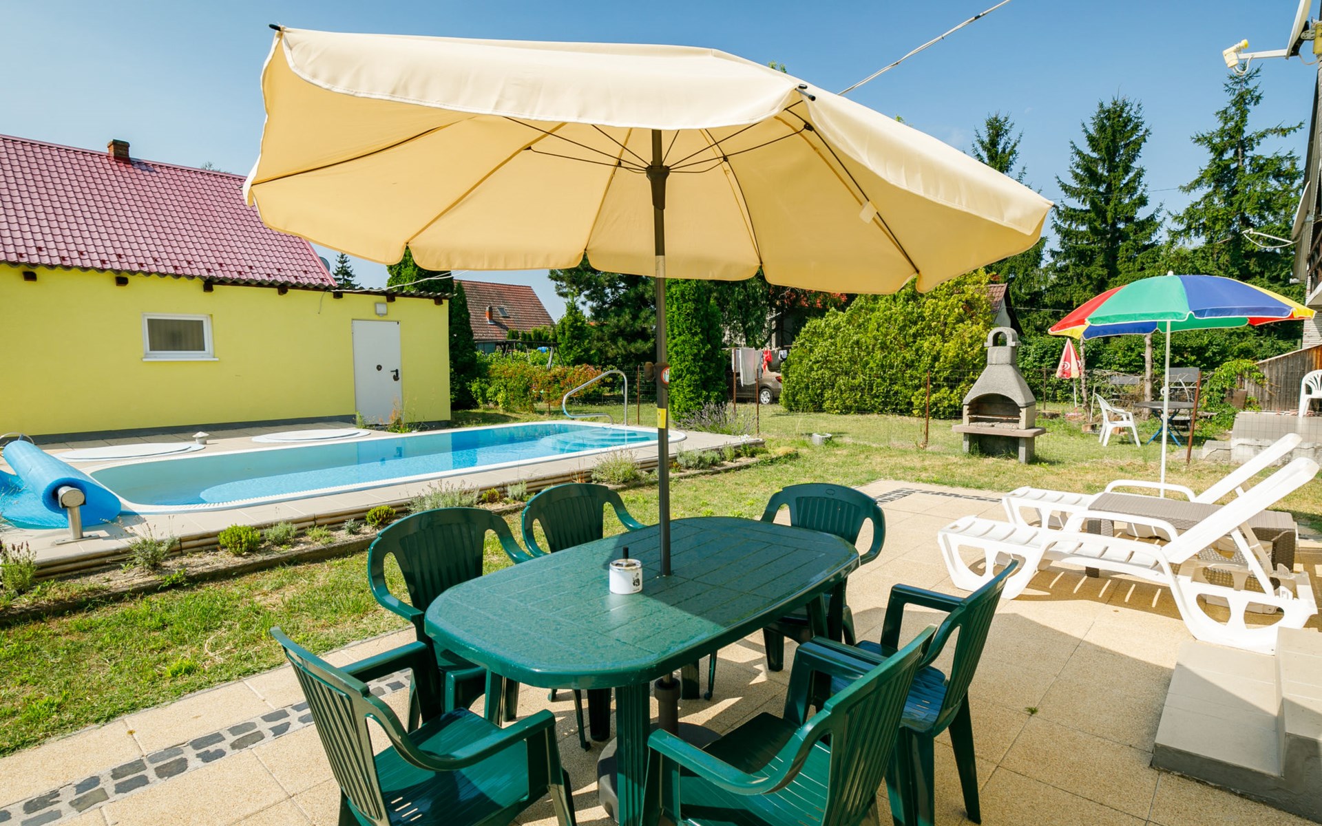 Balatonmáriafürdő 19 km von Keszthely: Gemütliches Zweifamilienhaus "Sunny Day", auf 2 Stockwerken. Im Ort, 400 m vom See, 300 m vom Strand. Zur Alleinbenutzung: Grundstück 600 m2 (eingezäunt), Garten, Liegewiese, Schwimmbad eckig (3 x 6 m, saisonale Verfügbarkeit: 15.Mai. - 15.Sep.). Im Hause: Wireless LAN. Restaurant 100 m. Bitte beachten: Eisenbahnlinie in der Nähe.