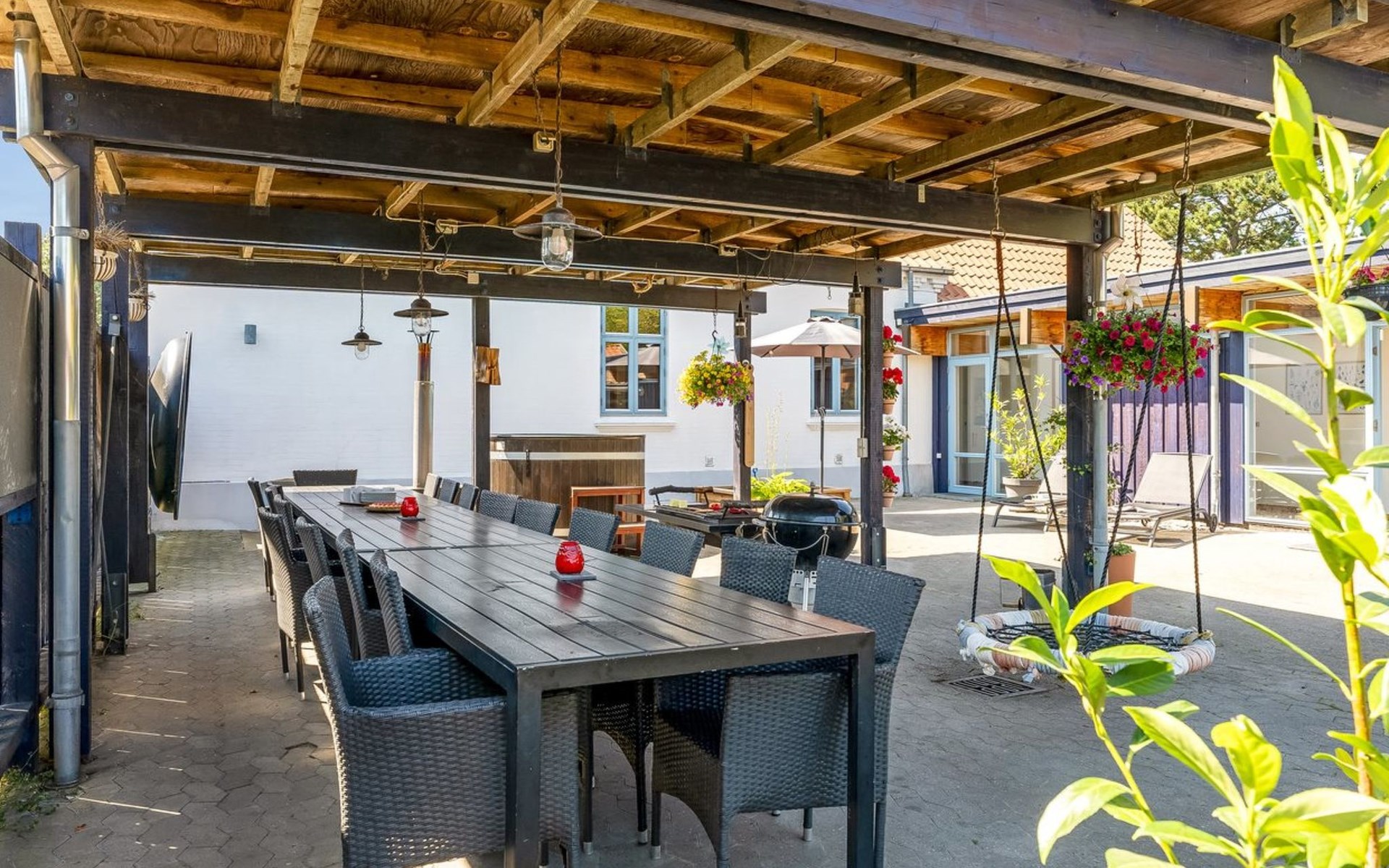 Einfamilienhaus, Baujahr 1930. 200 m vom Meer. Zur Mitbenutzung: Garten. Zur Alleinbenutzung: naturbelassenes Grundstück 3'000 m2, Garten (eingezäunt), Hallenbad. Aussendusche, Grill (Schaukel). Im Hause: Tischfussball, Waschmaschine, Wäschetrockner. Parkplatz beim Haus. E-Ladestation. Lebensmittelgeschäft 500 m. Golfplatz 1.5 km. Der Besitzer akzeptiert keine Jugendgruppen.