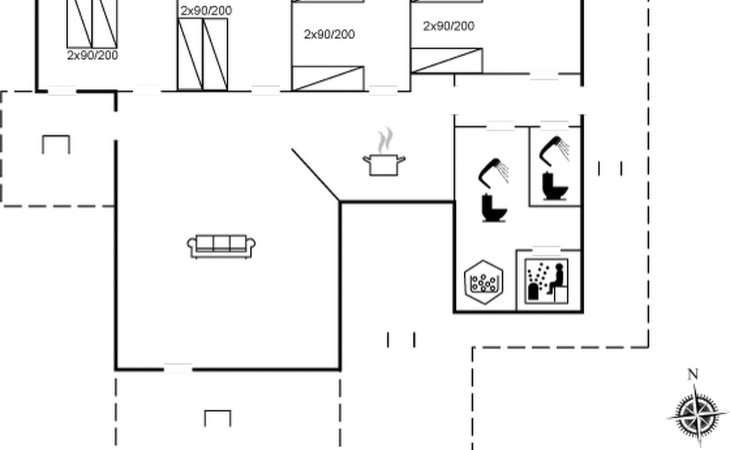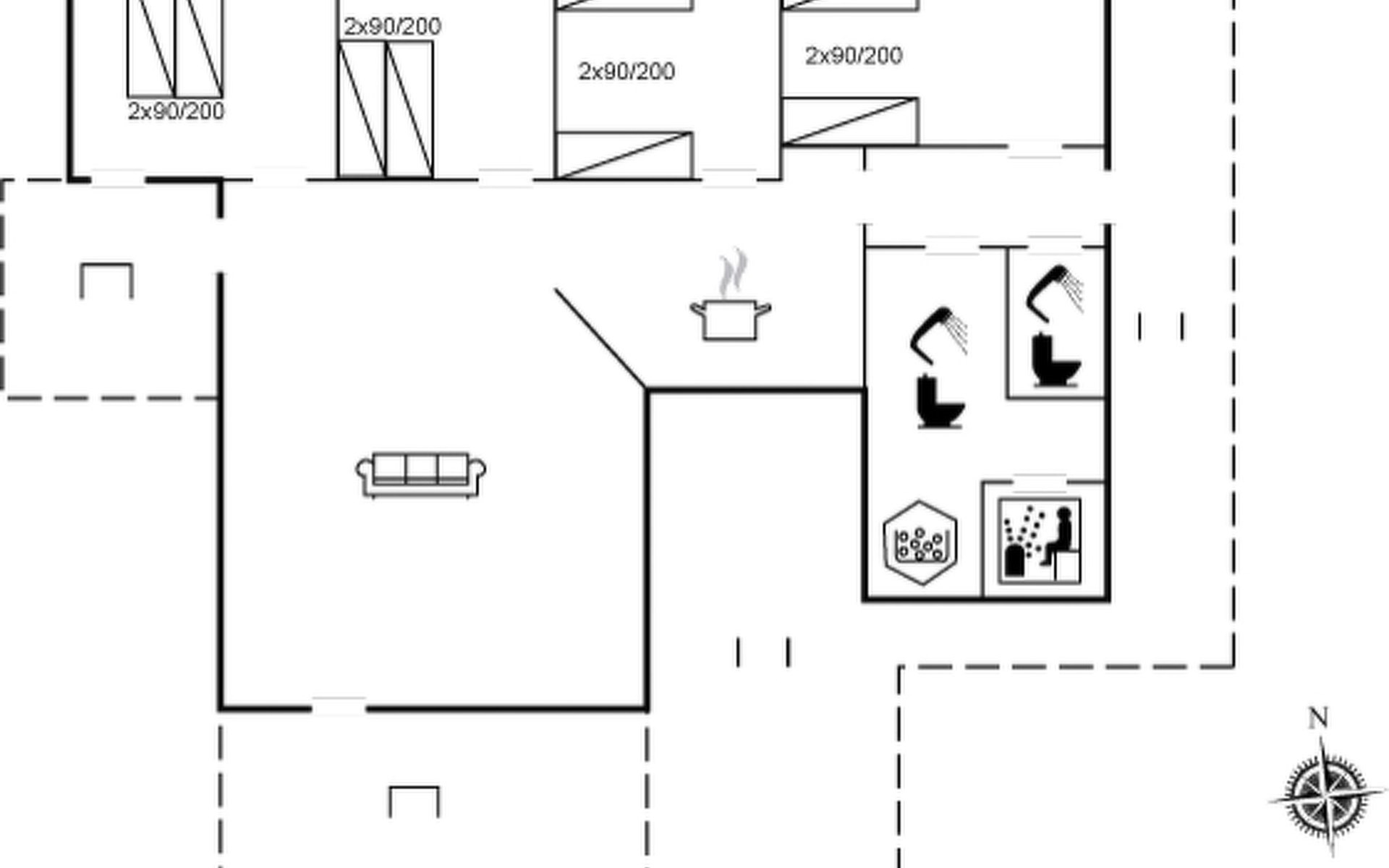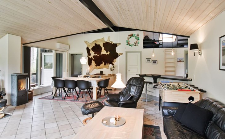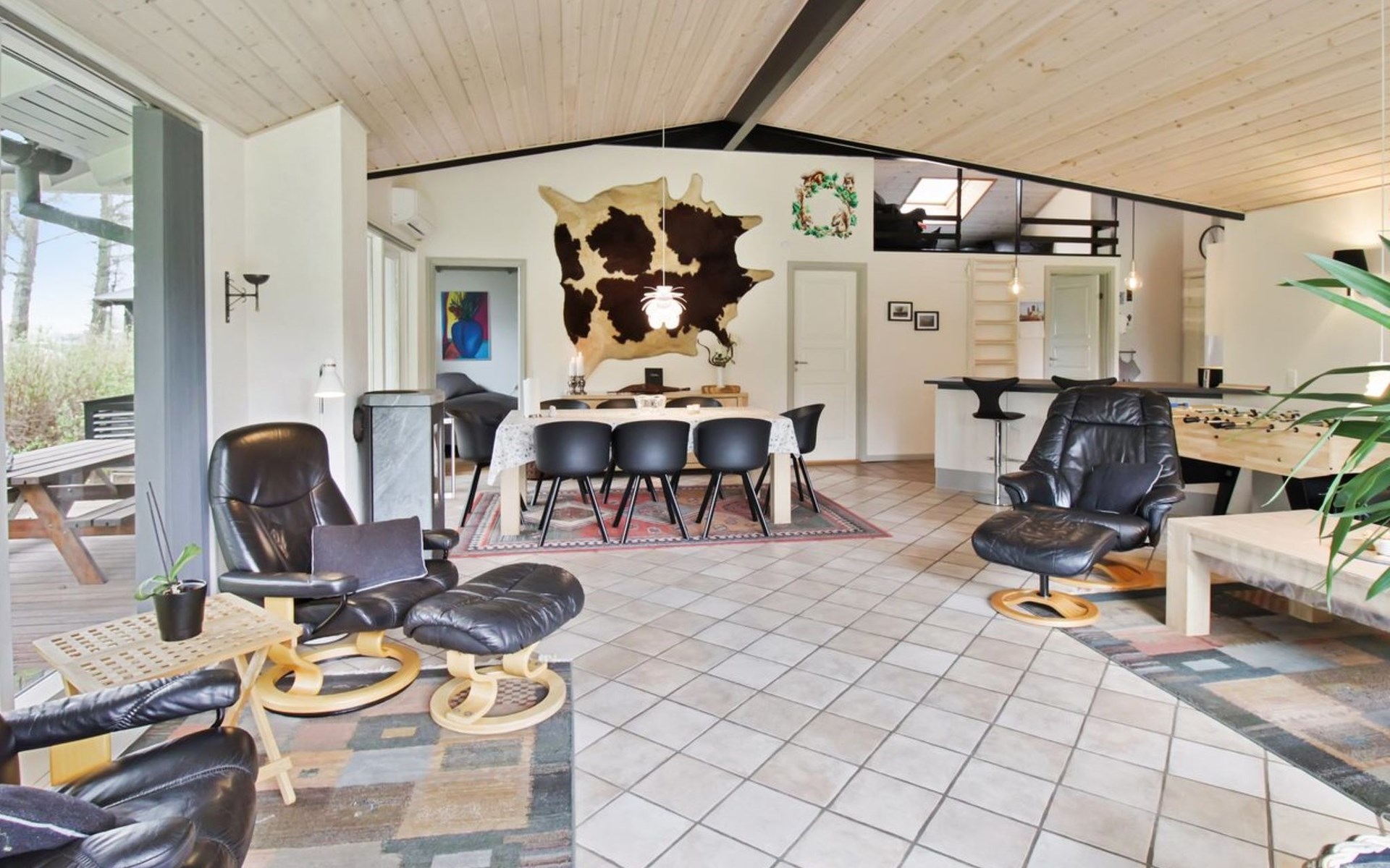 Einfamilienhaus, Baujahr 1970. 2 km vom Meer. Zur Alleinbenutzung: naturbelassenes Grundstück 2'014 m2. Terrasse (25 m2), Kinderspielplatz (Schaukel). Im Hause: Sauna, Waschmaschine, Wäschetrockner. Parkplatz beim Haus. Lebensmittelgeschäft 300 m. Der Besitzer akzeptiert keine Jugendgruppen.